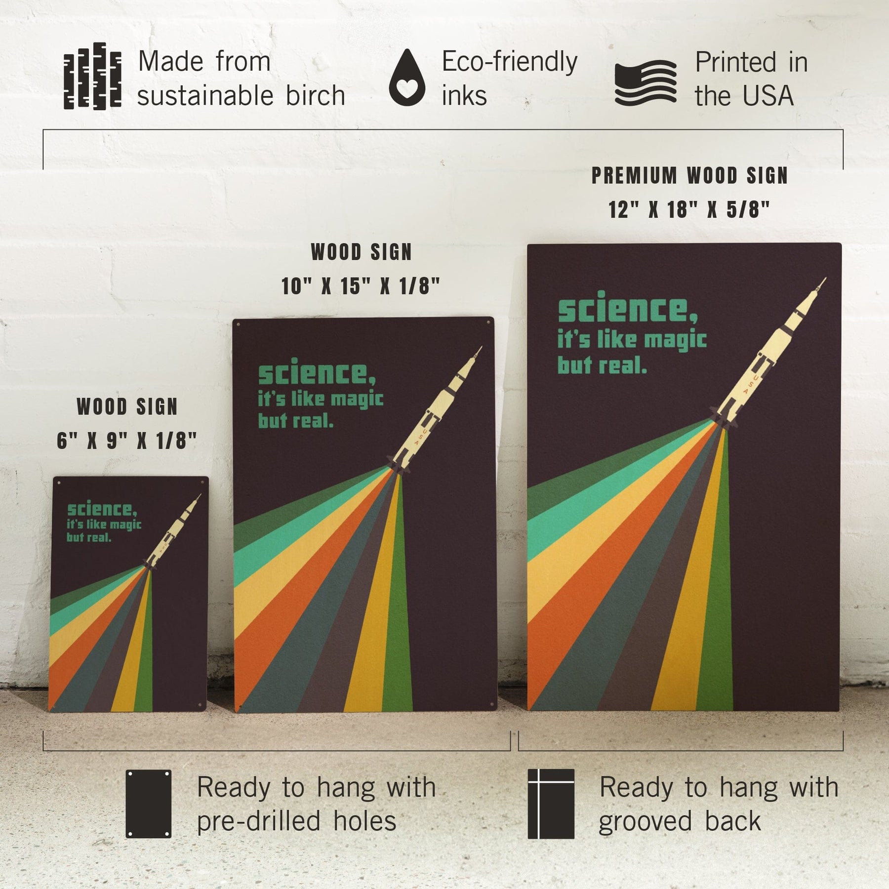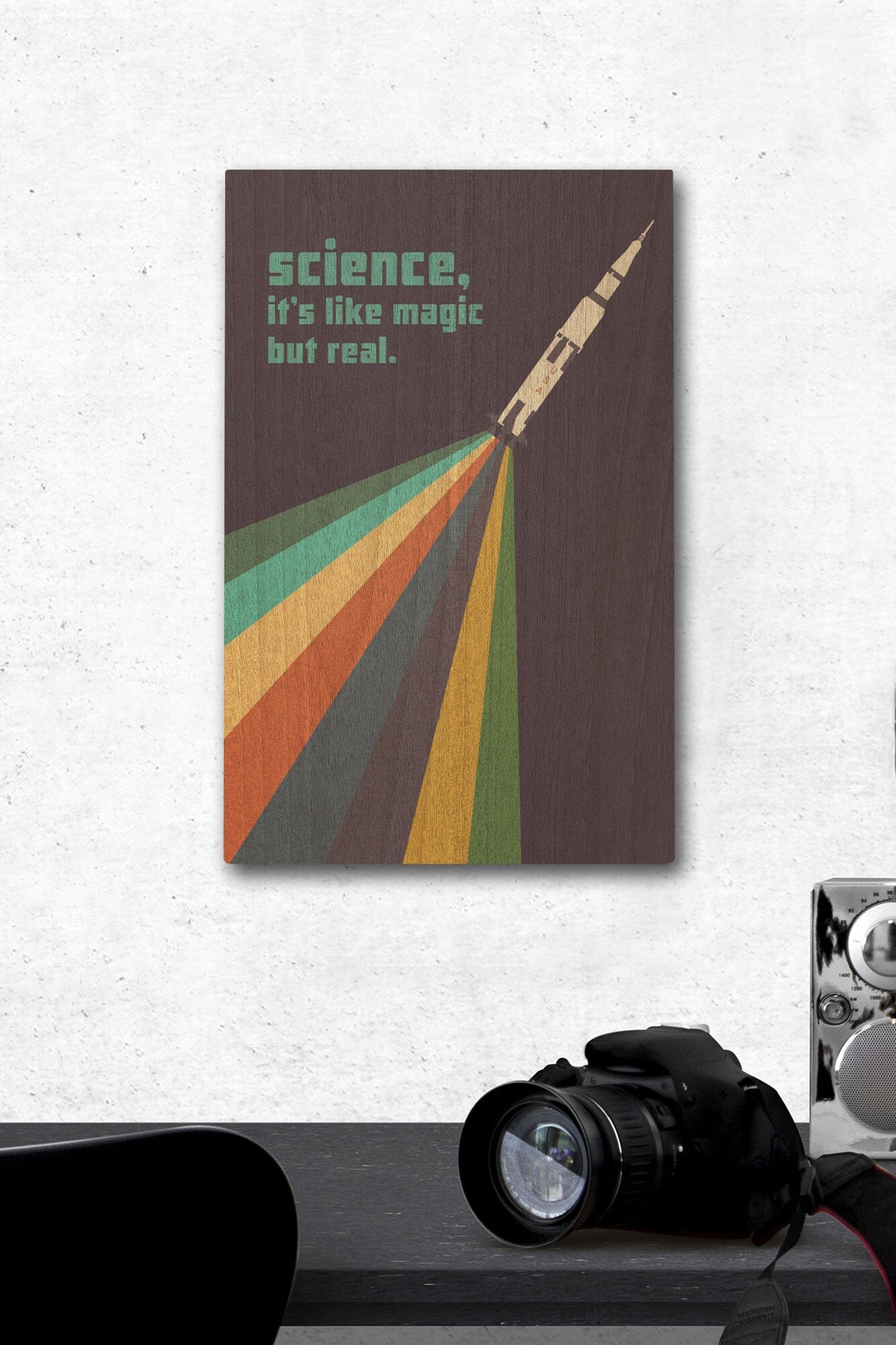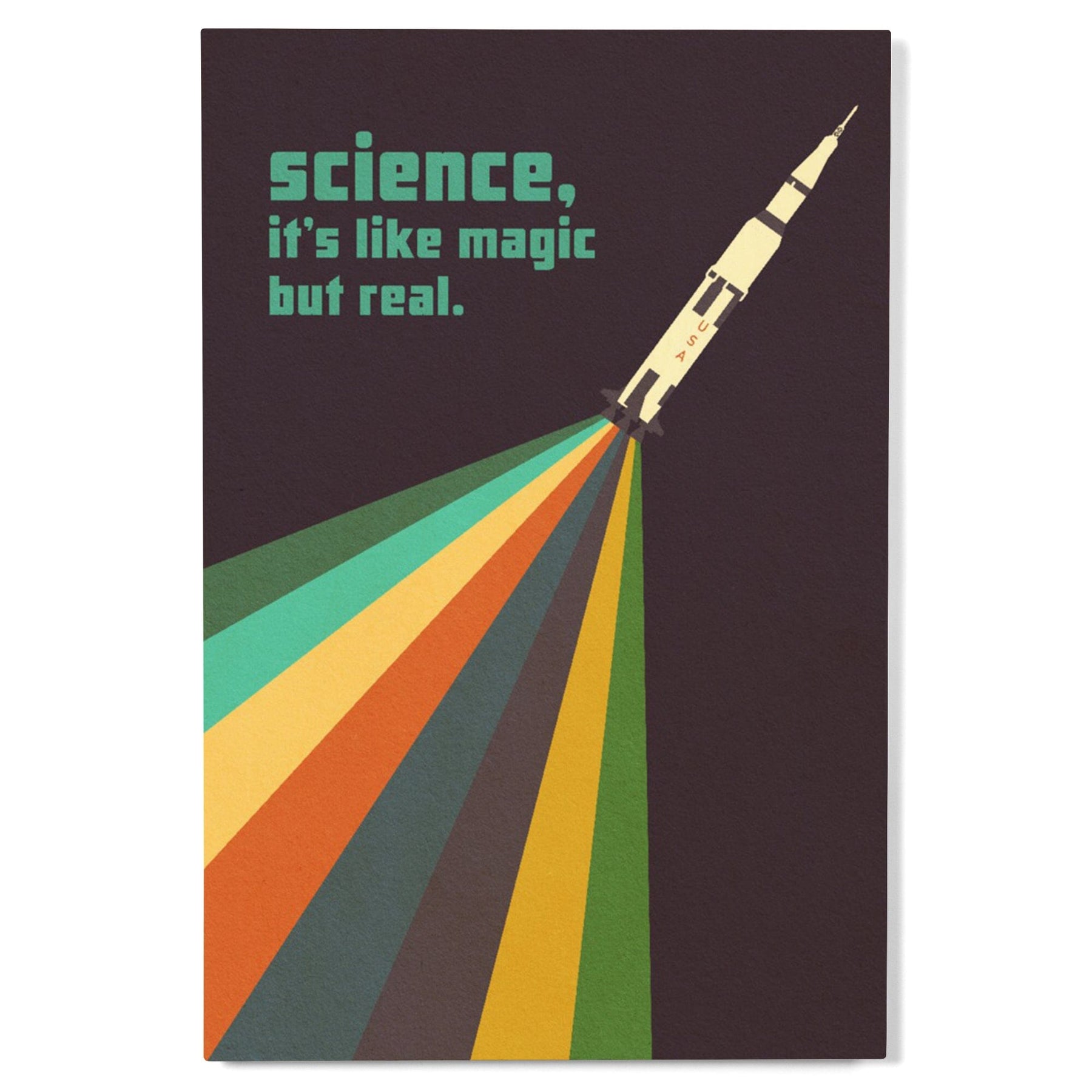 Space Is The Place Collection, Rainbow Rocket, Science It's Like Magic But Real, Wood Signs and Postcards Wood Lantern Press