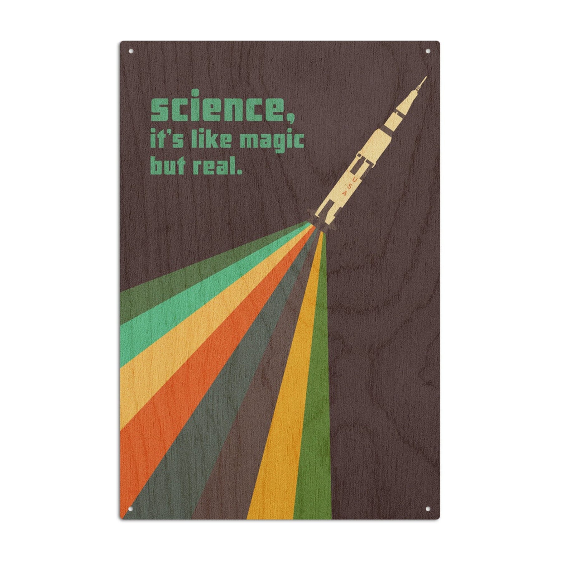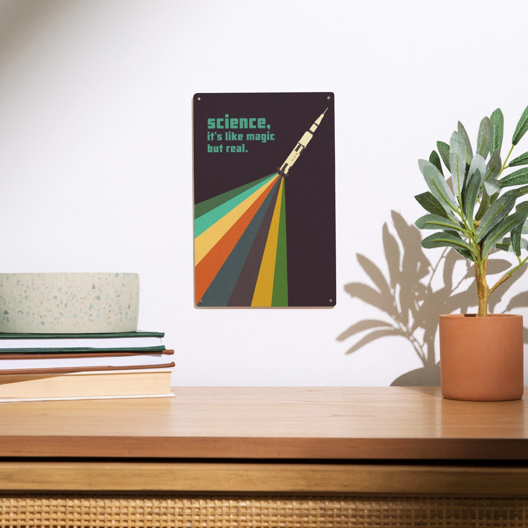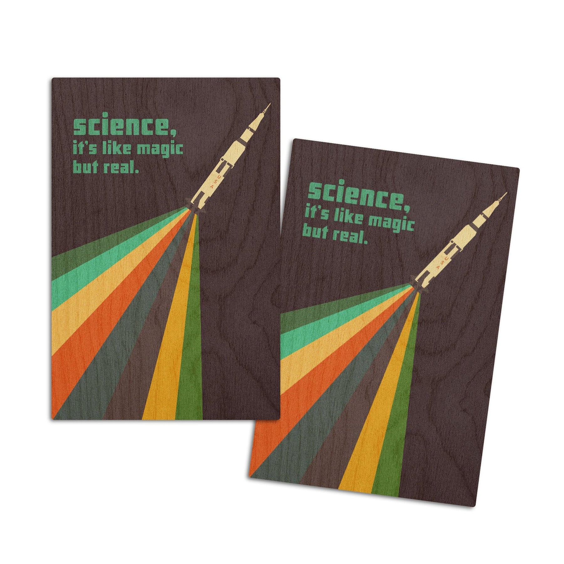 Space Is The Place Collection, Rainbow Rocket, Science It's Like Magic But Real, Wood Signs and Postcards Wood Lantern Press
