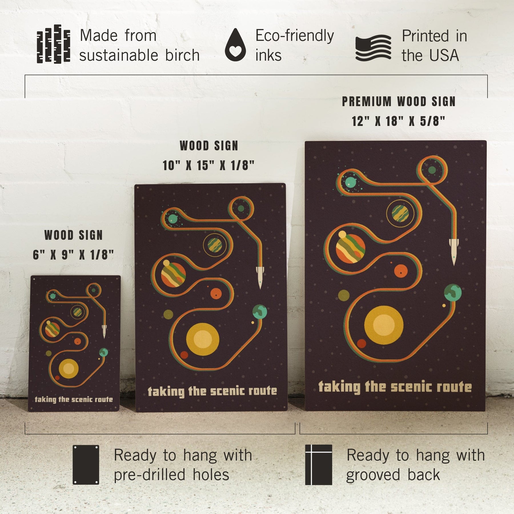Space Is The Place Collection, Solar System, Taking The Scenic Route, Wood Signs and Postcards Wood Lantern Press