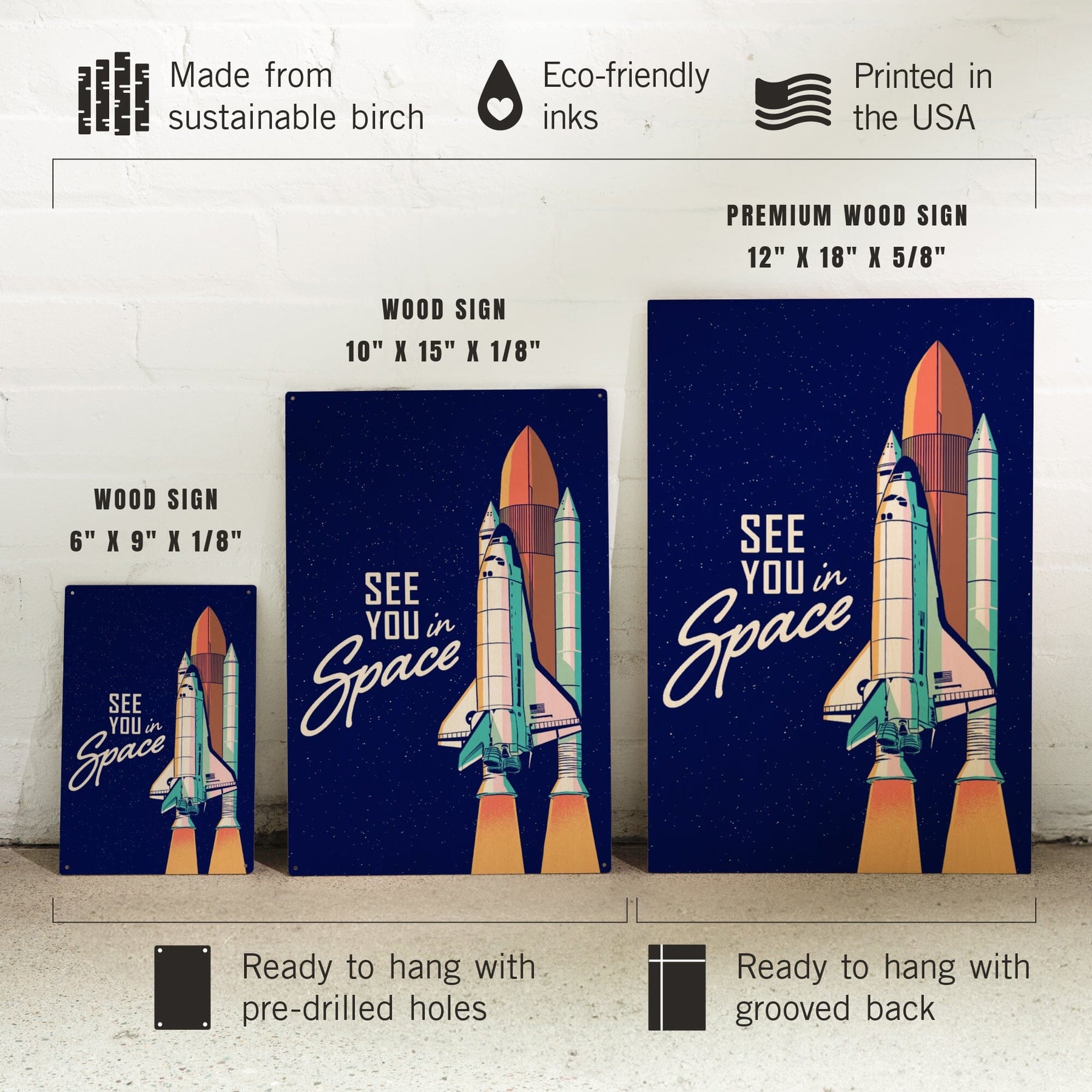 Space Queens Collection, Shuttle Launch, See You In Space, Wood Signs and Postcards Wood Lantern Press