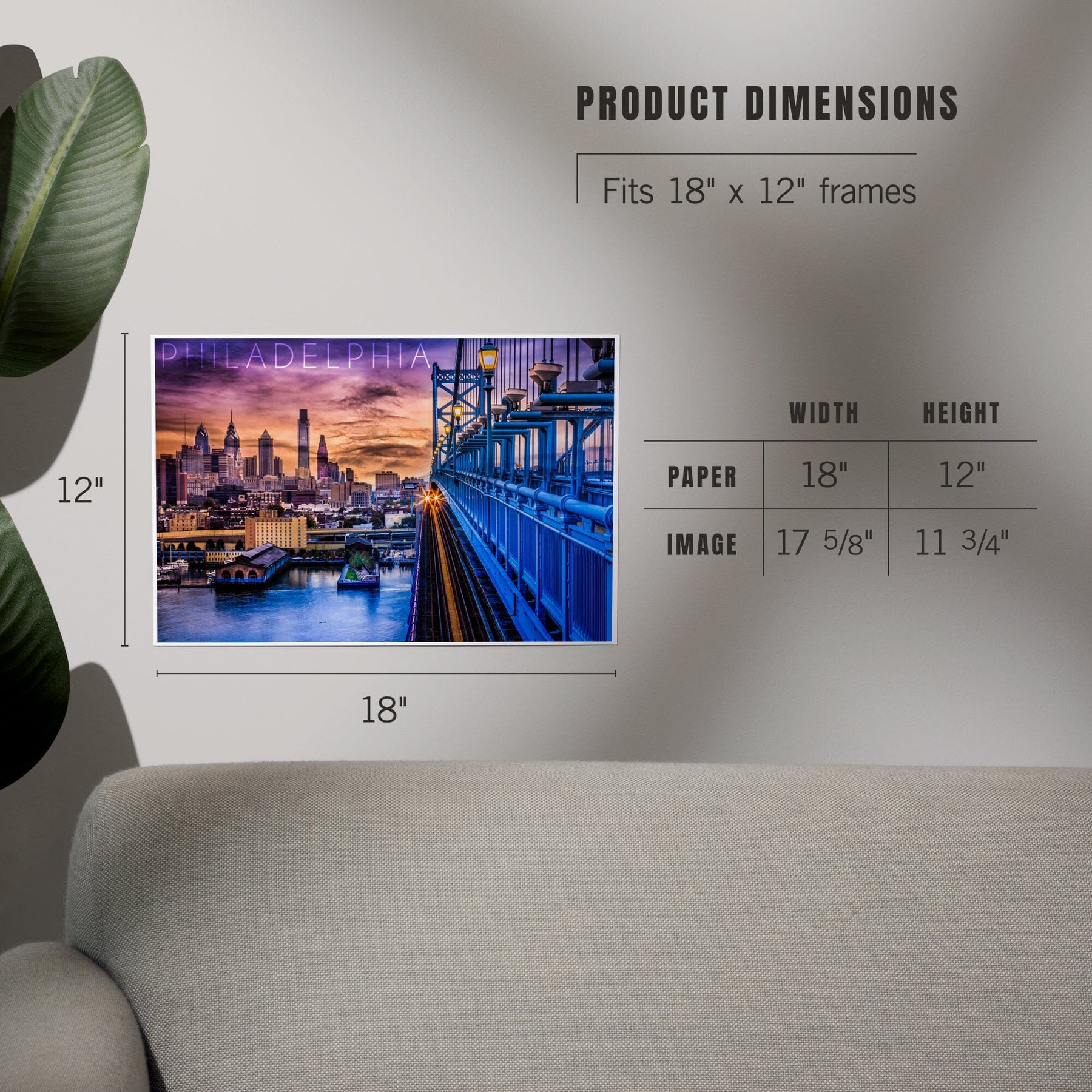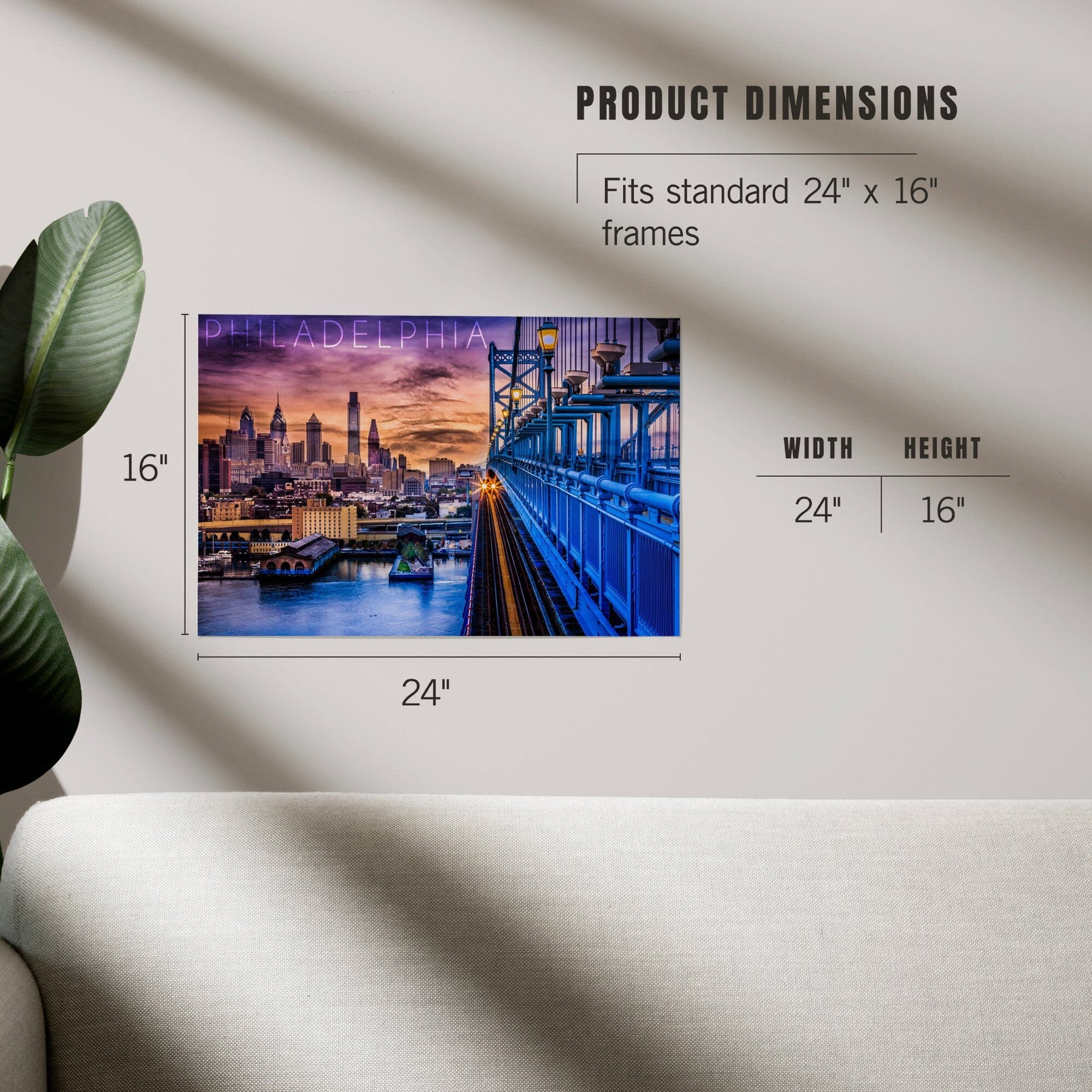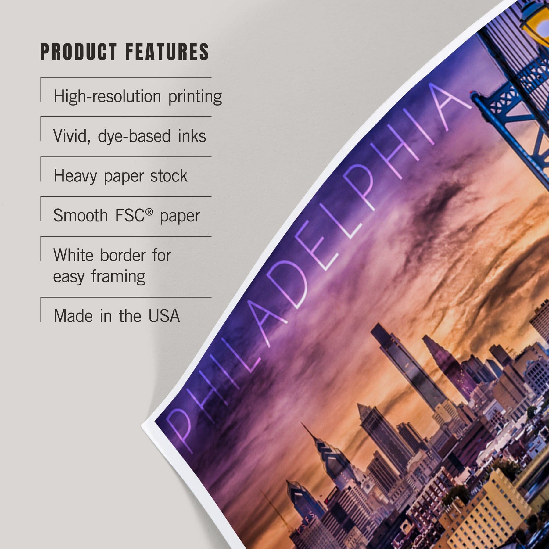 Philadelphia, Pennsylvania, Skyline and Bridge Sunset, Art & Giclee Prints Art Lantern Press