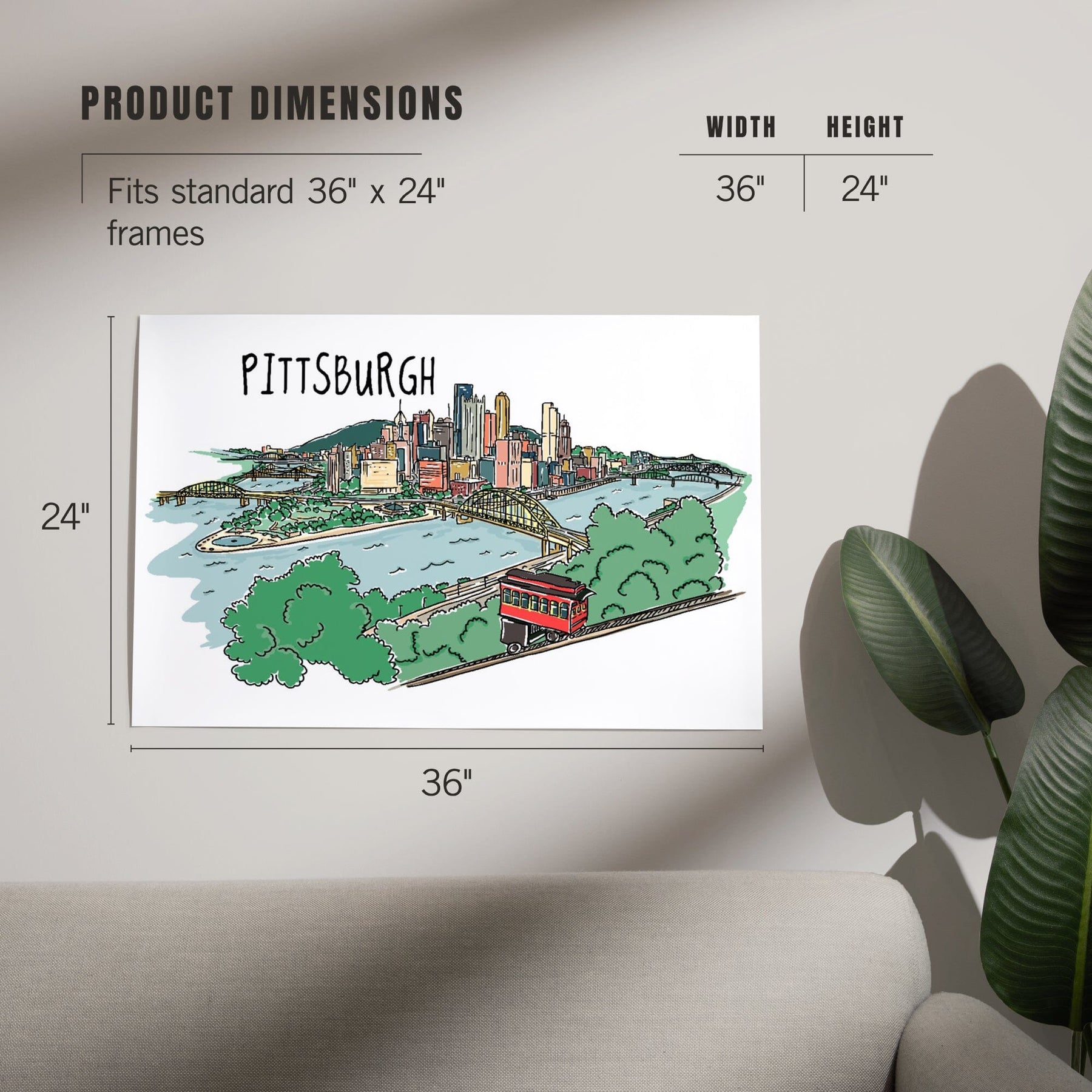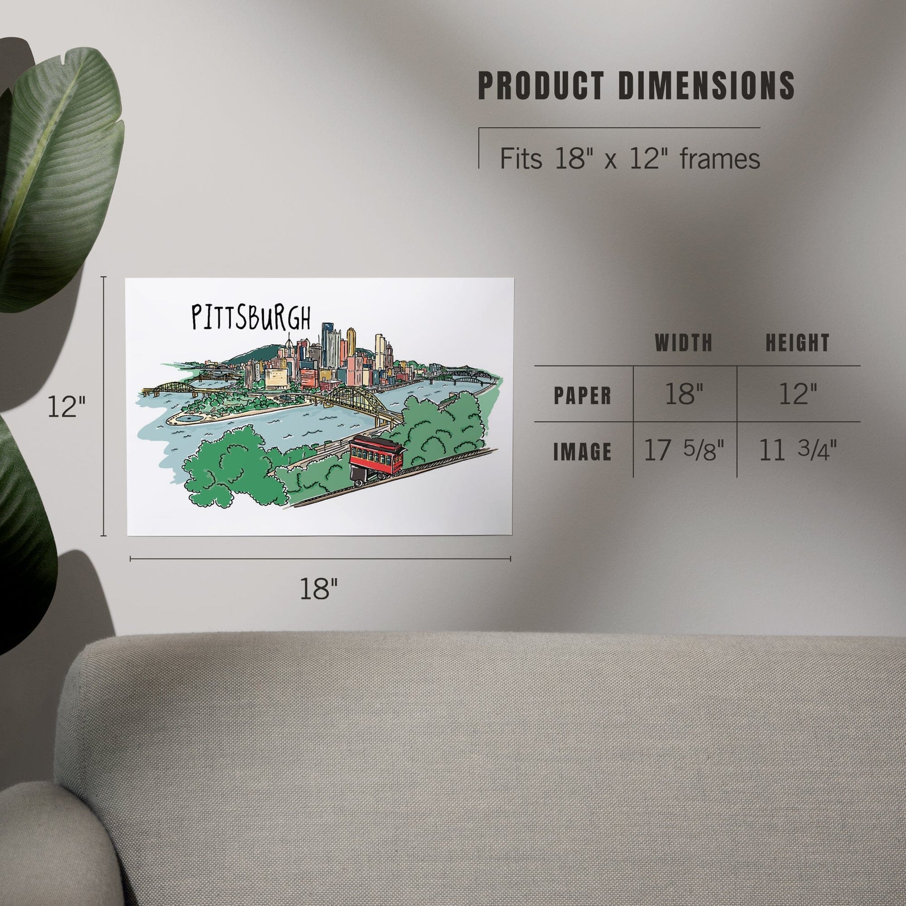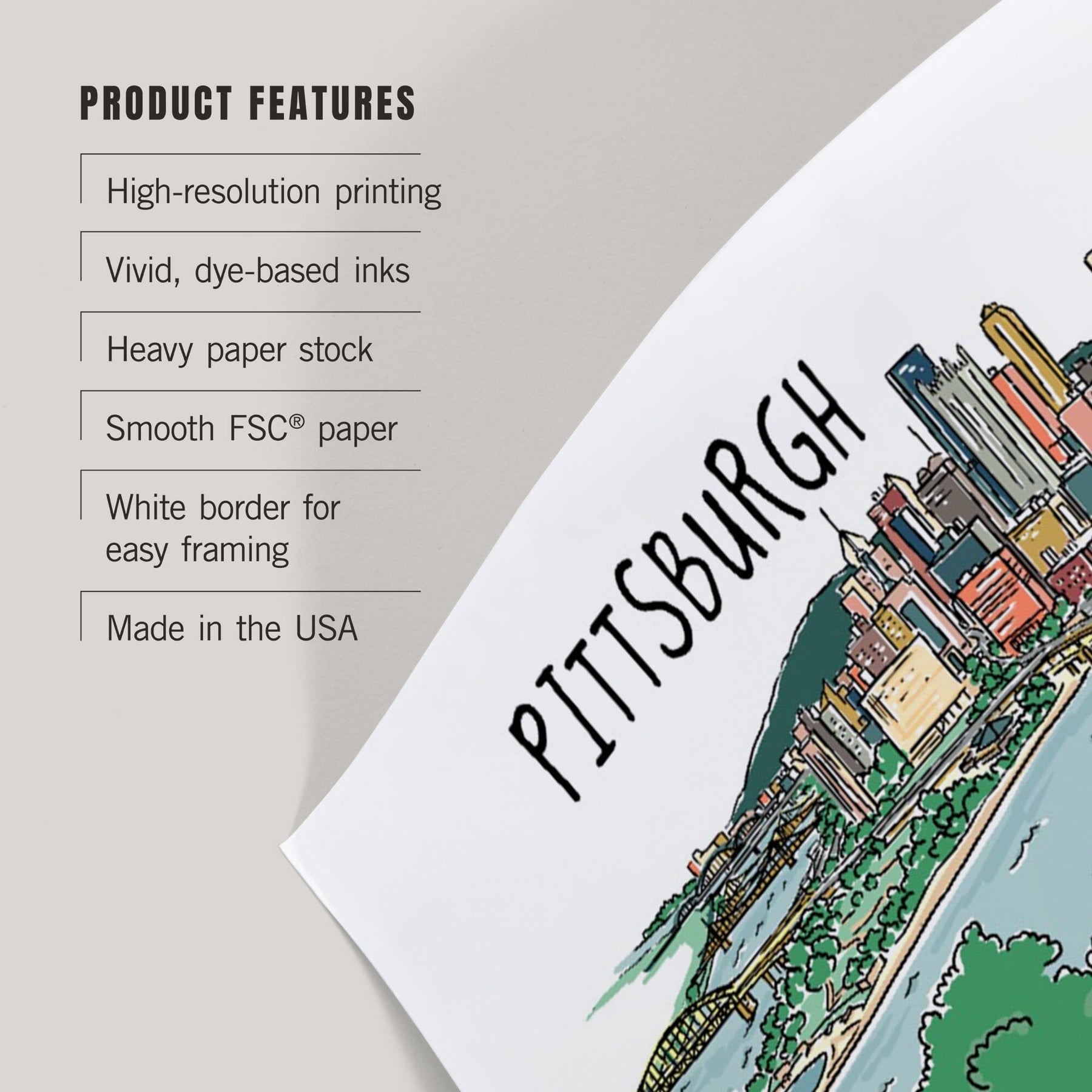 Pittsburgh, Pennsylvania, Line Drawing, Art & Giclee Prints Art Lantern Press