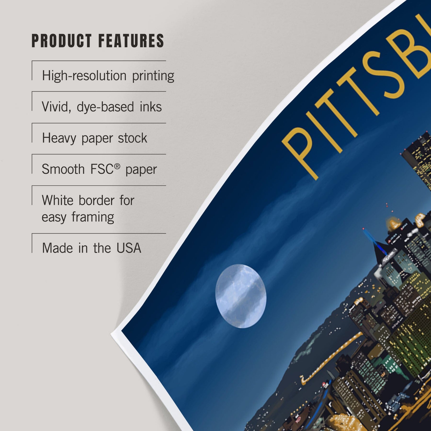 Pittsburgh, Pennsylvania, Skyline at Night, Art & Giclee Prints Art Lantern Press