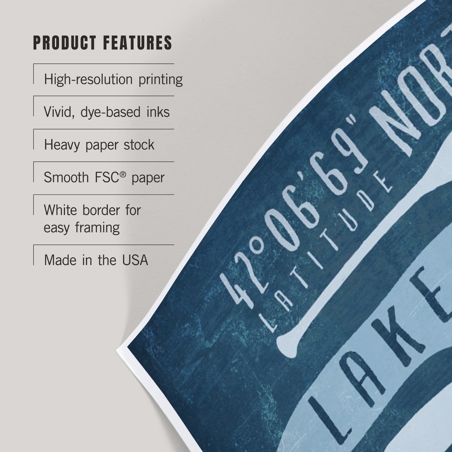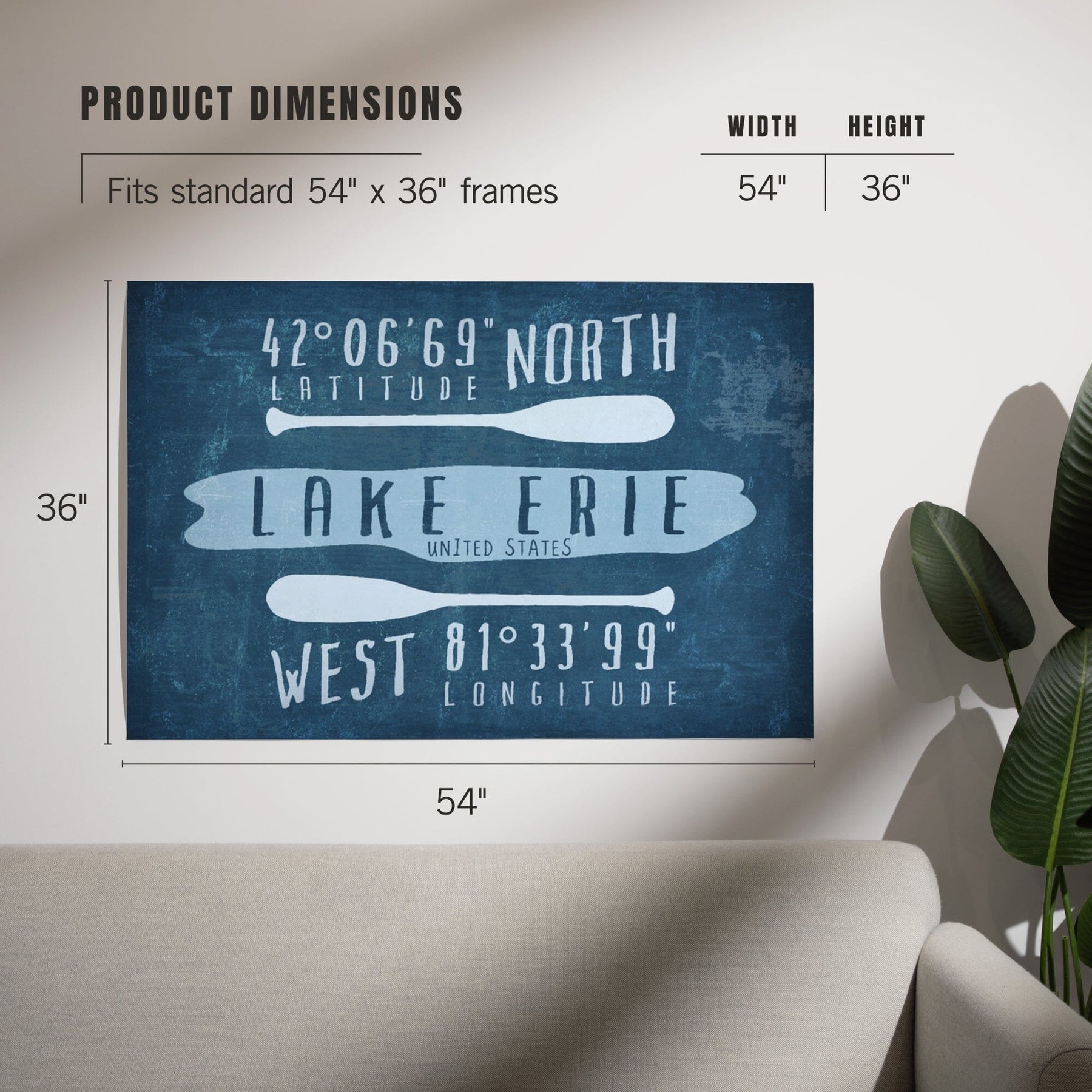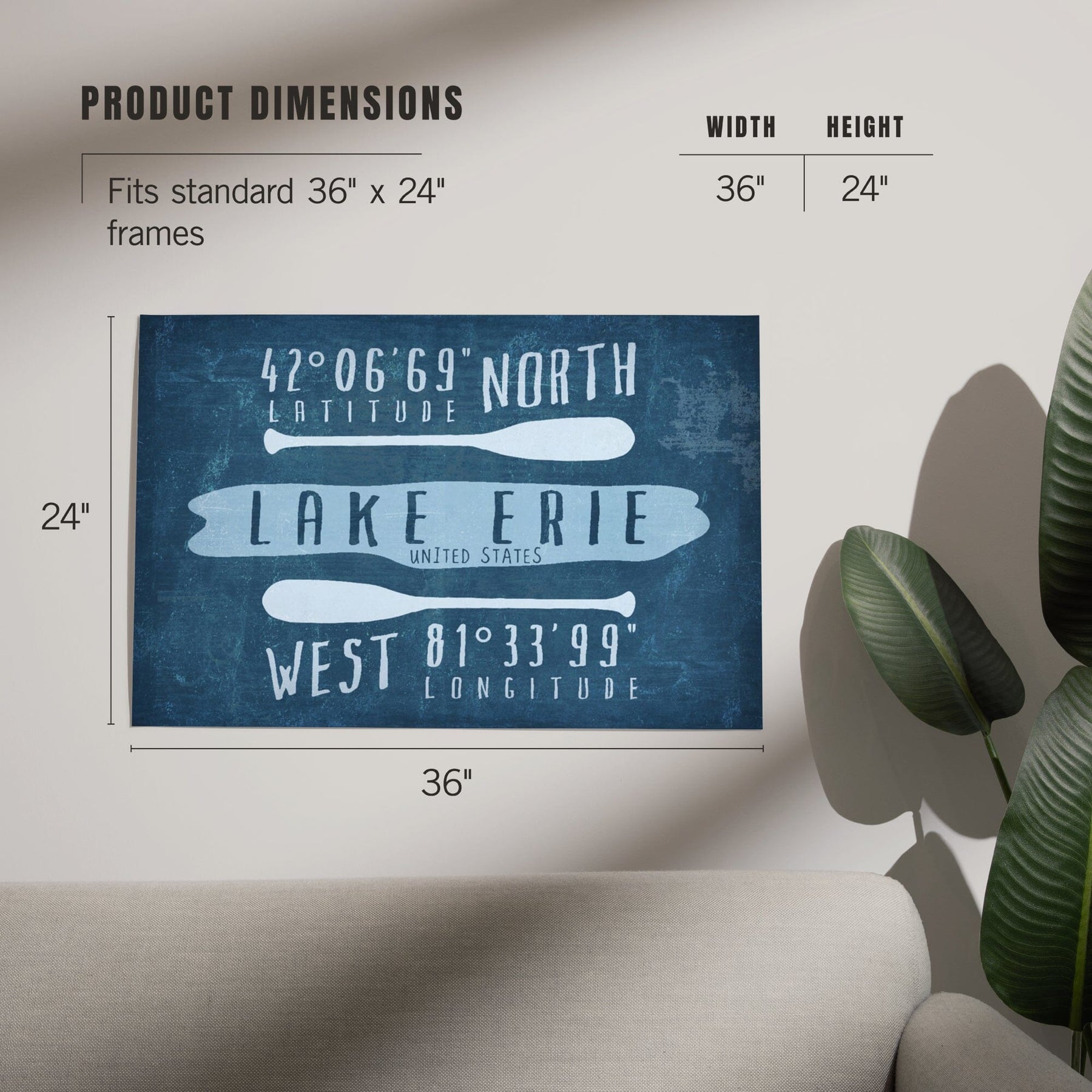 Lake Erie, United States, Lake Essentials, Latitude and Longitude, Art & Giclee Prints - Lantern Press