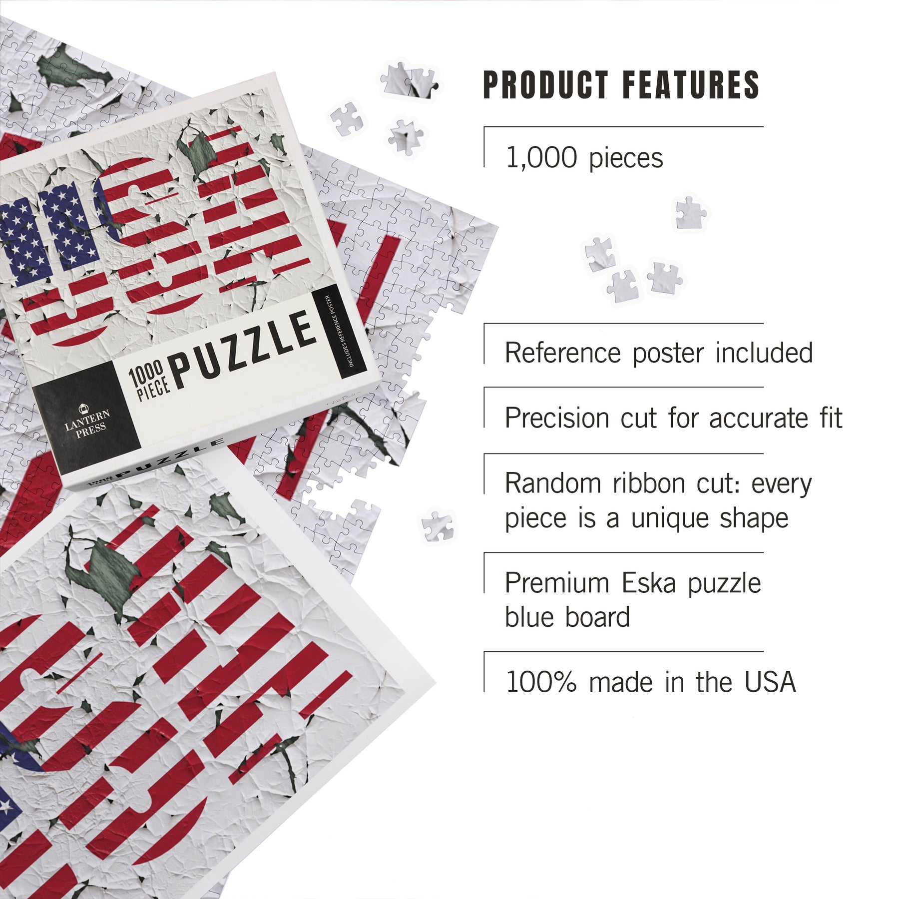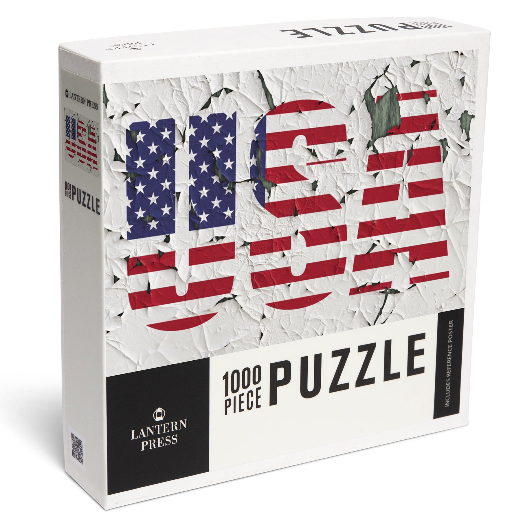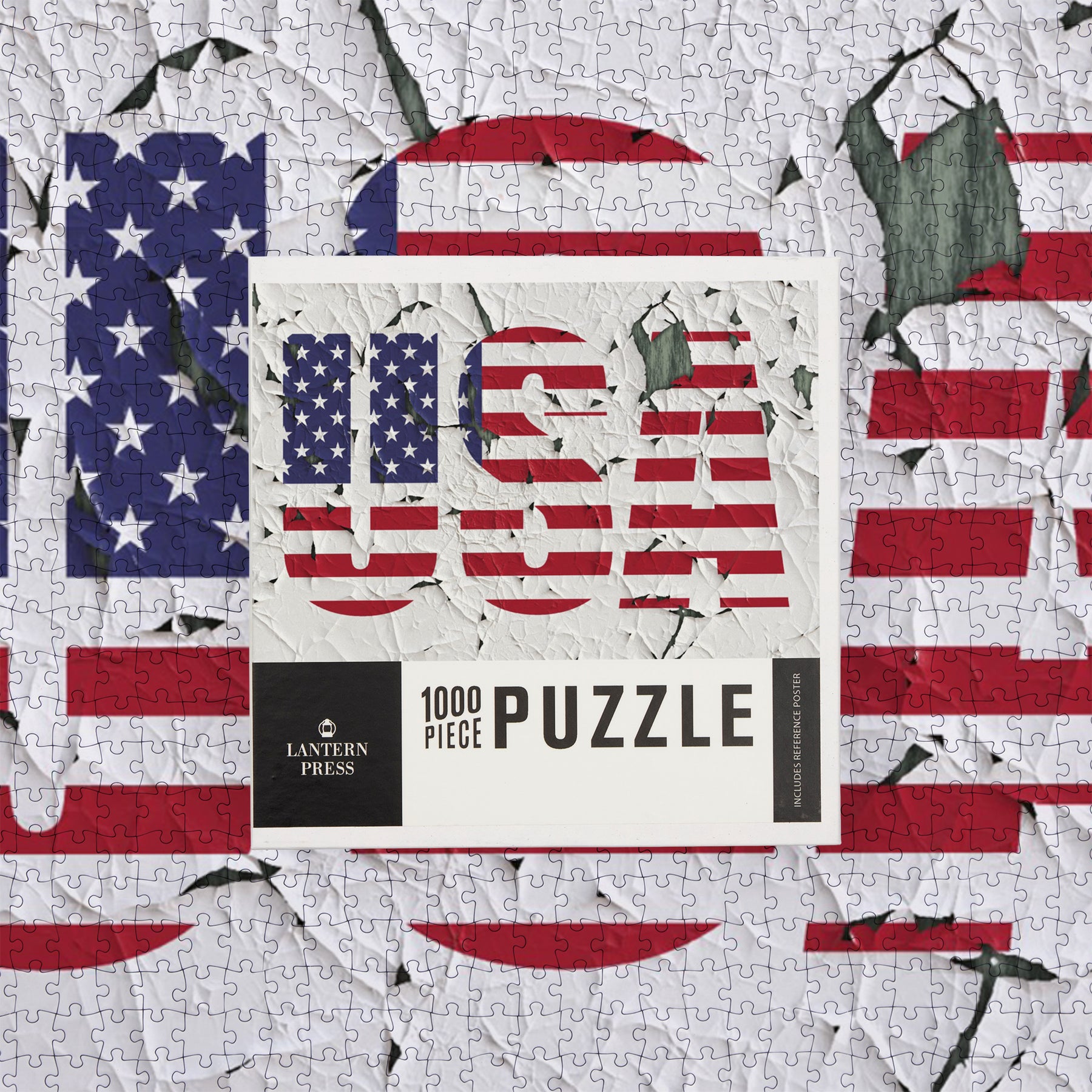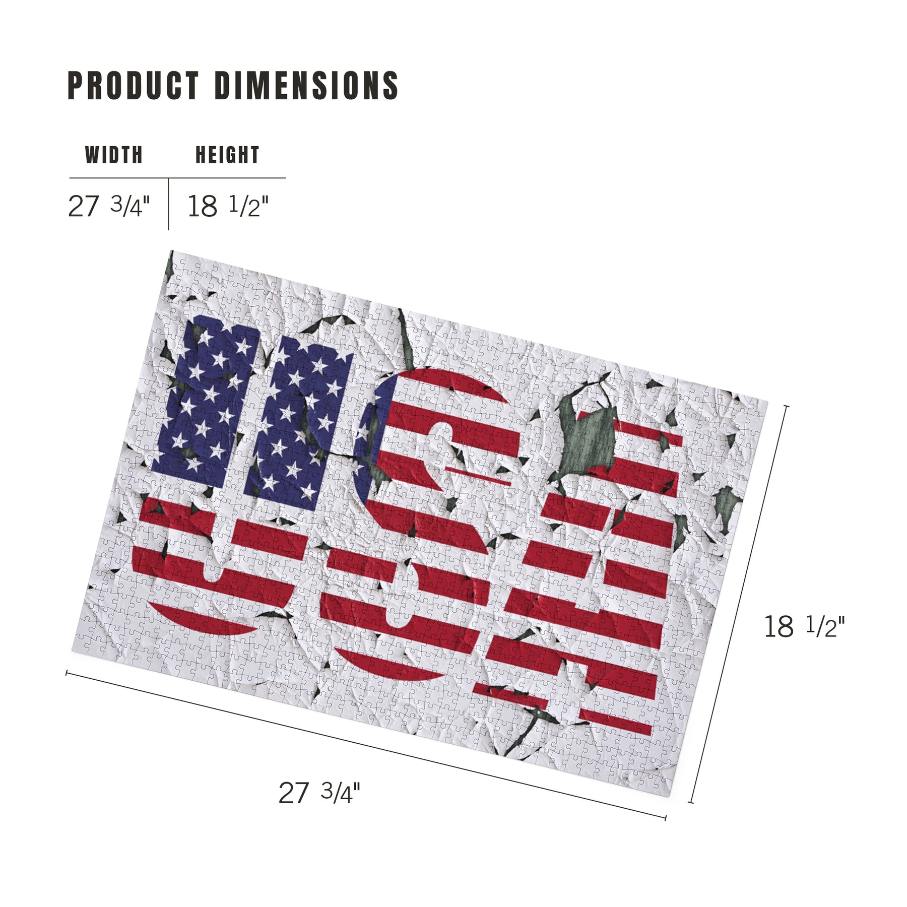 American Flag, USA, Typography, Jigsaw Puzzle Puzzle Lantern Press
