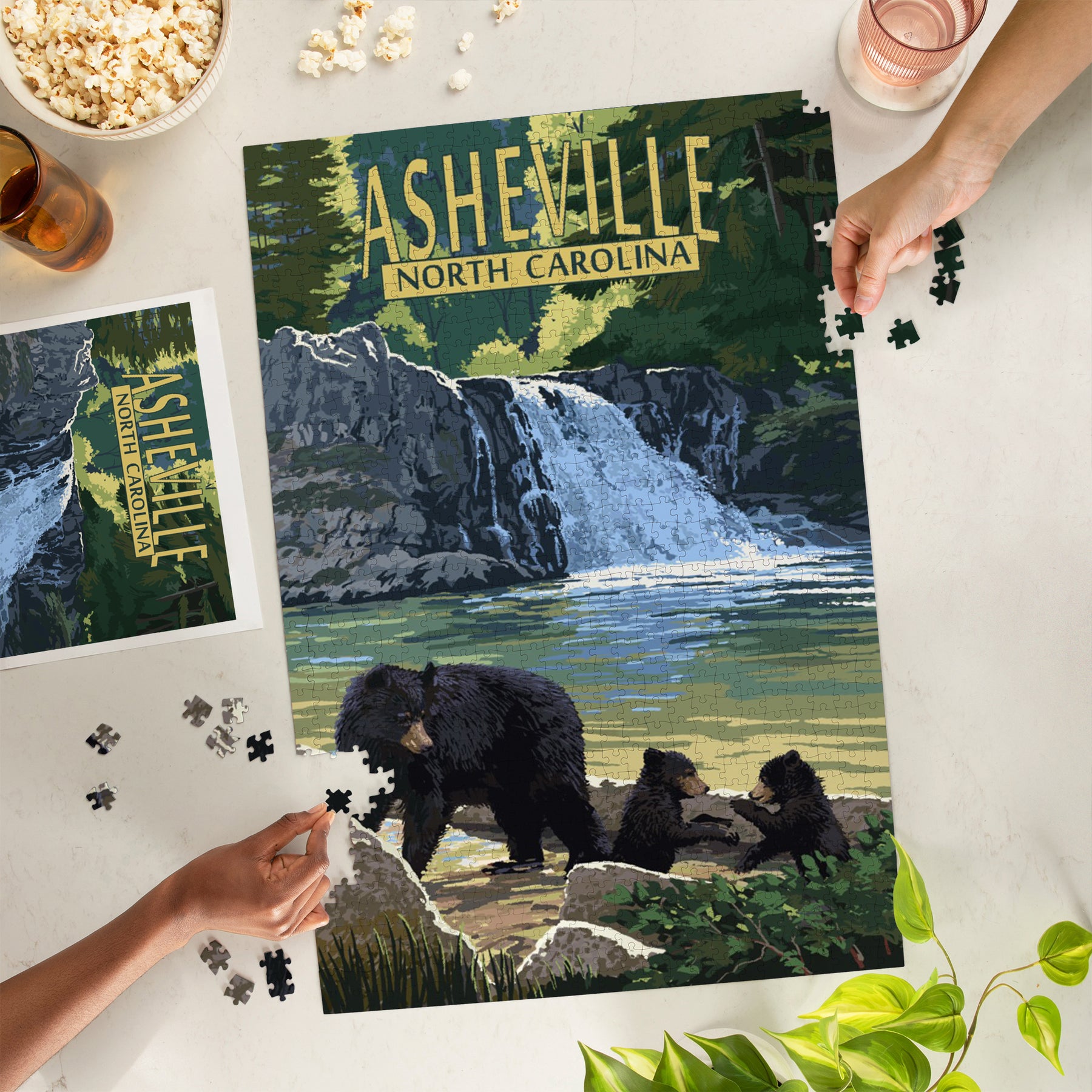 Asheville, North Carolina, Painterly, Falls, Jigsaw Puzzle Puzzle Lantern Press