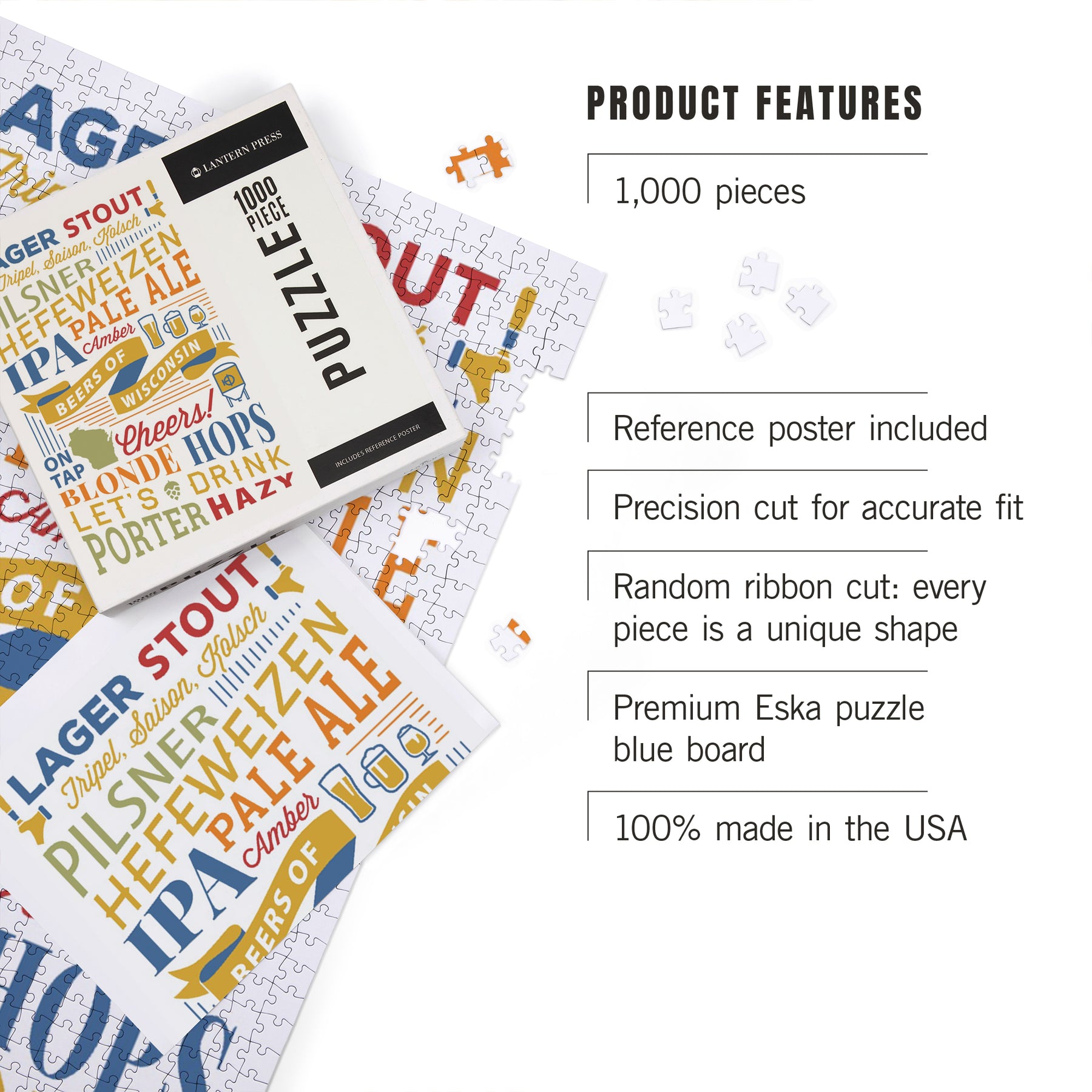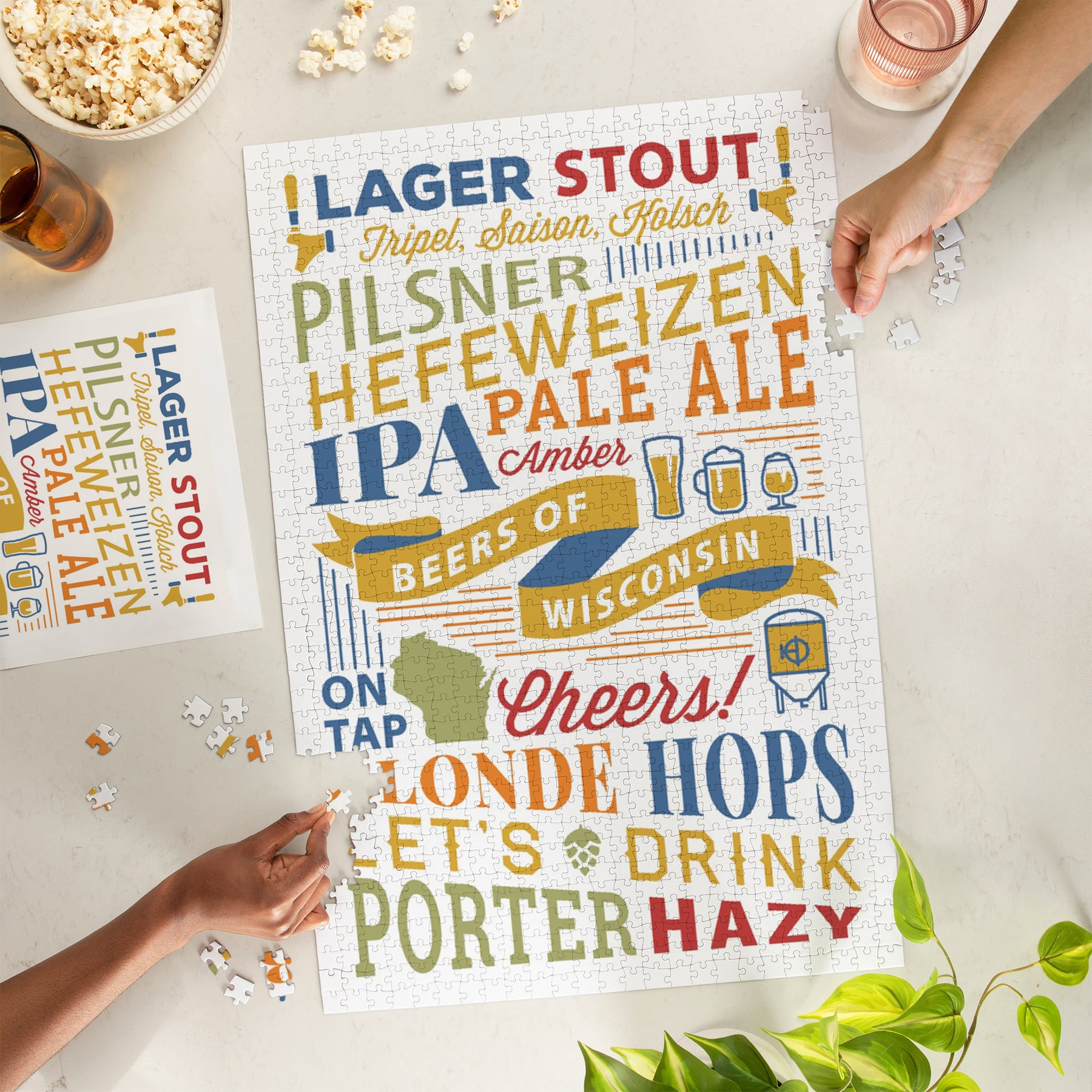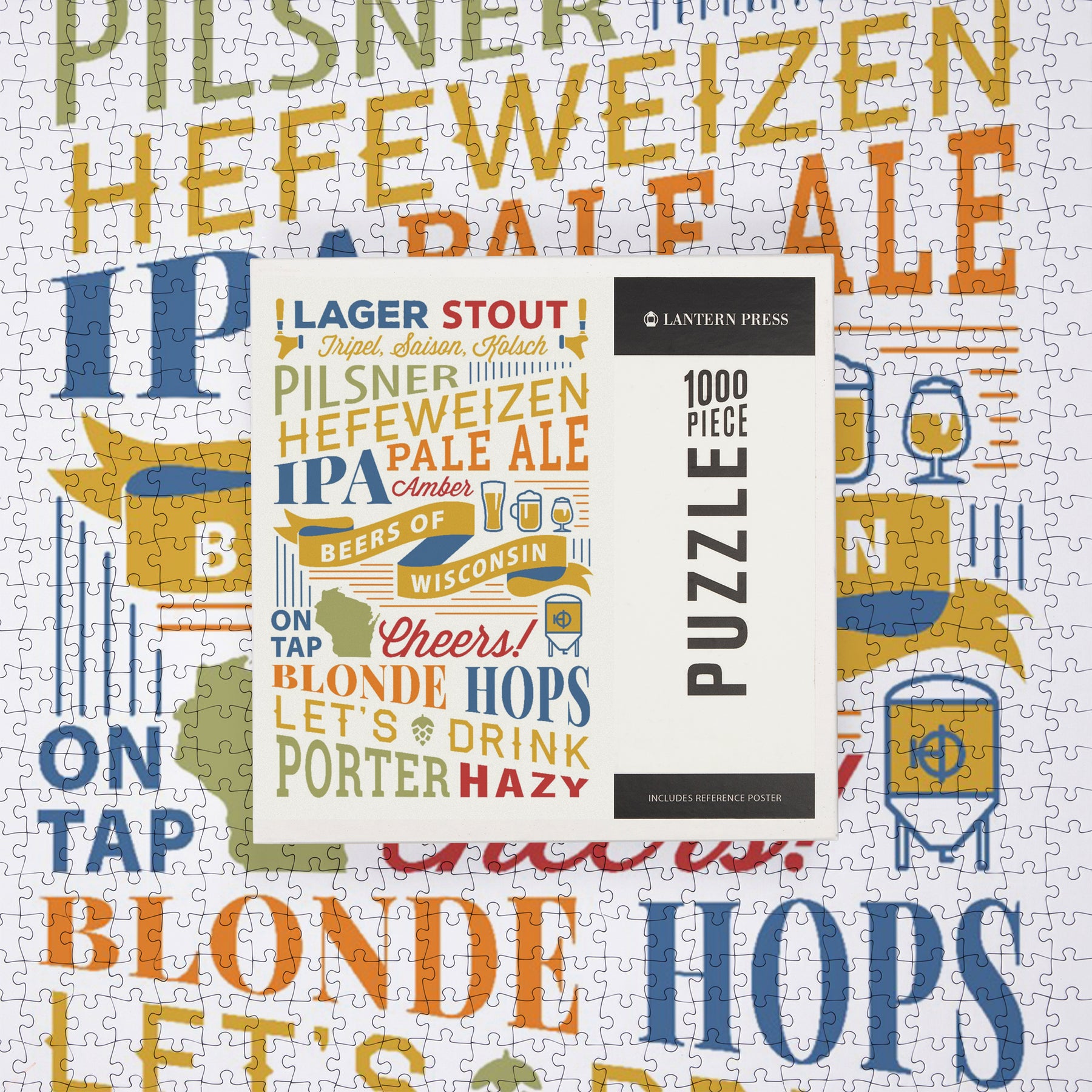 Beers of Wisconsin, Typography, Jigsaw Puzzle Puzzle Lantern Press