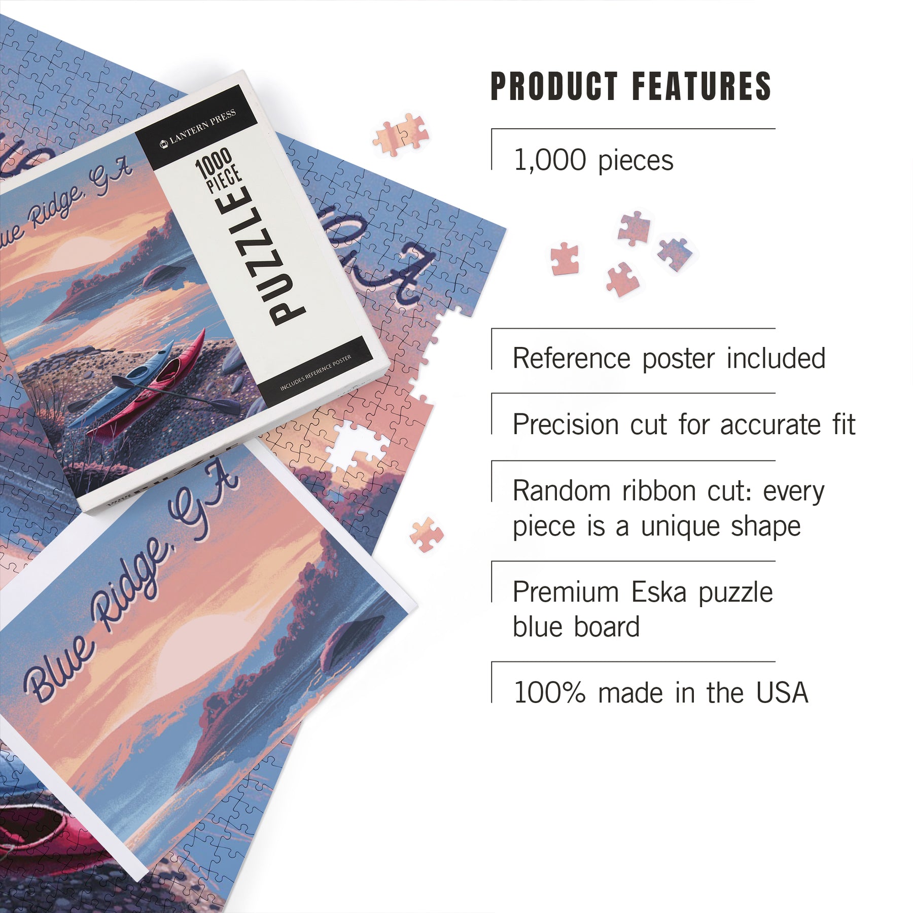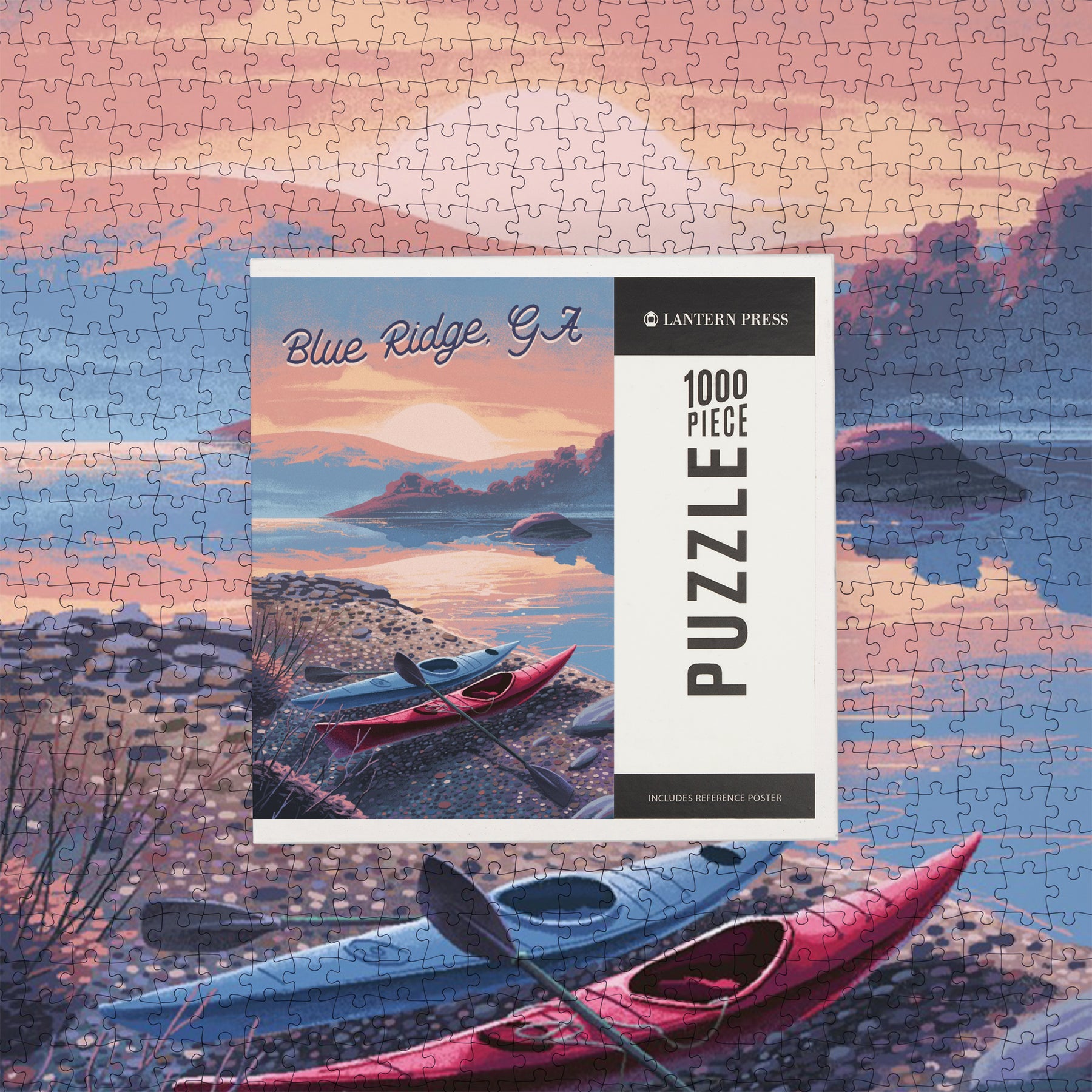 Blue Ridge, Georgia, Glassy Sunrise, Kayak, Jigsaw Puzzle Puzzle Lantern Press