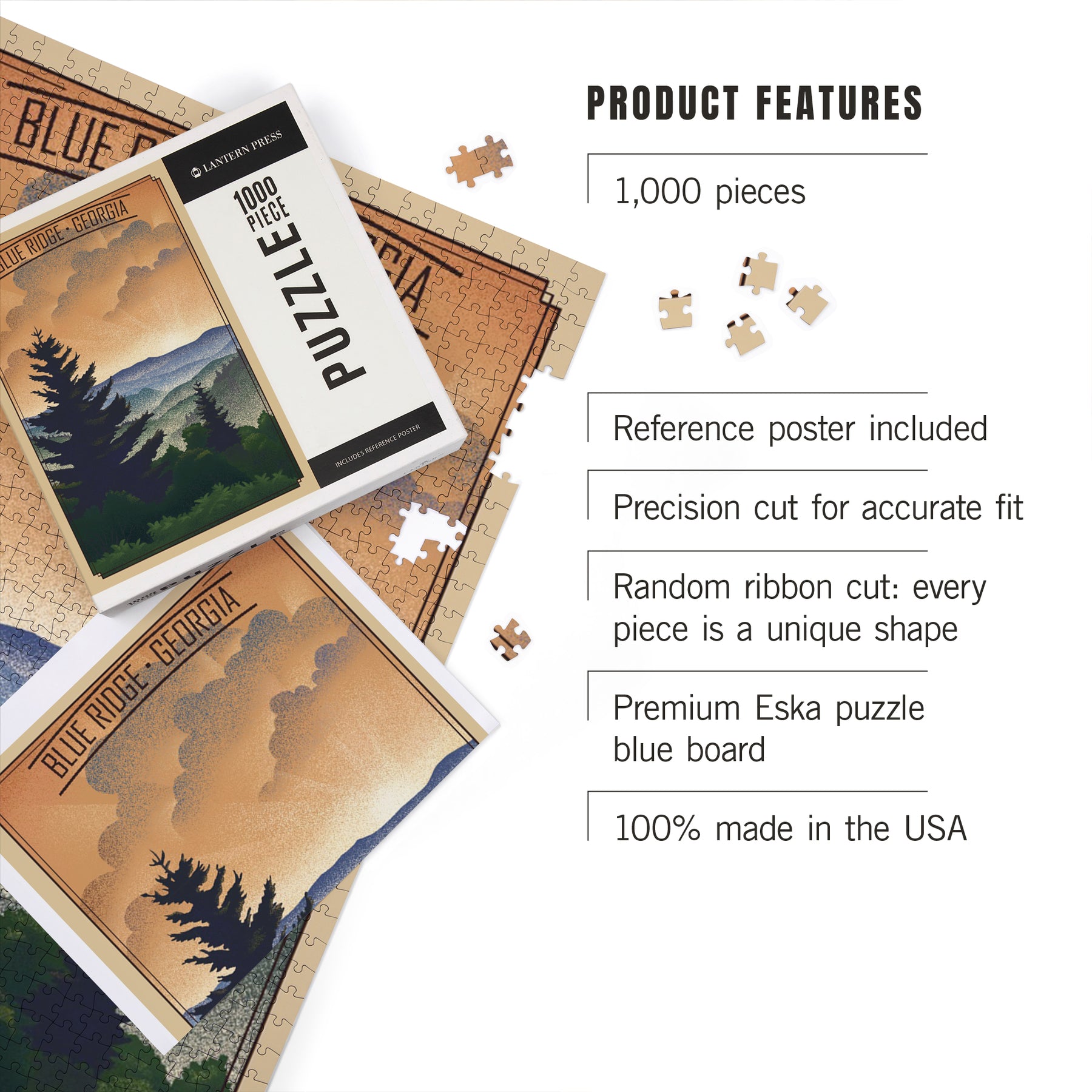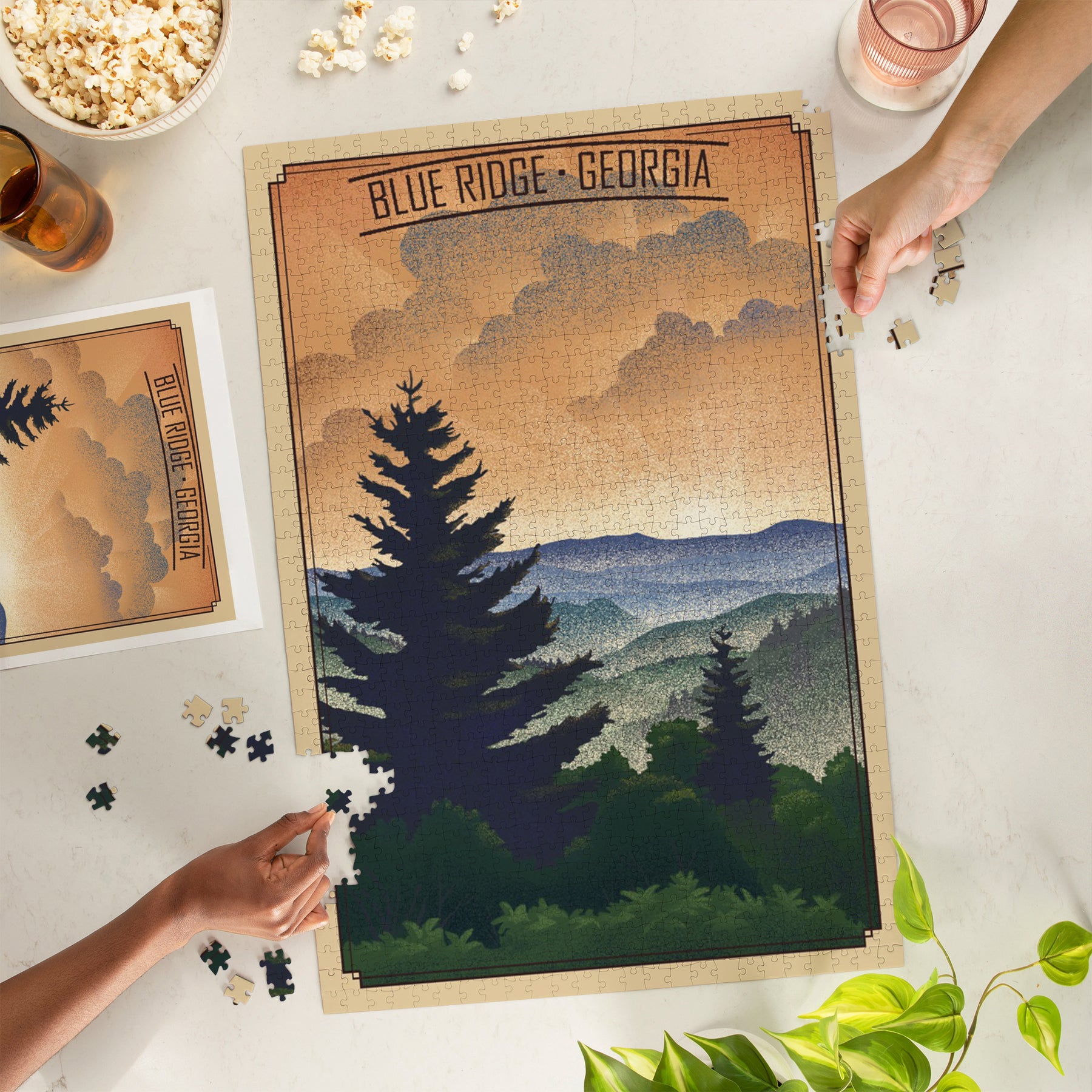 Blue Ridge, Georgia, Lithograph, Jigsaw Puzzle Puzzle Lantern Press