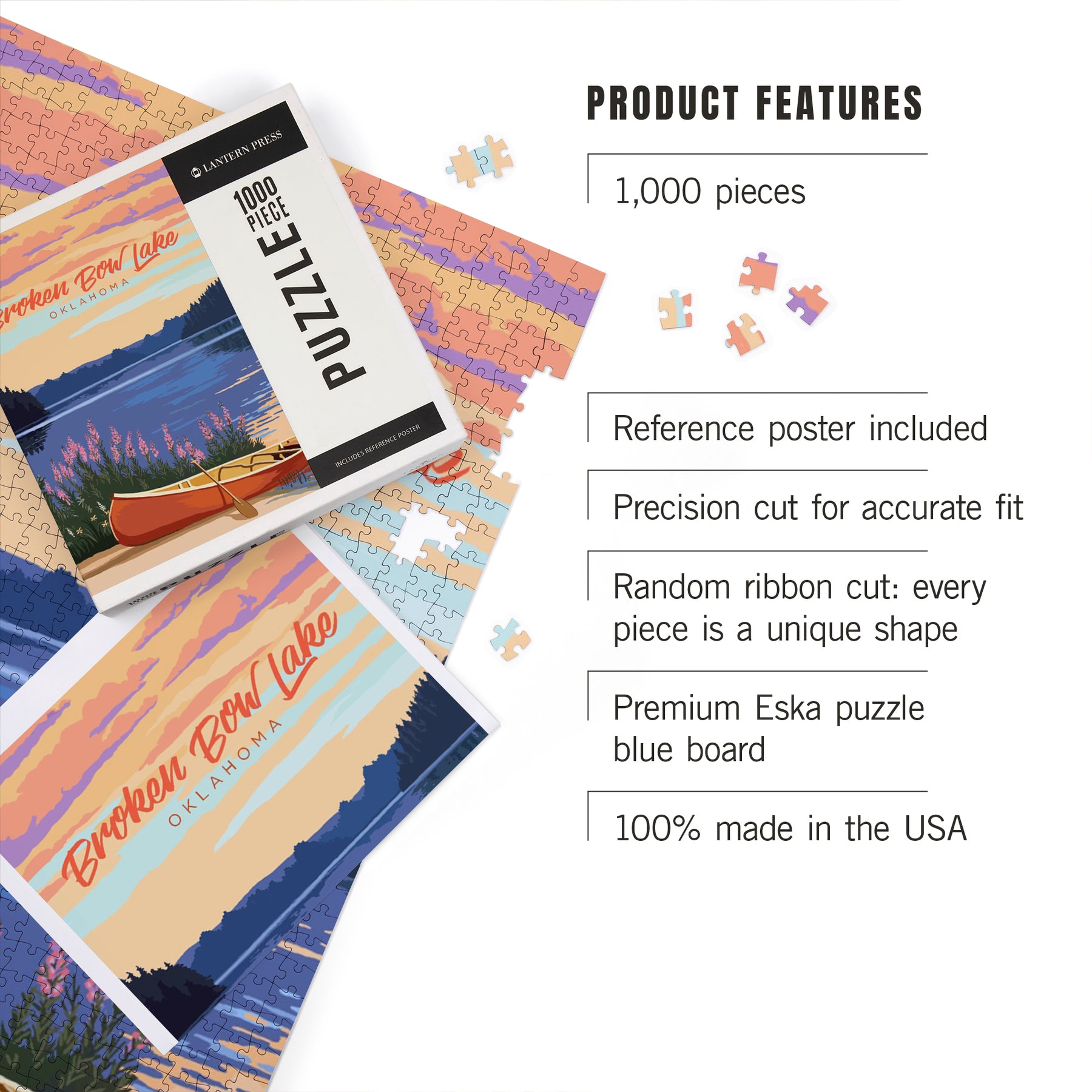 Broken Bow Lake, Oklahoma, Canoe and Lake, Jigsaw Puzzle Puzzle Lantern Press