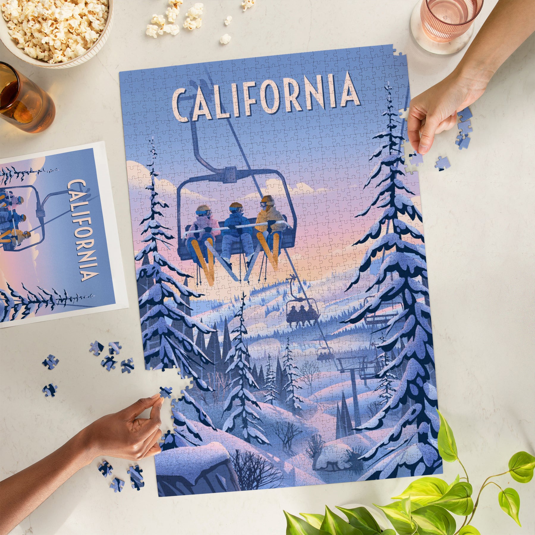California, Chill on the Uphill, Ski Lift, Jigsaw Puzzle Puzzle Lantern Press