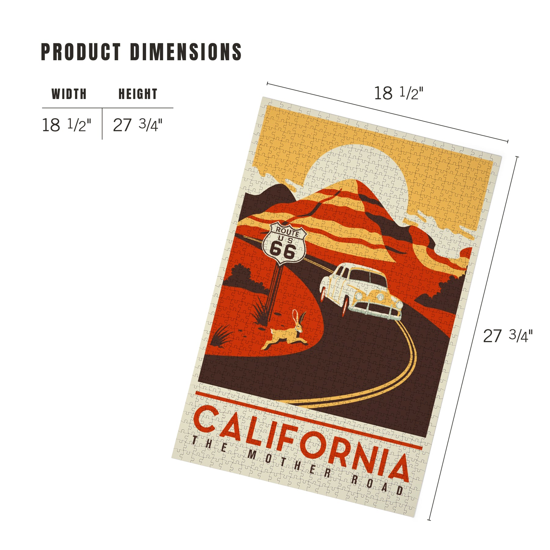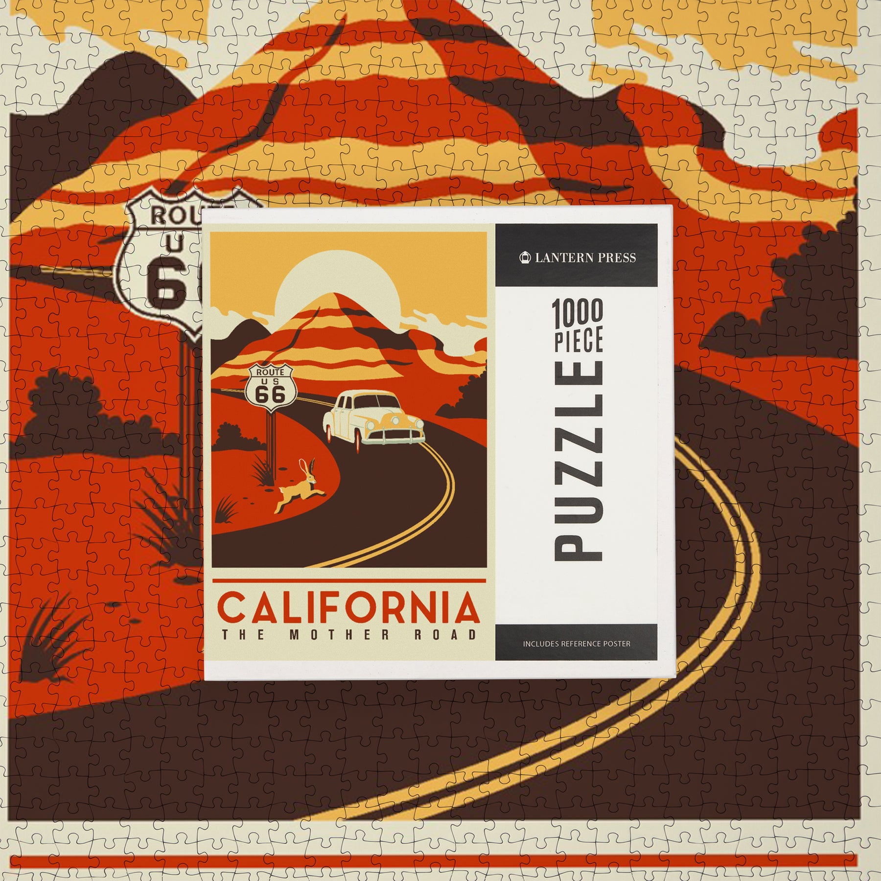 California, Route 66, Mother Road, Simplified, Jigsaw Puzzle Puzzle Lantern Press