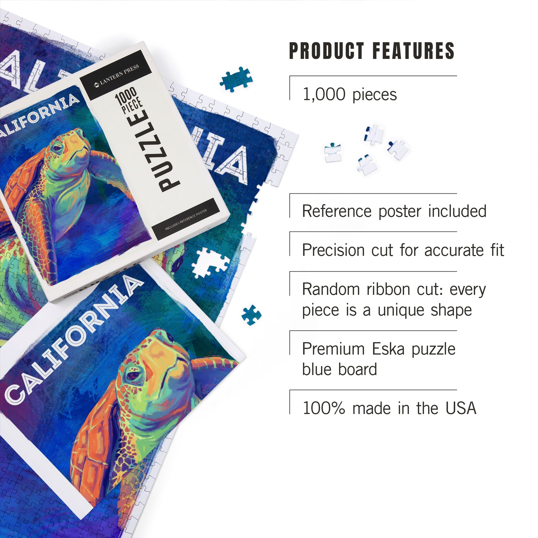 California, Vivid, Sea Turtle, Jigsaw Puzzle Puzzle Lantern Press