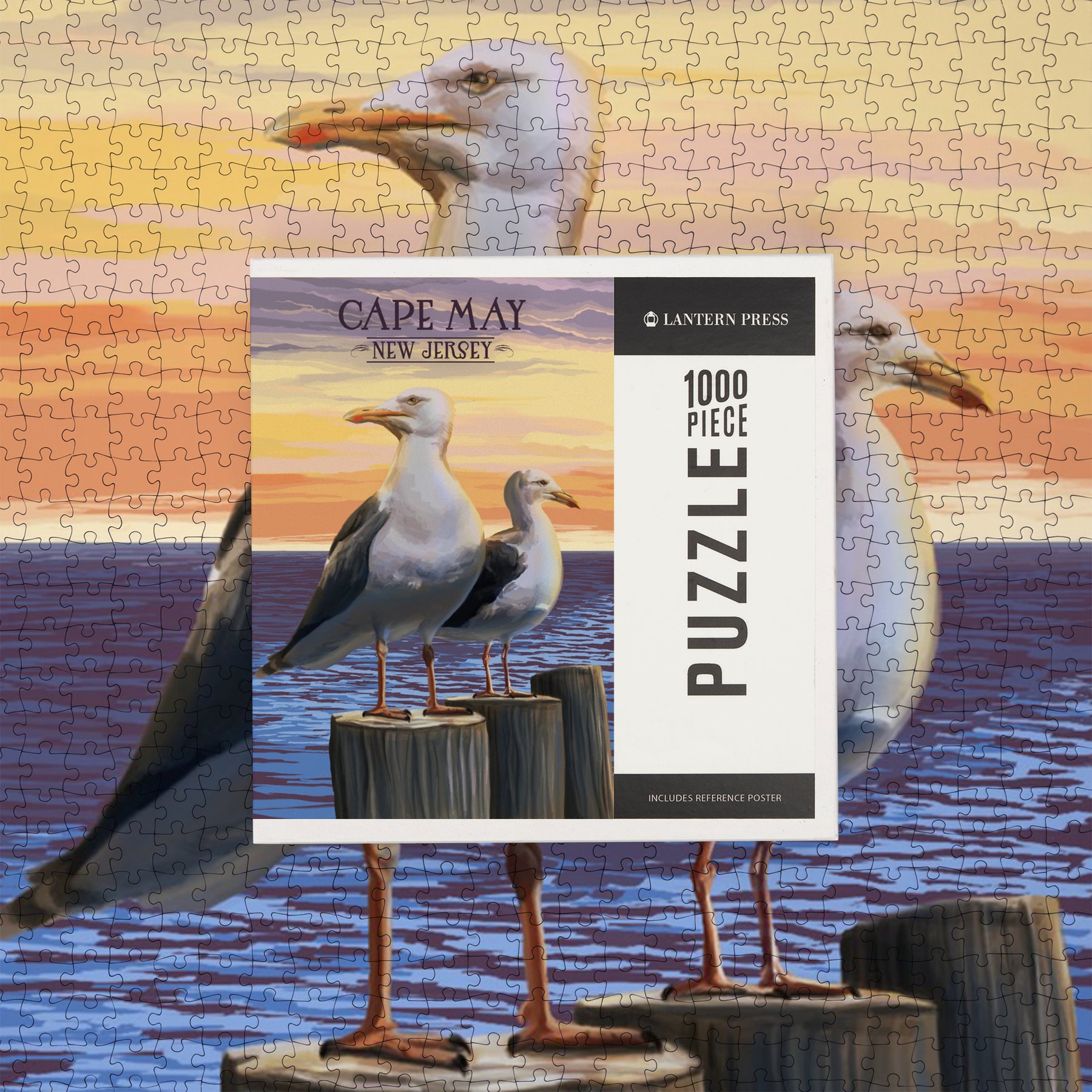 Cape May, New Jersey, Seagulls on Pier, Jigsaw Puzzle Puzzle Lantern Press