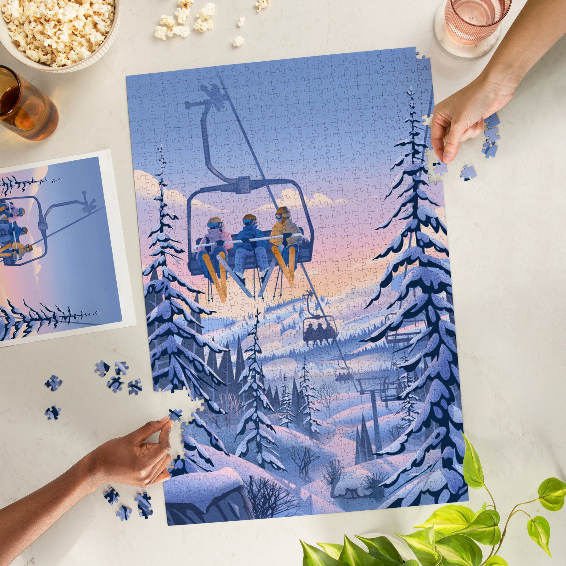 Chill on the Uphill Ski Lift, Jigsaw Puzzle Puzzle Lantern Press