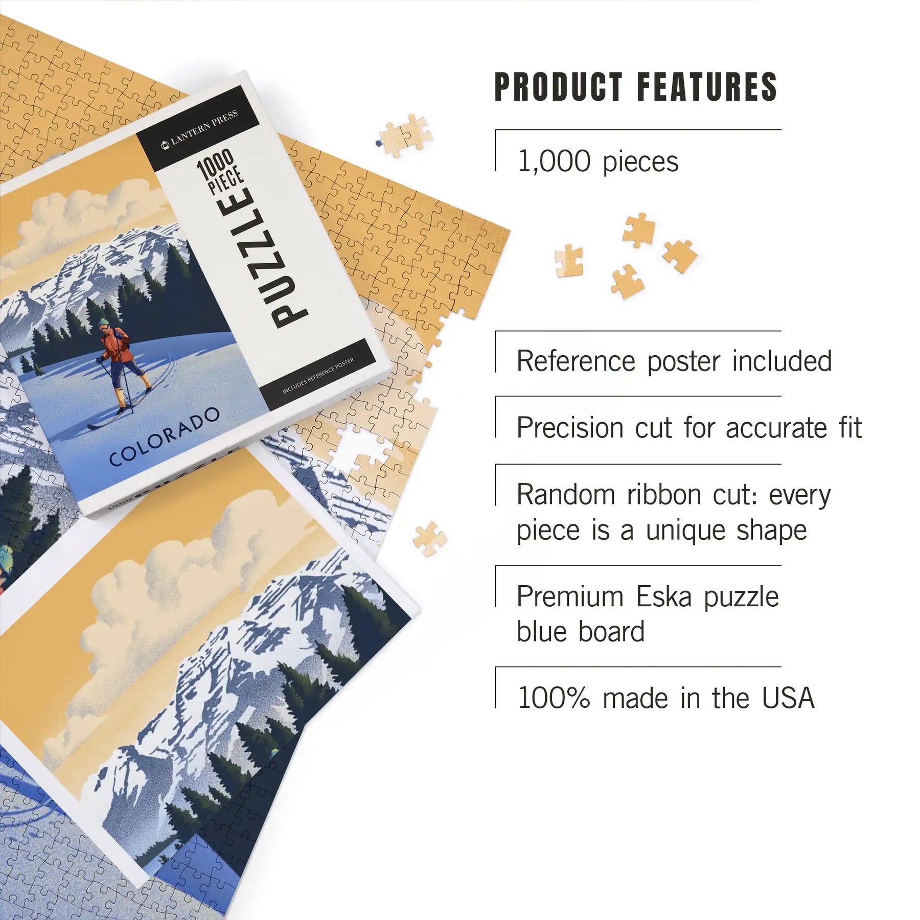 Colorado, Cross Country Skier, Lithograph, Jigsaw Puzzle