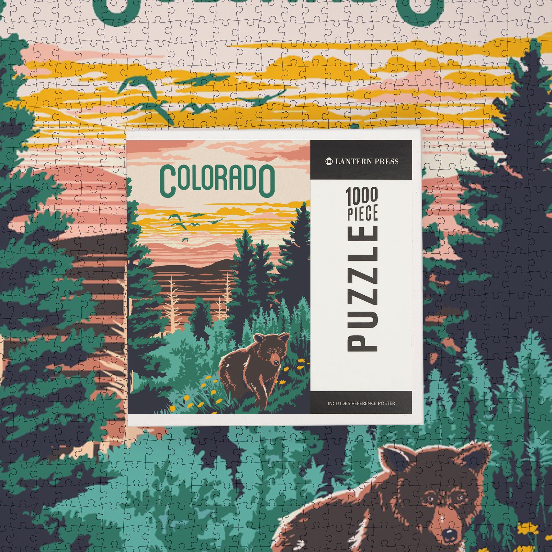 Colorado, Explorer Series, Bear and Mountains, Jigsaw Puzzle Puzzle Lantern Press