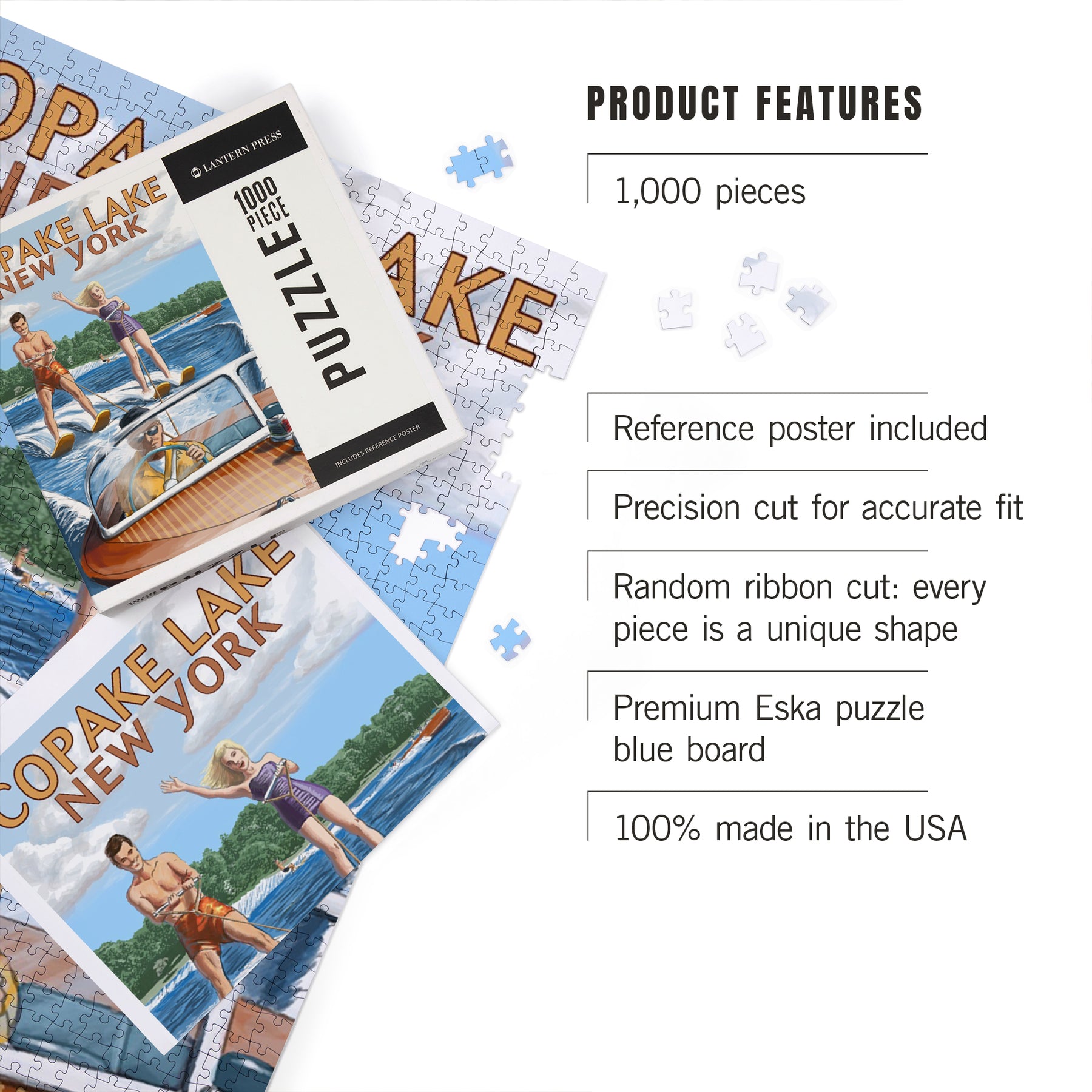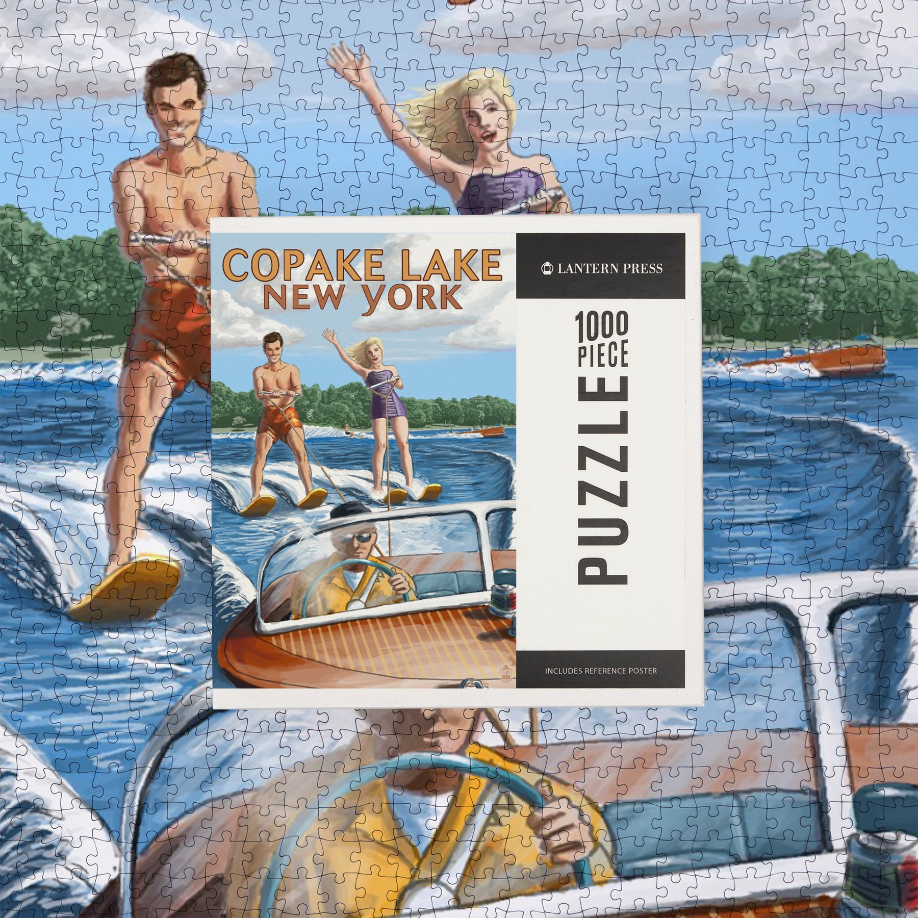 Copake Lake, New York, Painterly, Wake Ski, Jigsaw Puzzle Puzzle Lantern Press
