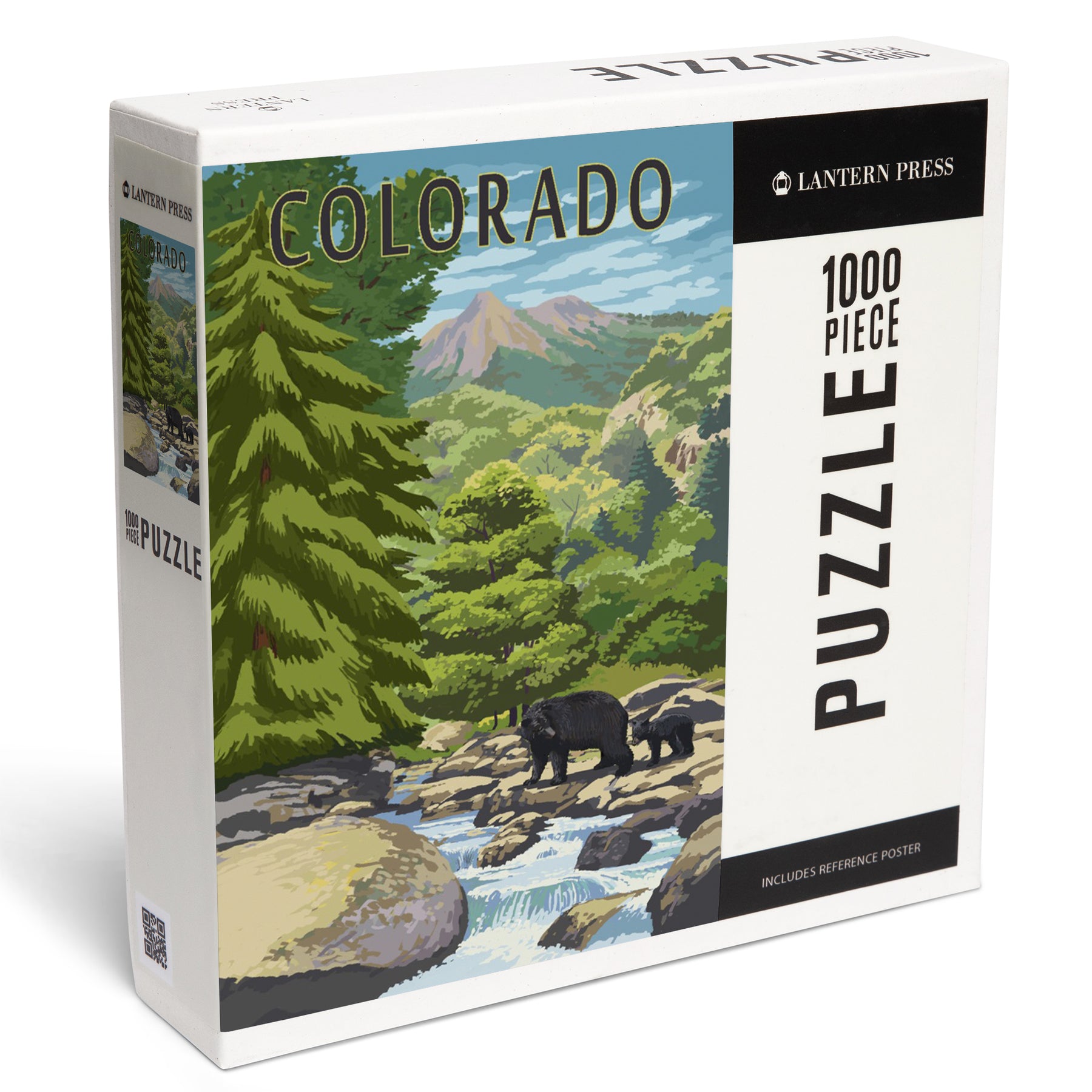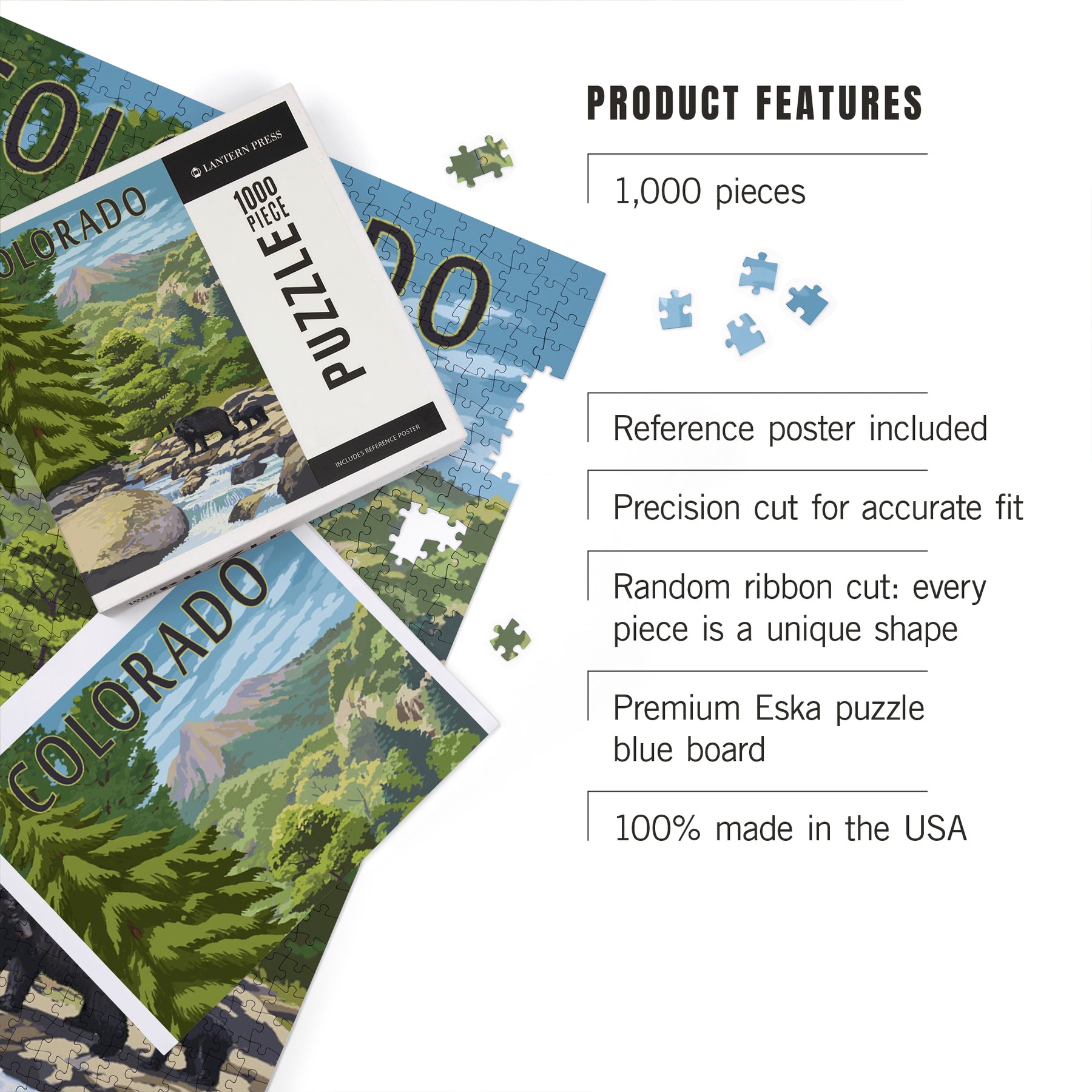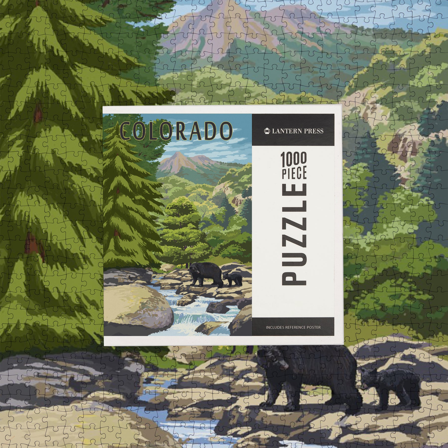 Denver, Colorado, Painterly, Bear at River, Jigsaw Puzzle Puzzle Lantern Press