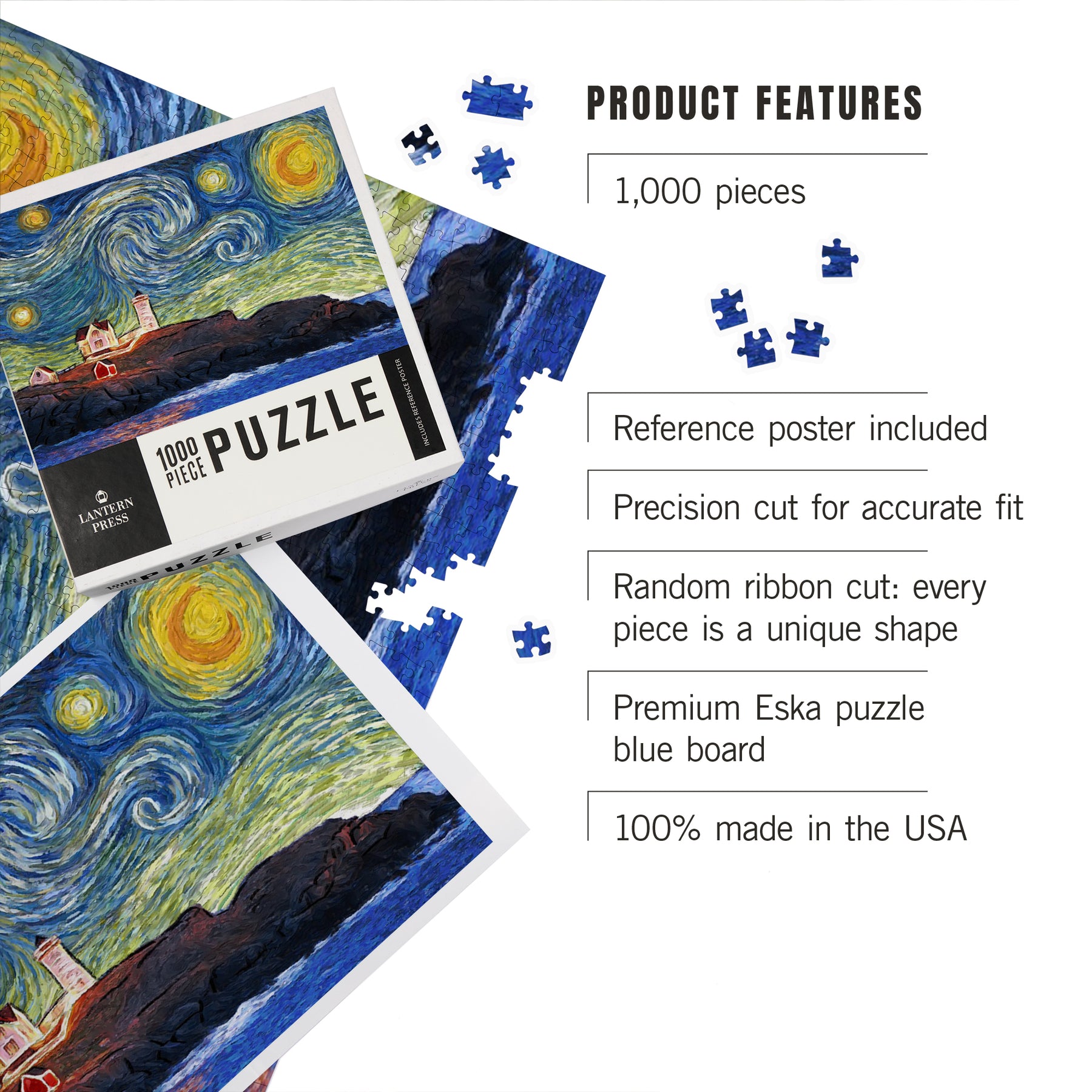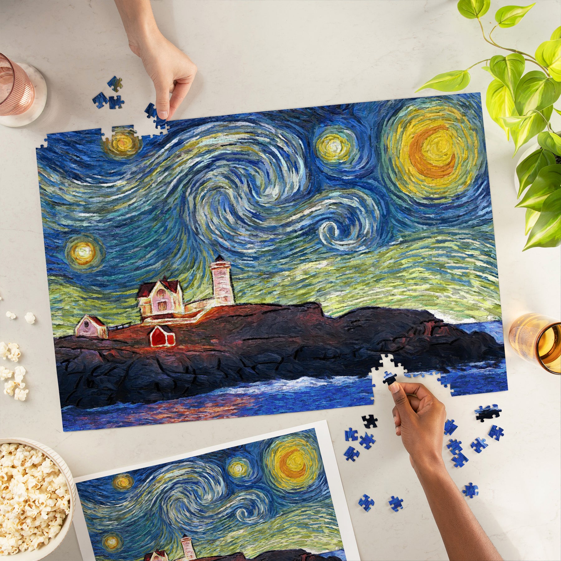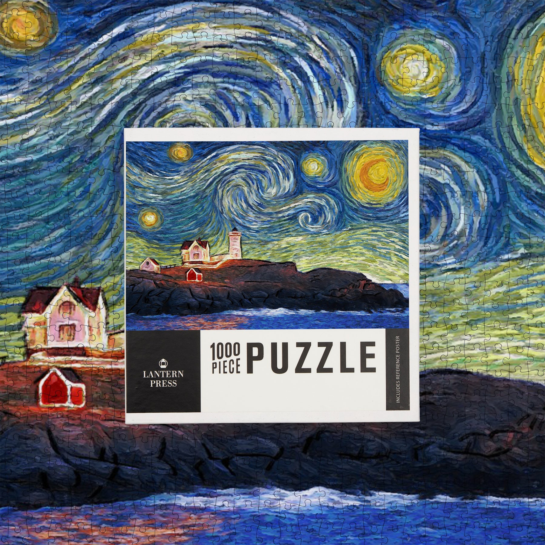 East Coast Lighthouse, Starry Night, Jigsaw Puzzle Puzzle Lantern Press