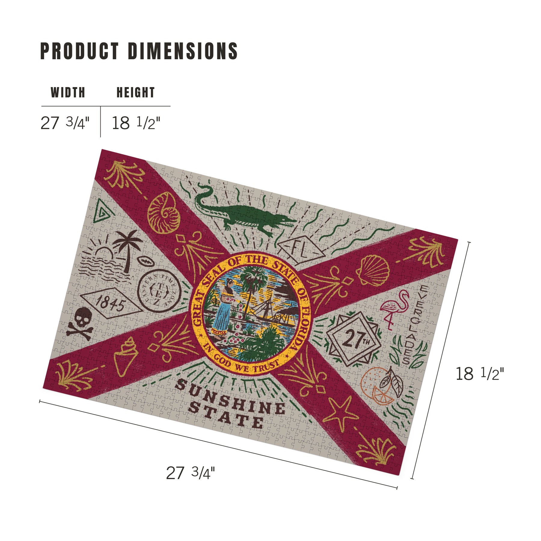 • Puzzle measures 18.5 by 27.75 inches