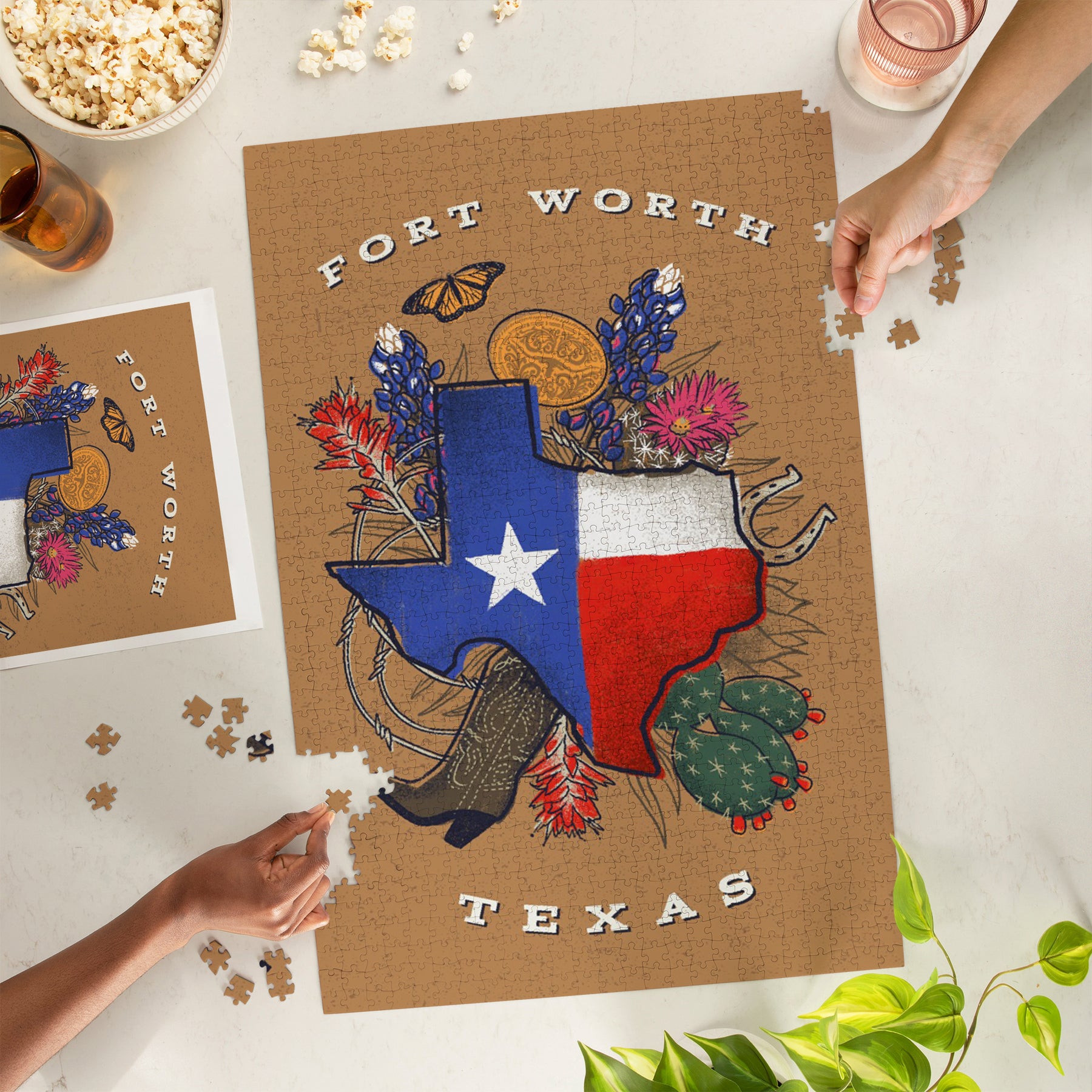 Fort Worth, Texas, State Treasure Trove, Jigsaw Puzzle Puzzle Lantern Press