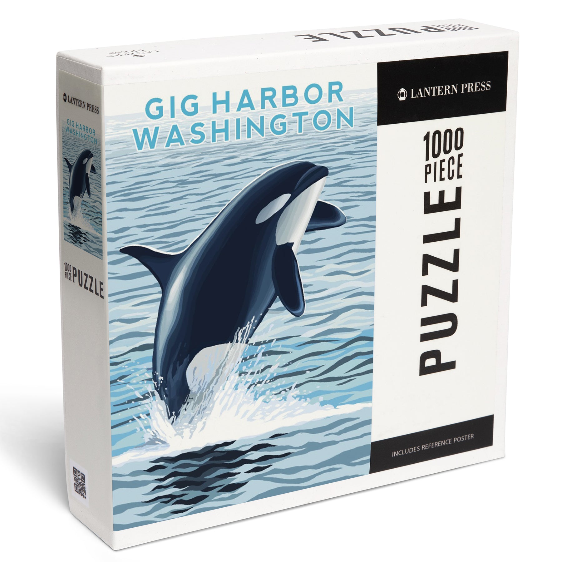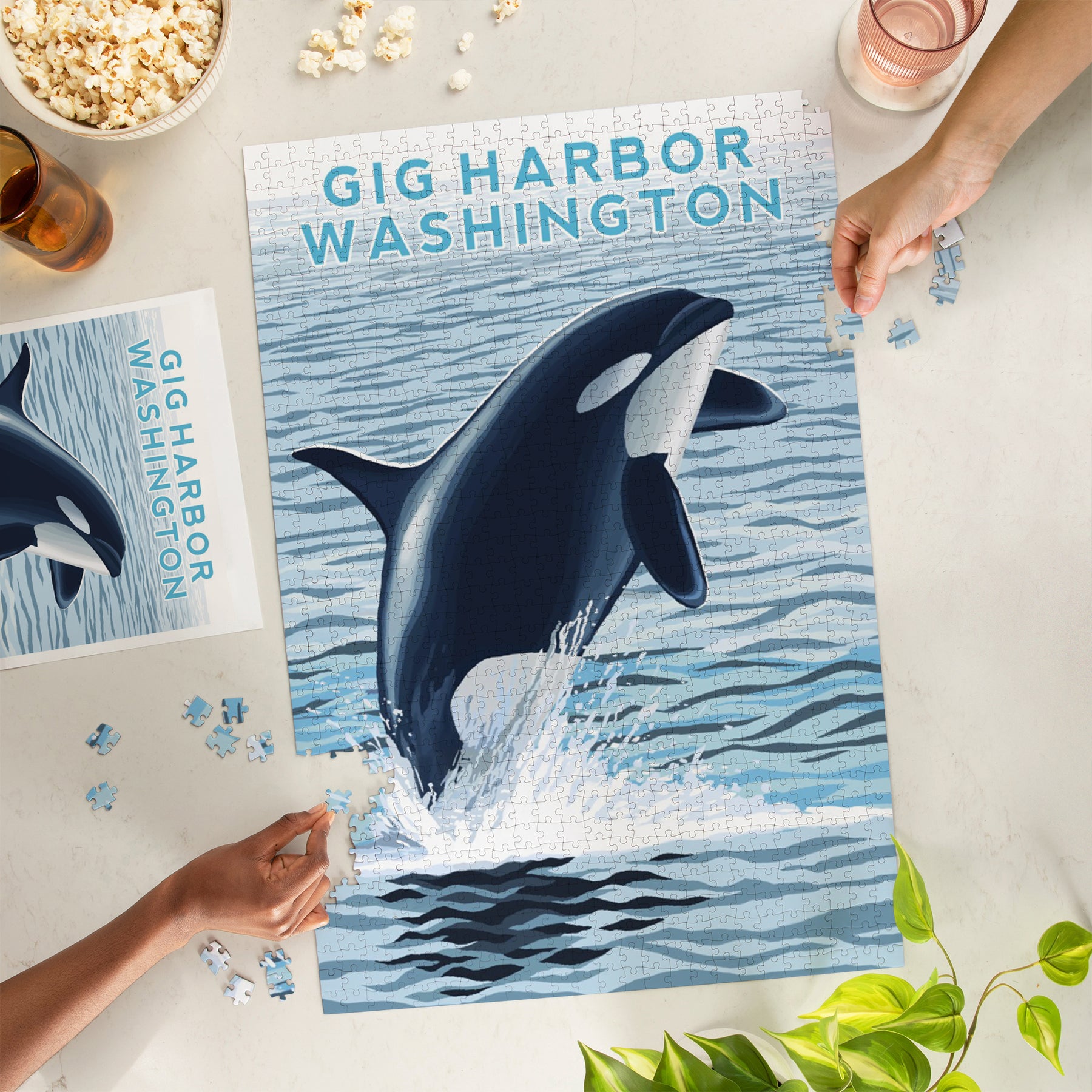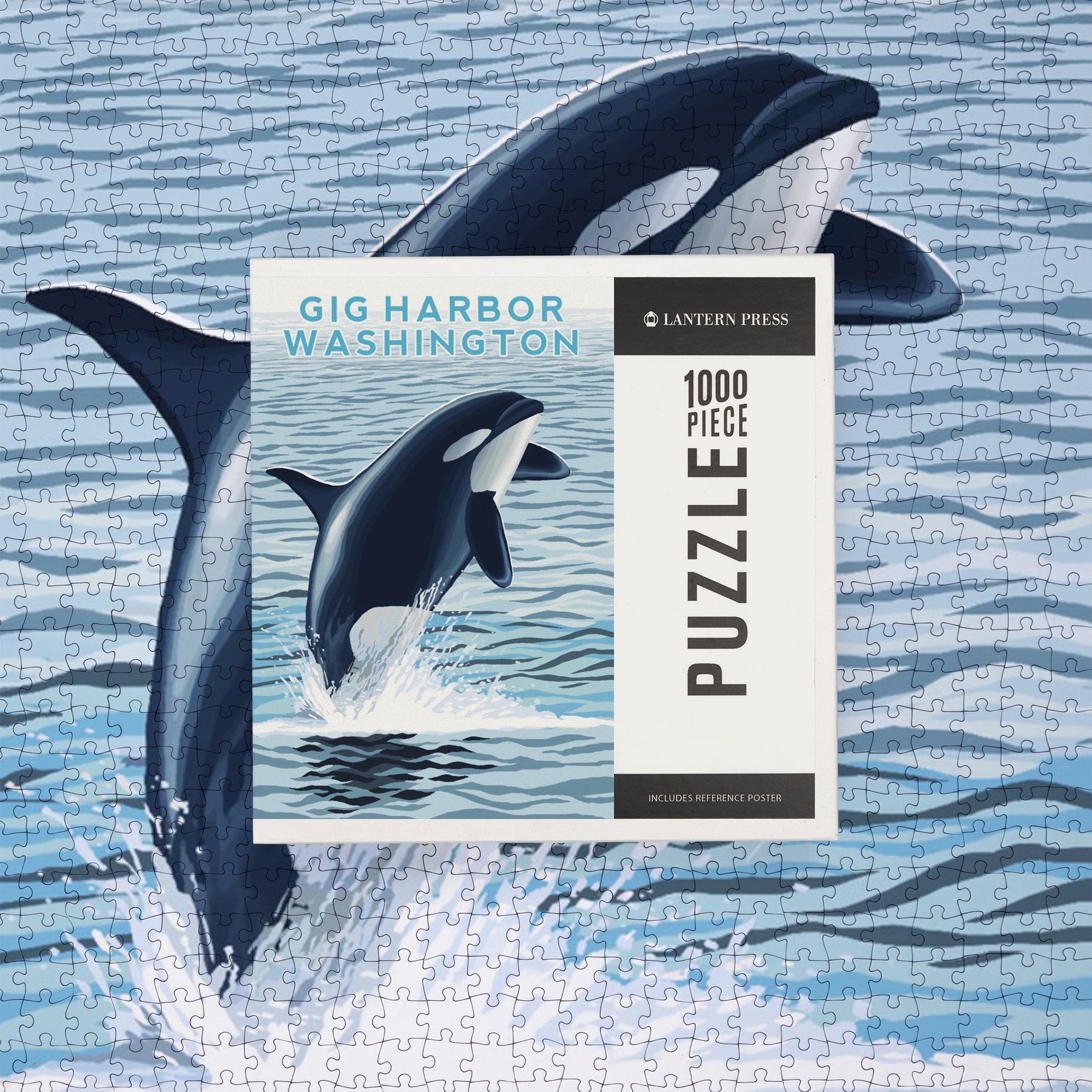 Gig Harbor, Washington, Orca Whale Jumping, Jigsaw Puzzle Puzzle Lantern Press