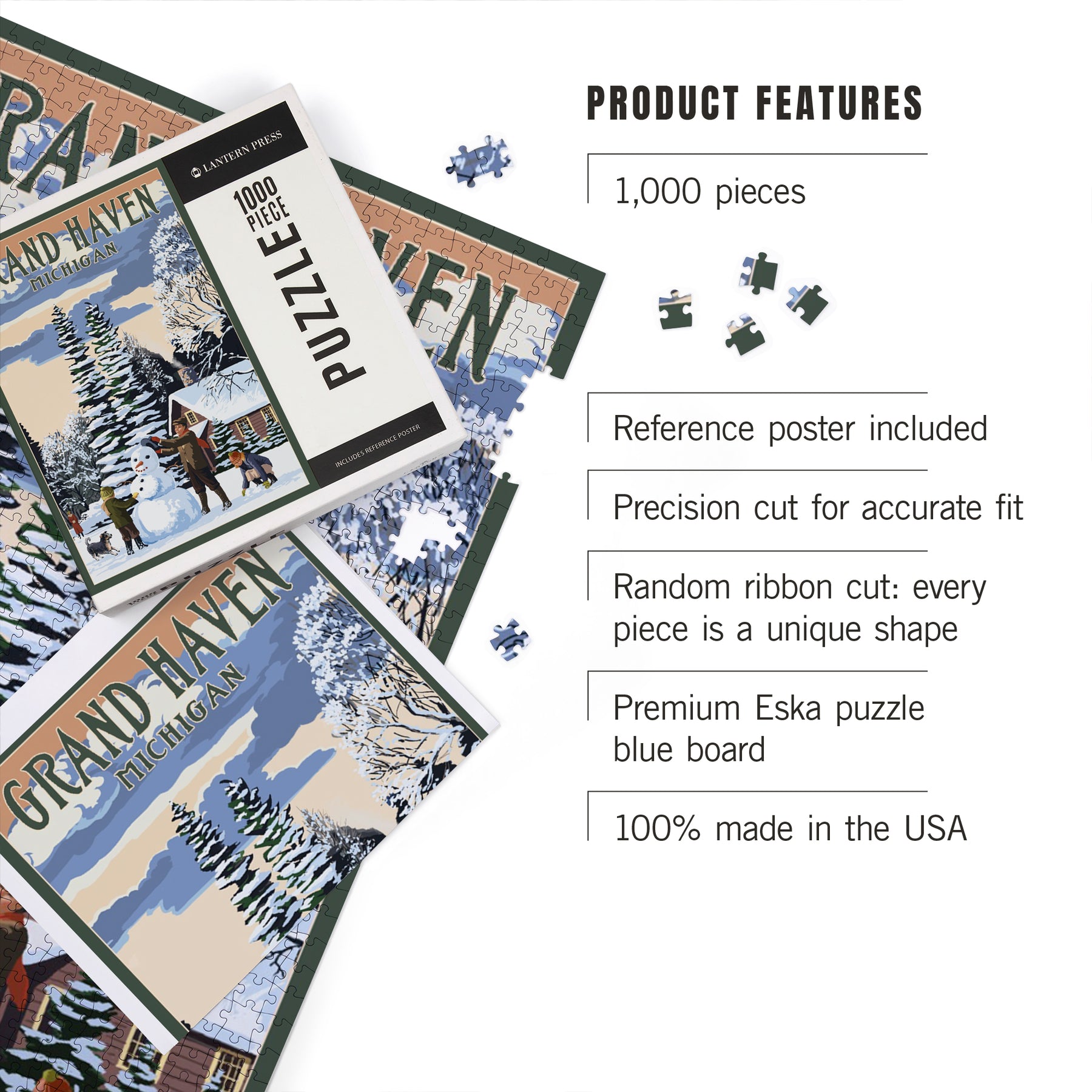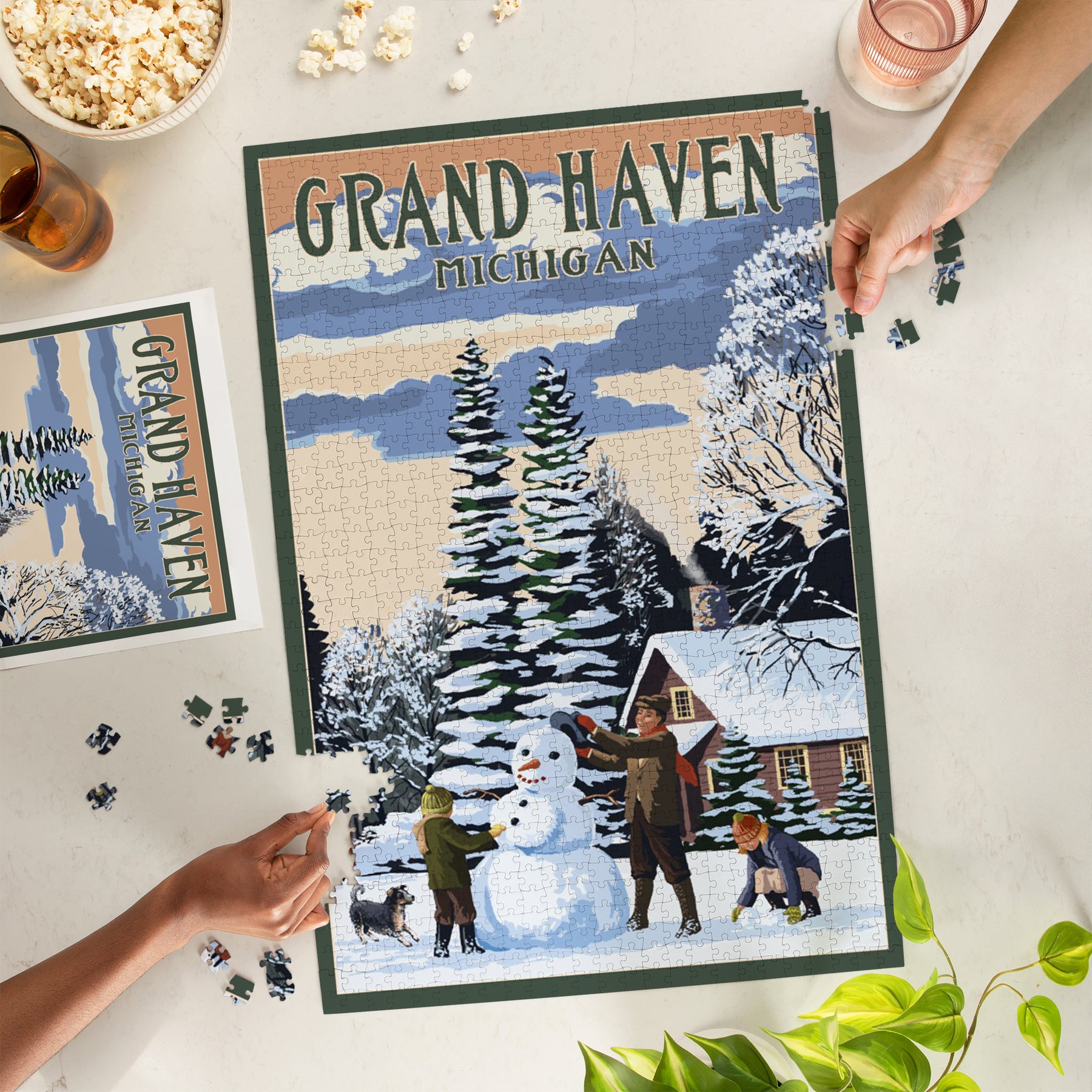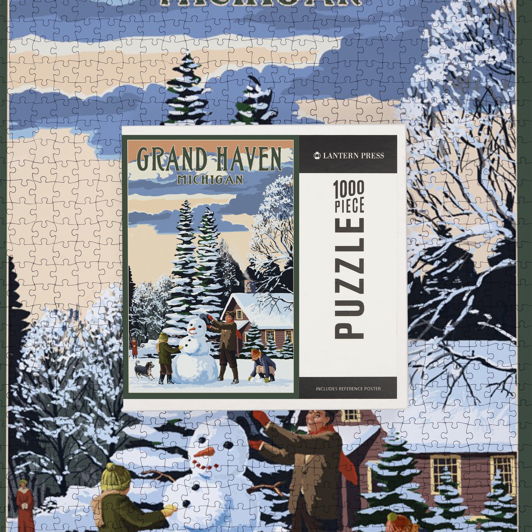 Grand Haven, Michigan, Snowman Scene, Jigsaw Puzzle Puzzle Lantern Press