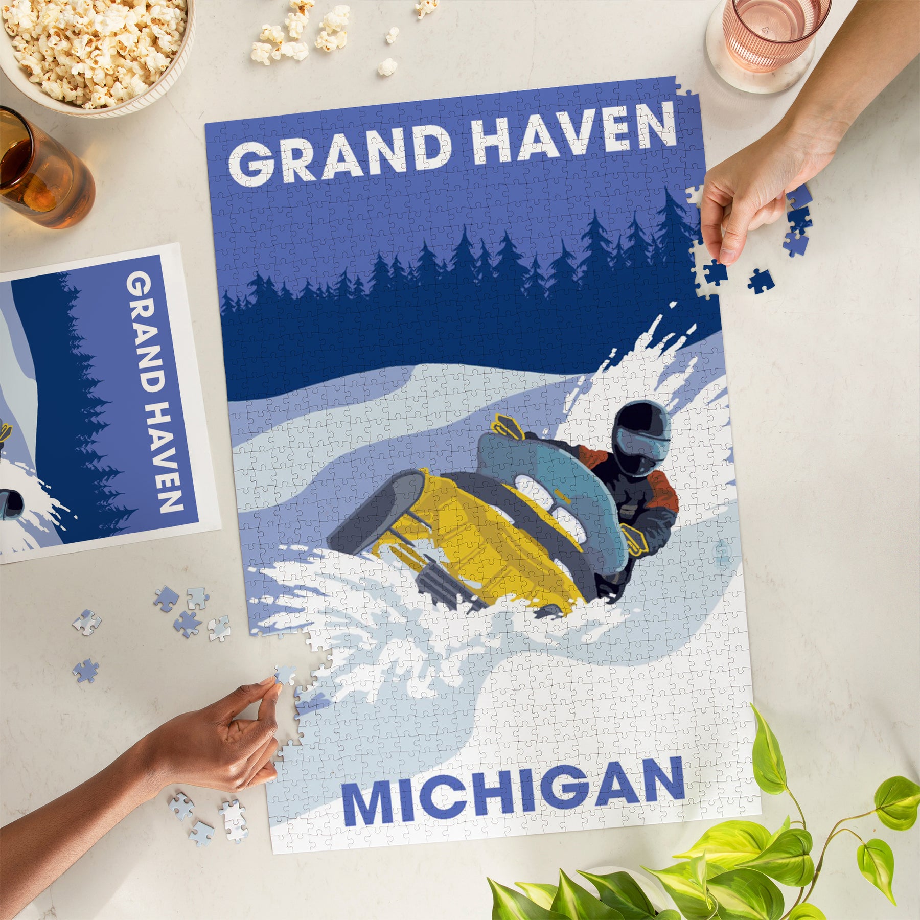 Grand Haven, Michigan, Snowmobile Scene, Jigsaw Puzzle Puzzle Lantern Press