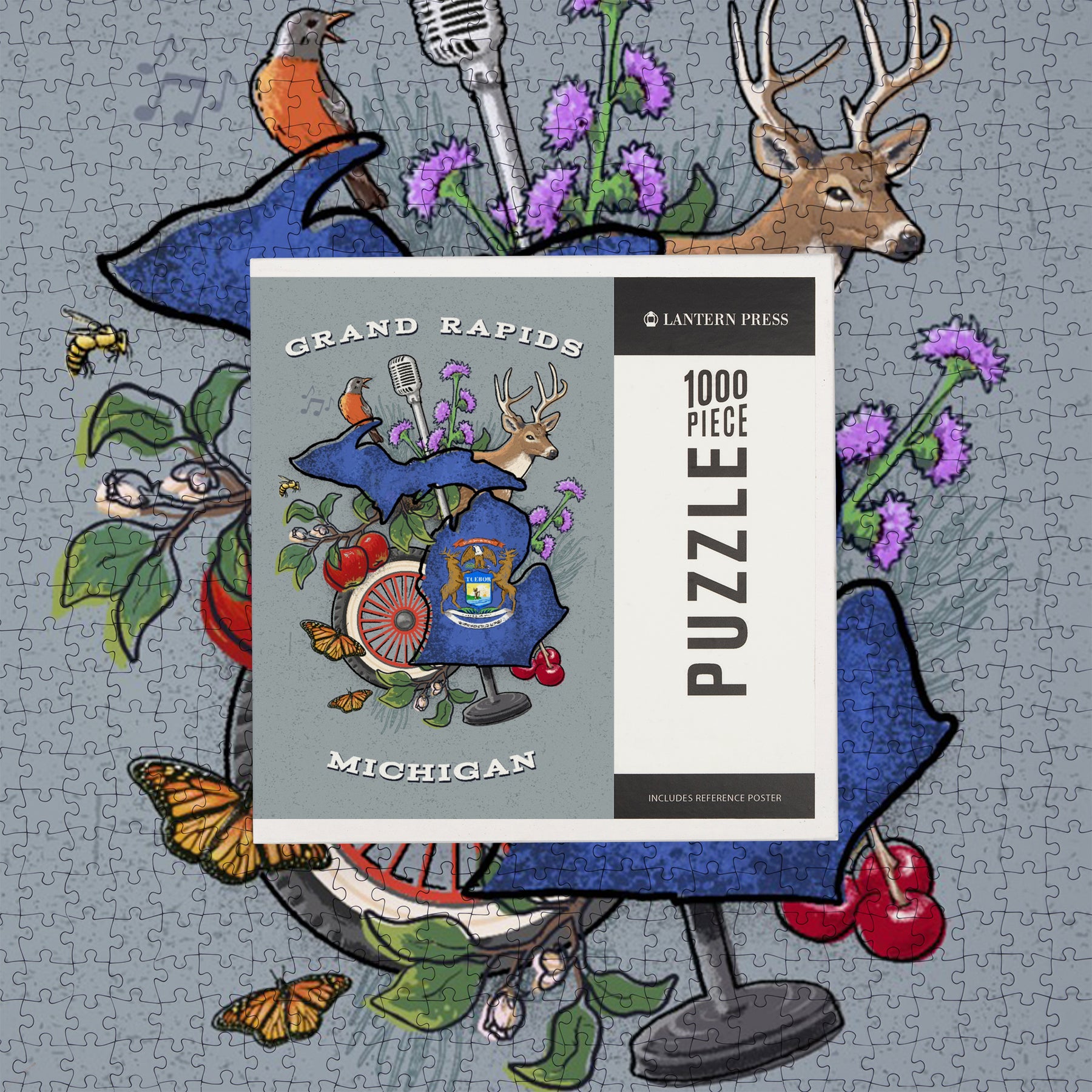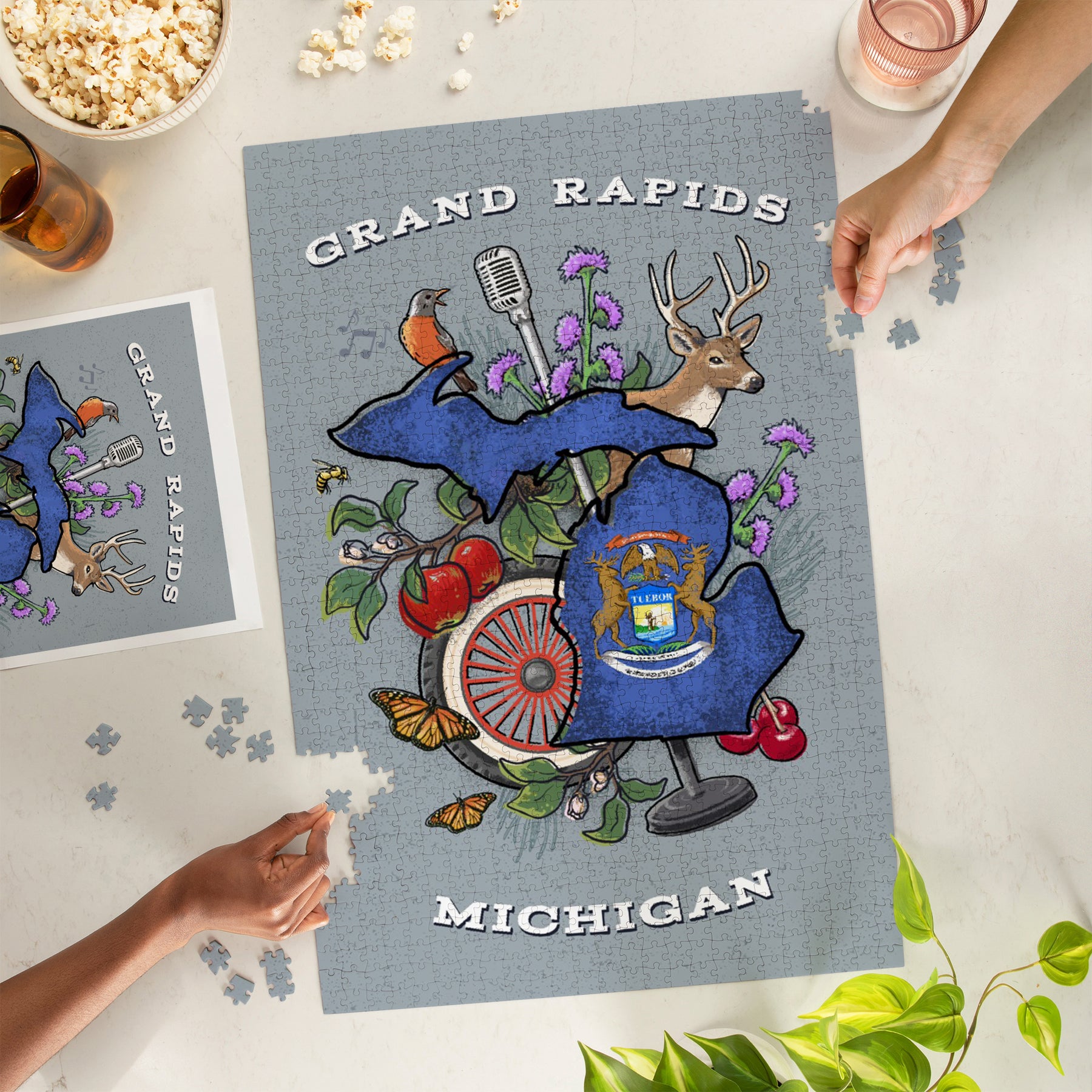 Grand Rapids, Michigan, State Treasure Trove, Jigsaw Puzzle Puzzle Lantern Press