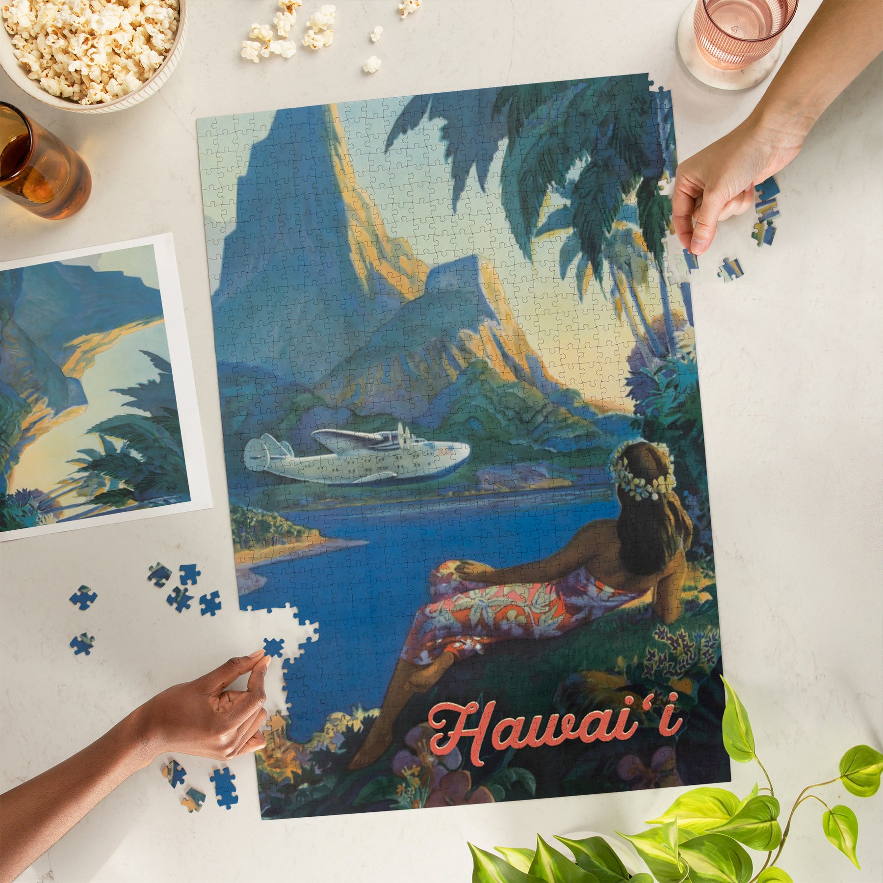 Hawaii, Vintage Tropical Airplane, Jigsaw Puzzle Puzzle Lantern Press