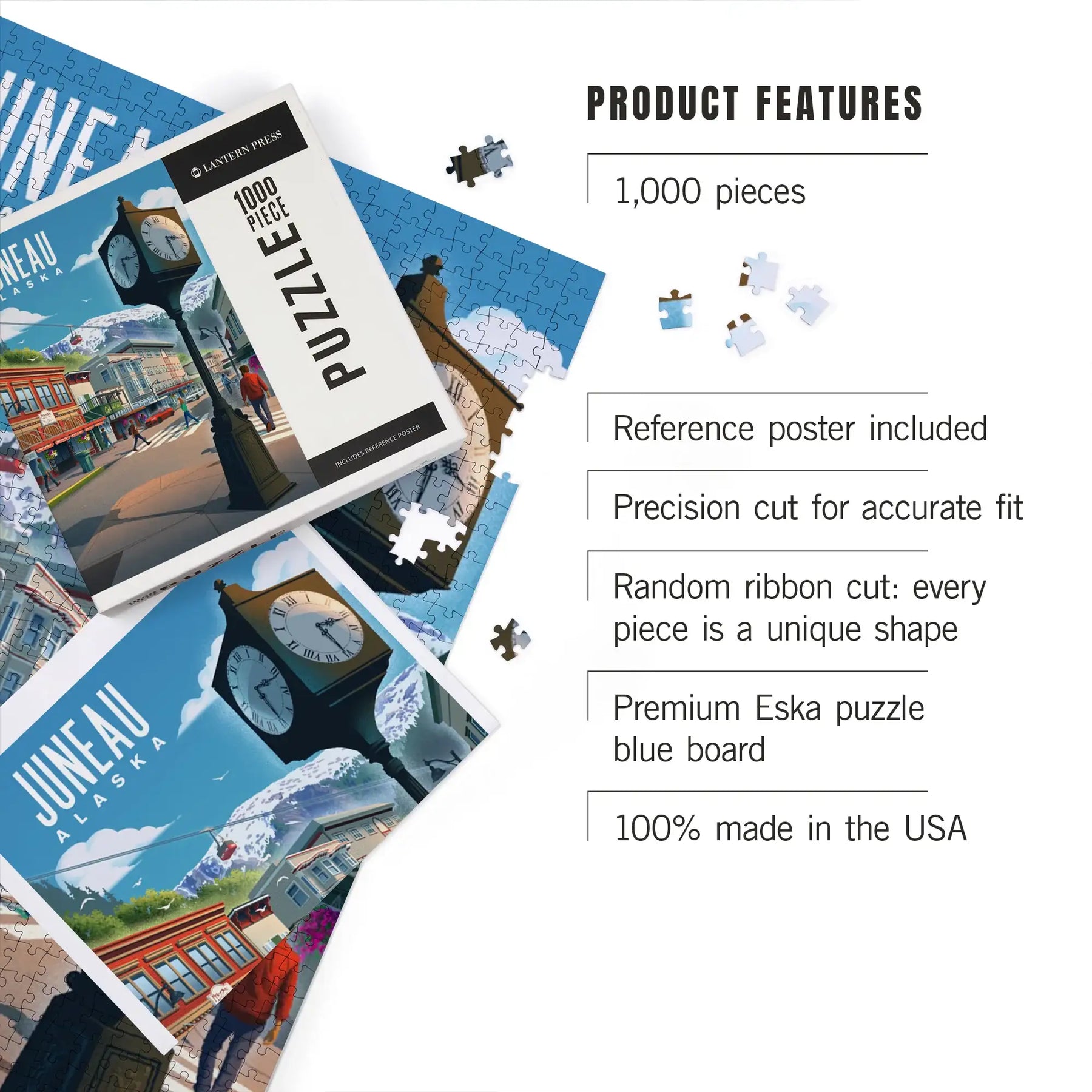 Juneau, Alaska, Lithograph, Main Street, Jigsaw Puzzle