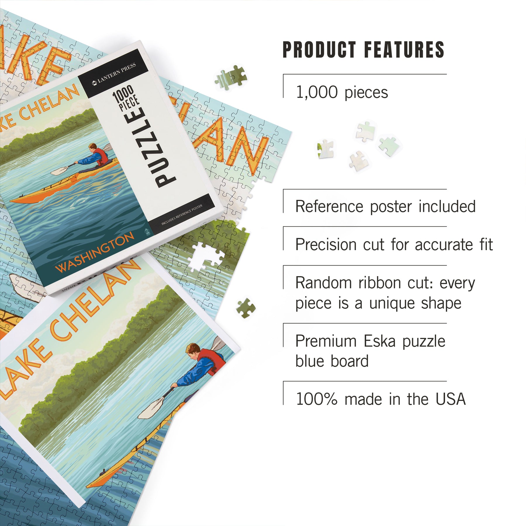 Lake Chelan, Washington, Kayak Scene, Jigsaw Puzzle Puzzle Lantern Press