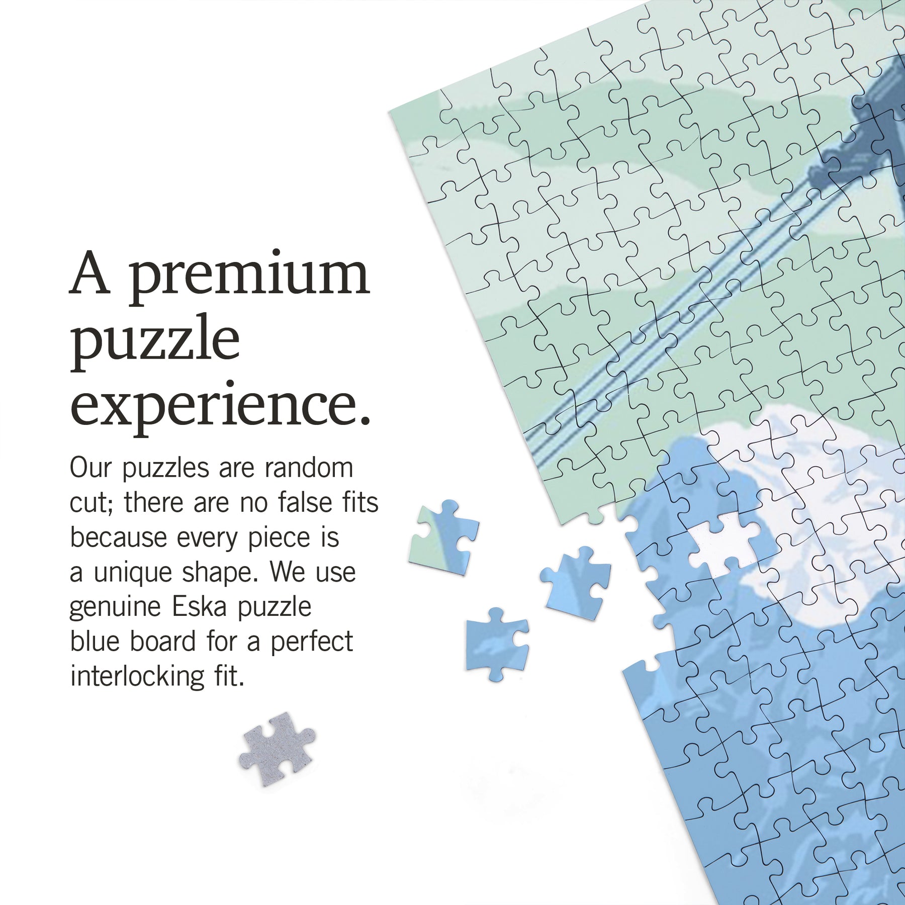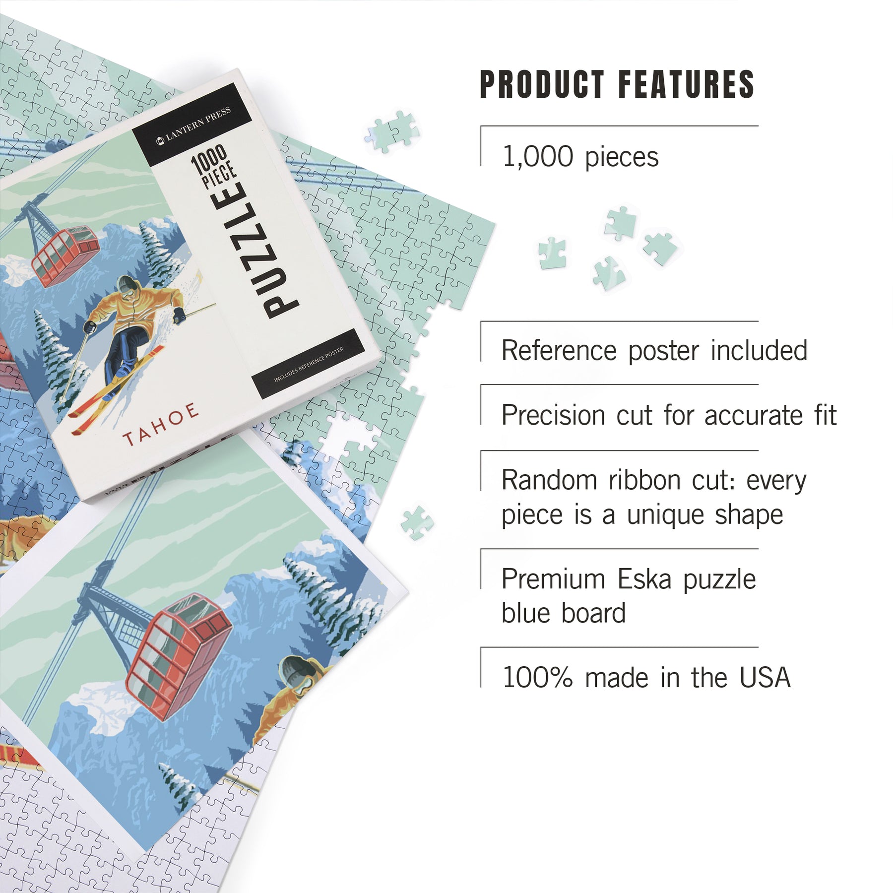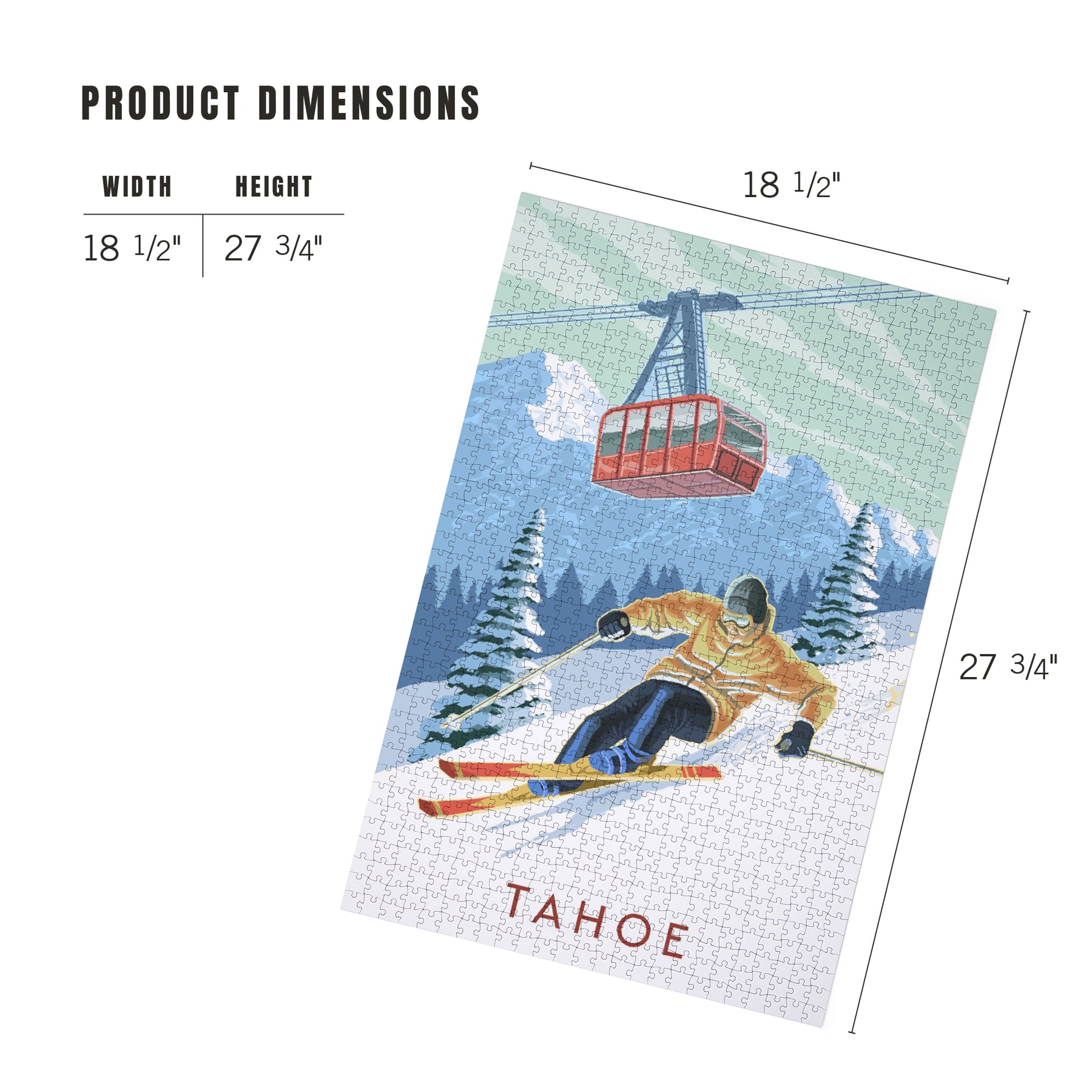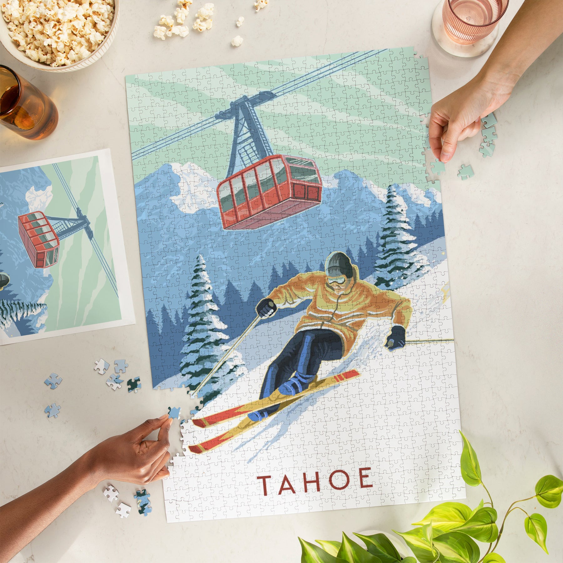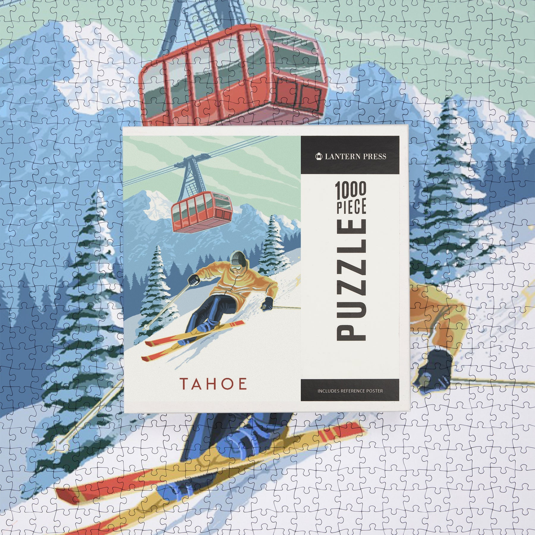 Lake Tahoe, California, Skier and Tram, Tahoe, Jigsaw Puzzle Puzzle Lantern Press