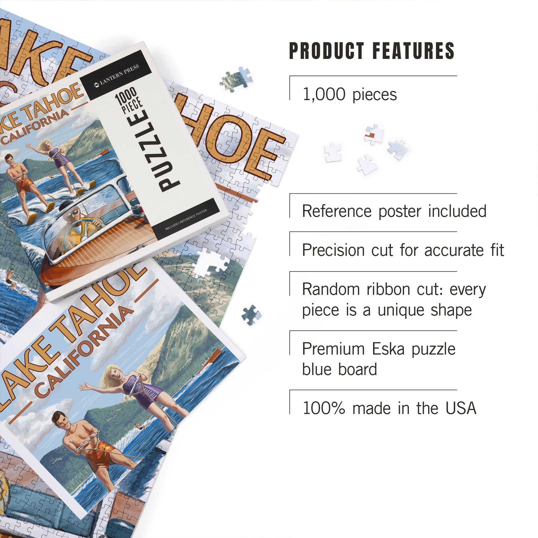 Lake Tahoe, California, Water Skiing Scene, Jigsaw Puzzle Puzzle Lantern Press