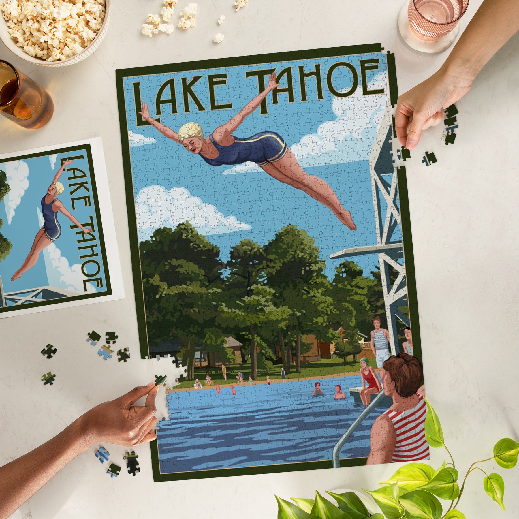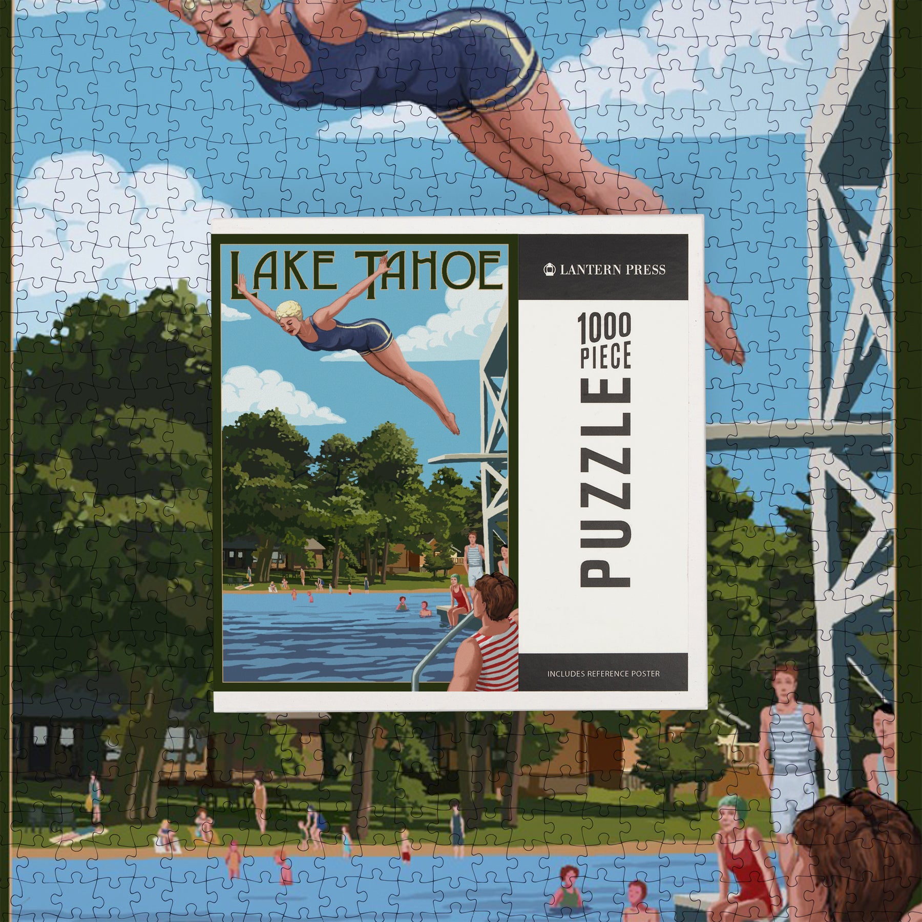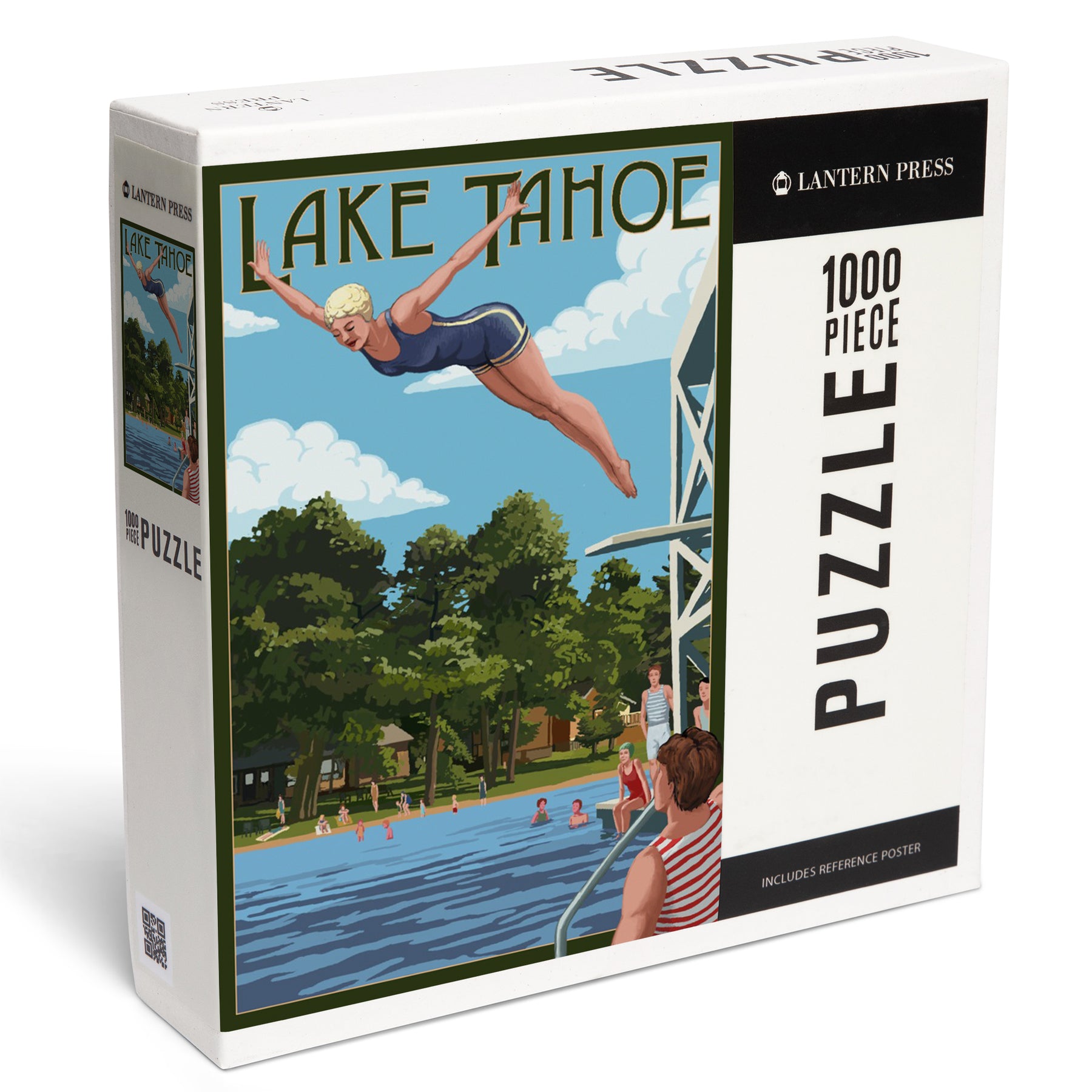 Lake Tahoe, Woman Diving and Lake, Jigsaw Puzzle Puzzle Lantern Press