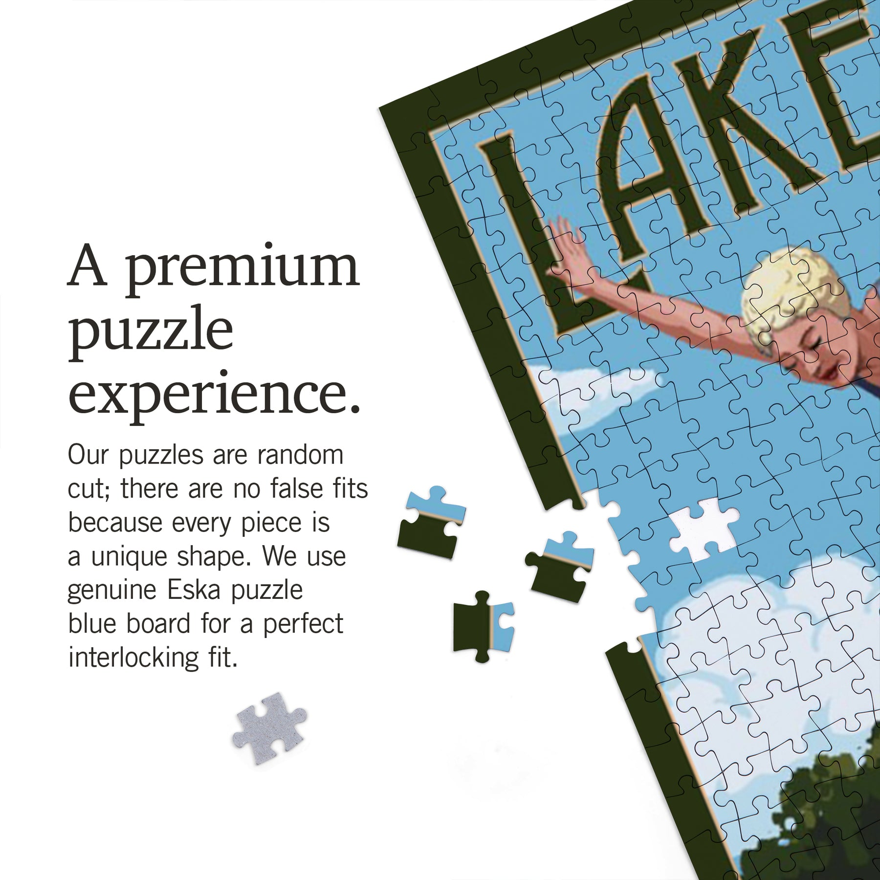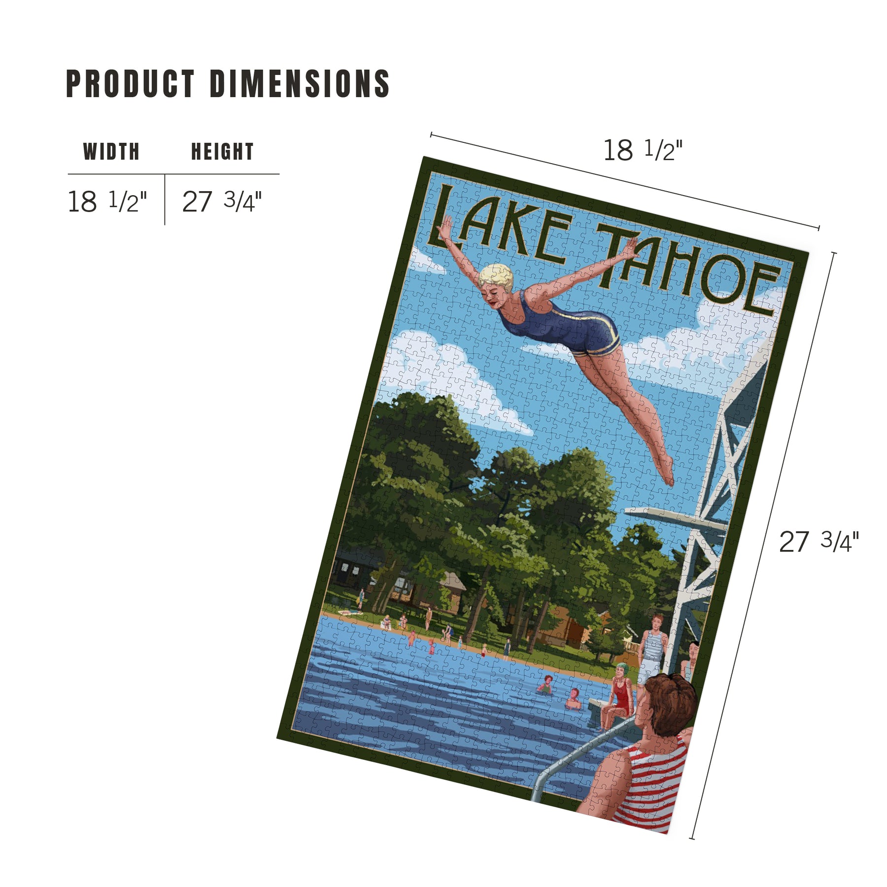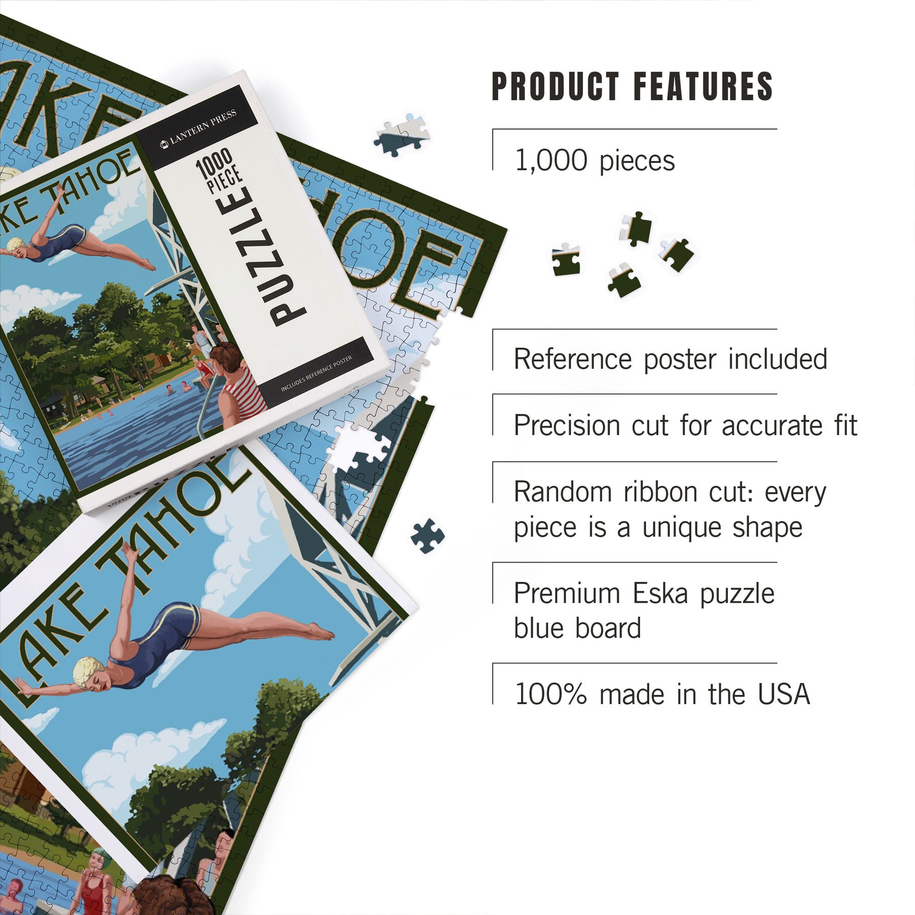 Lake Tahoe, Woman Diving and Lake, Jigsaw Puzzle Puzzle Lantern Press
