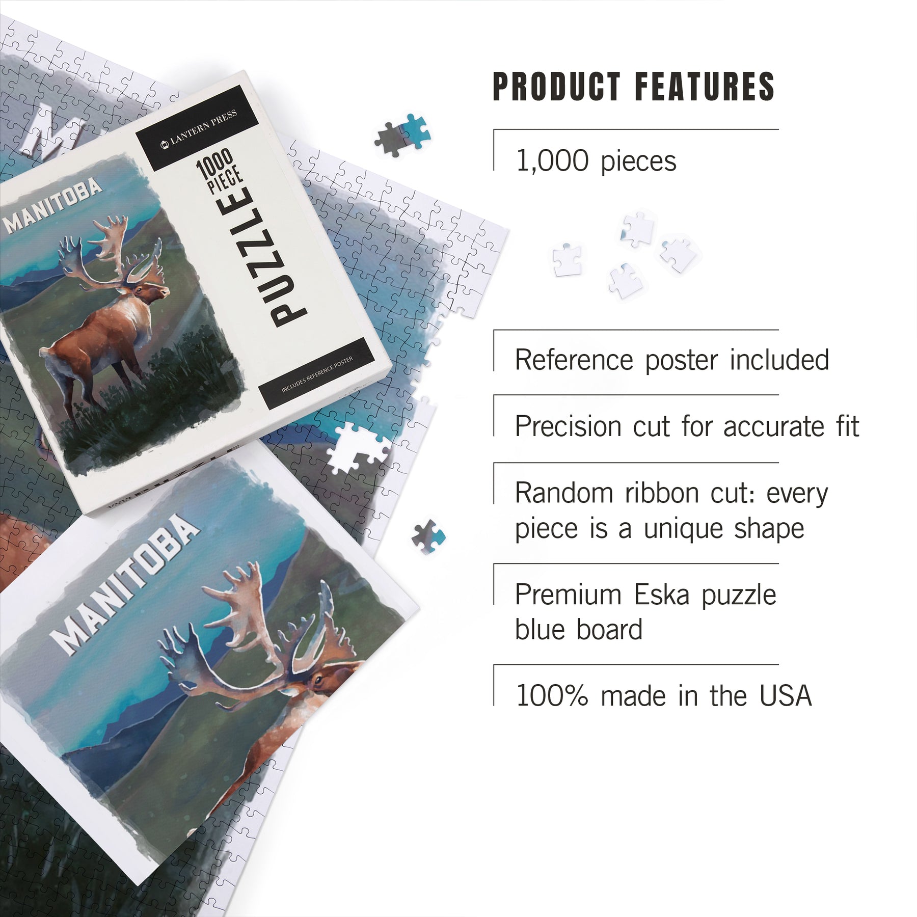 Manitoba, Watercolor Study, Caribou, Jigsaw Puzzle Puzzle Lantern Press