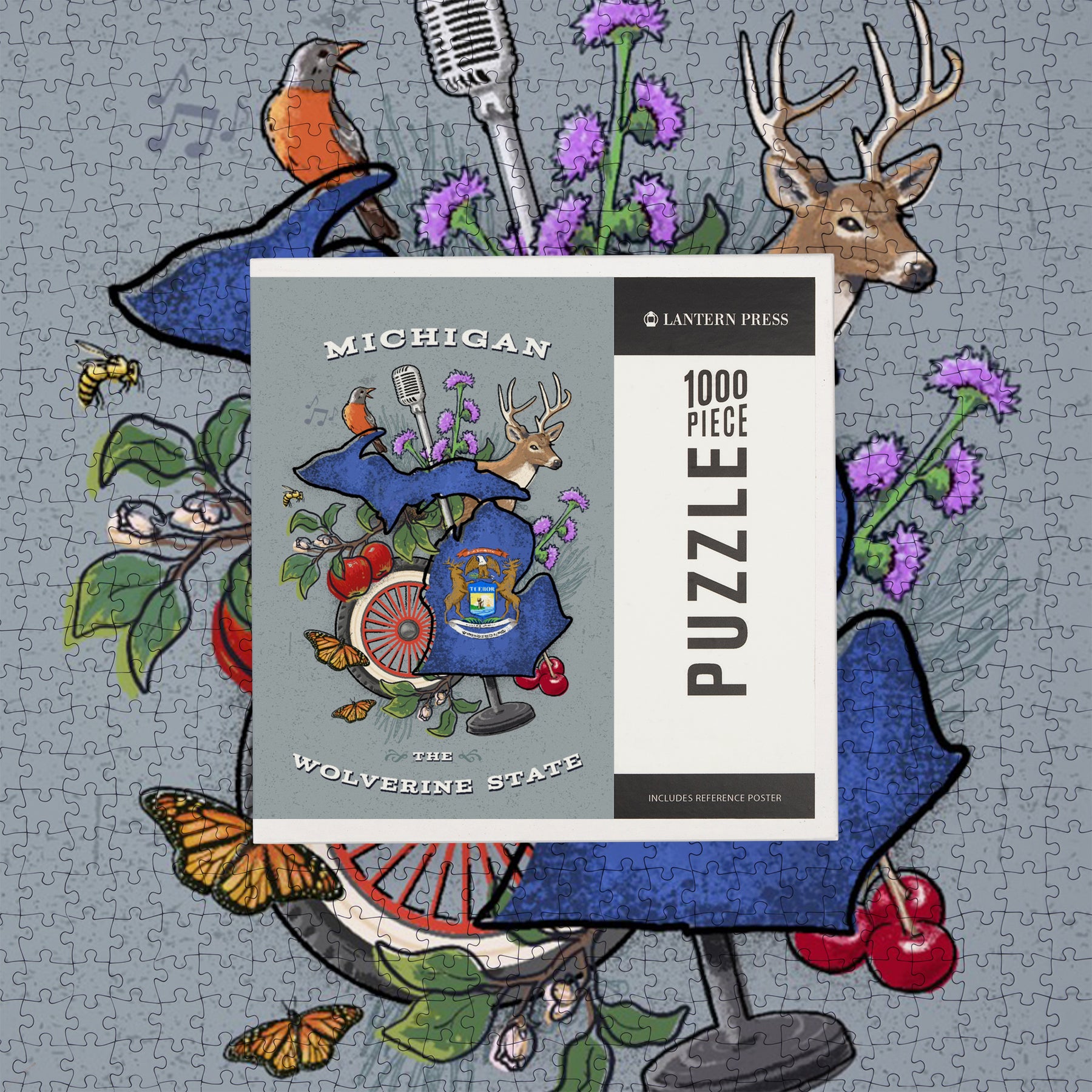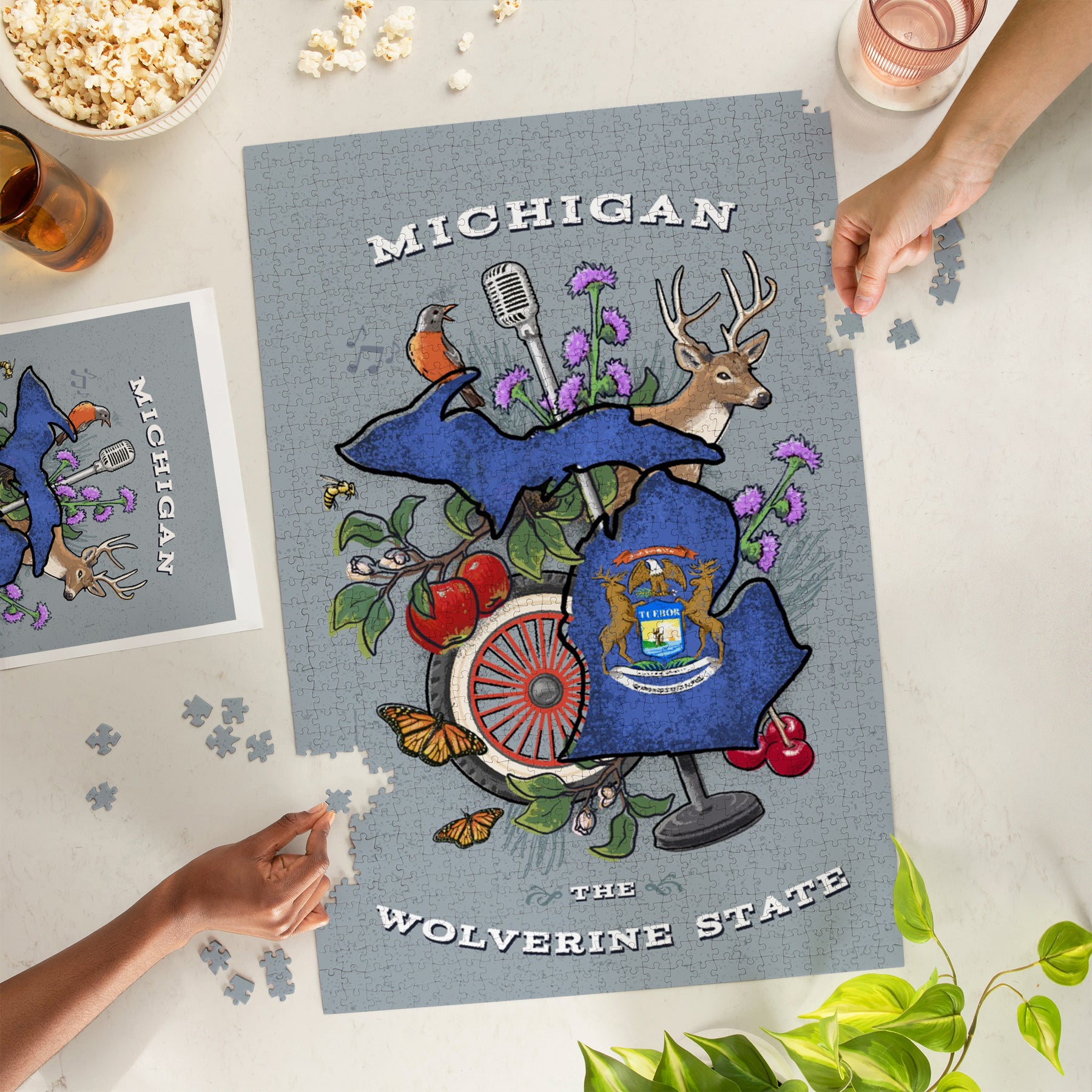 Michigan, State Treasure Trove, Jigsaw Puzzle Puzzle Lantern Press