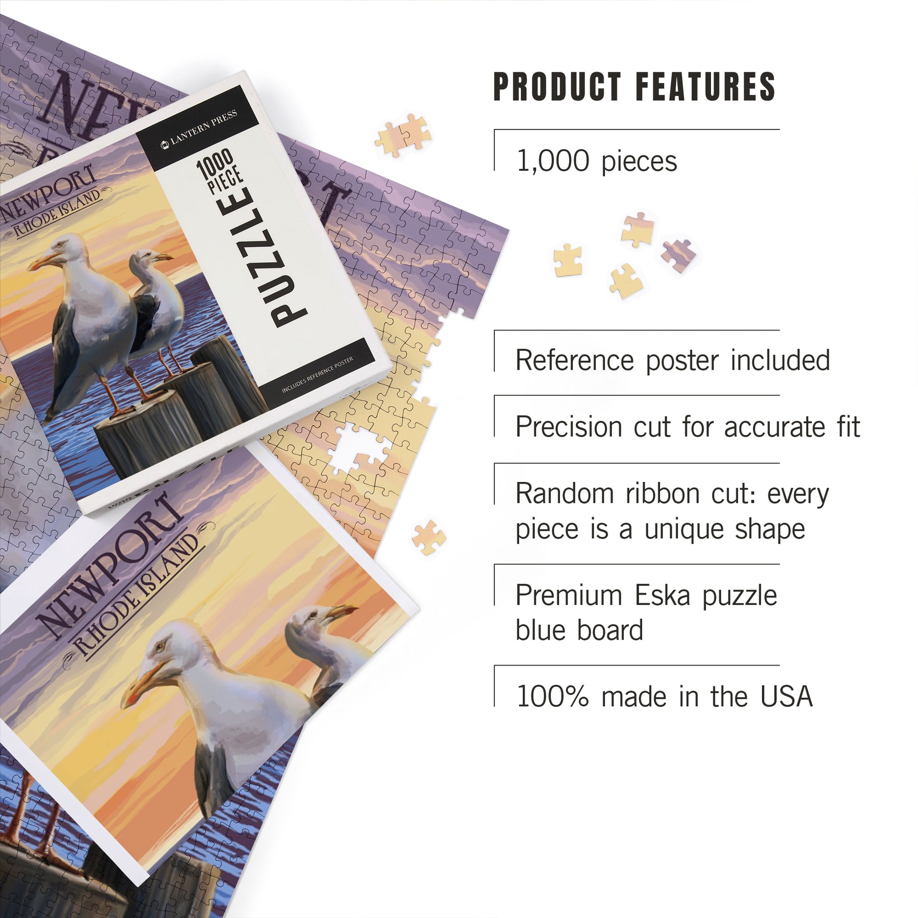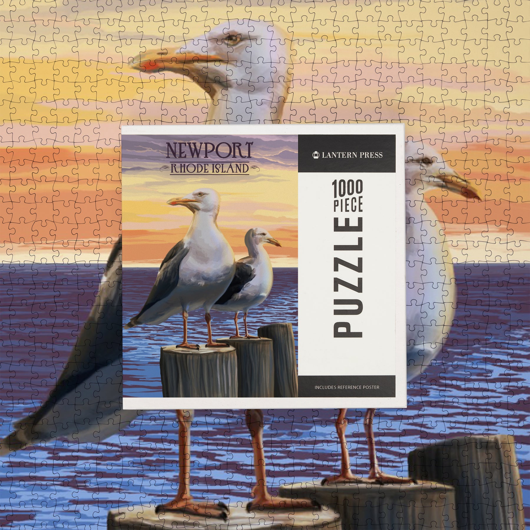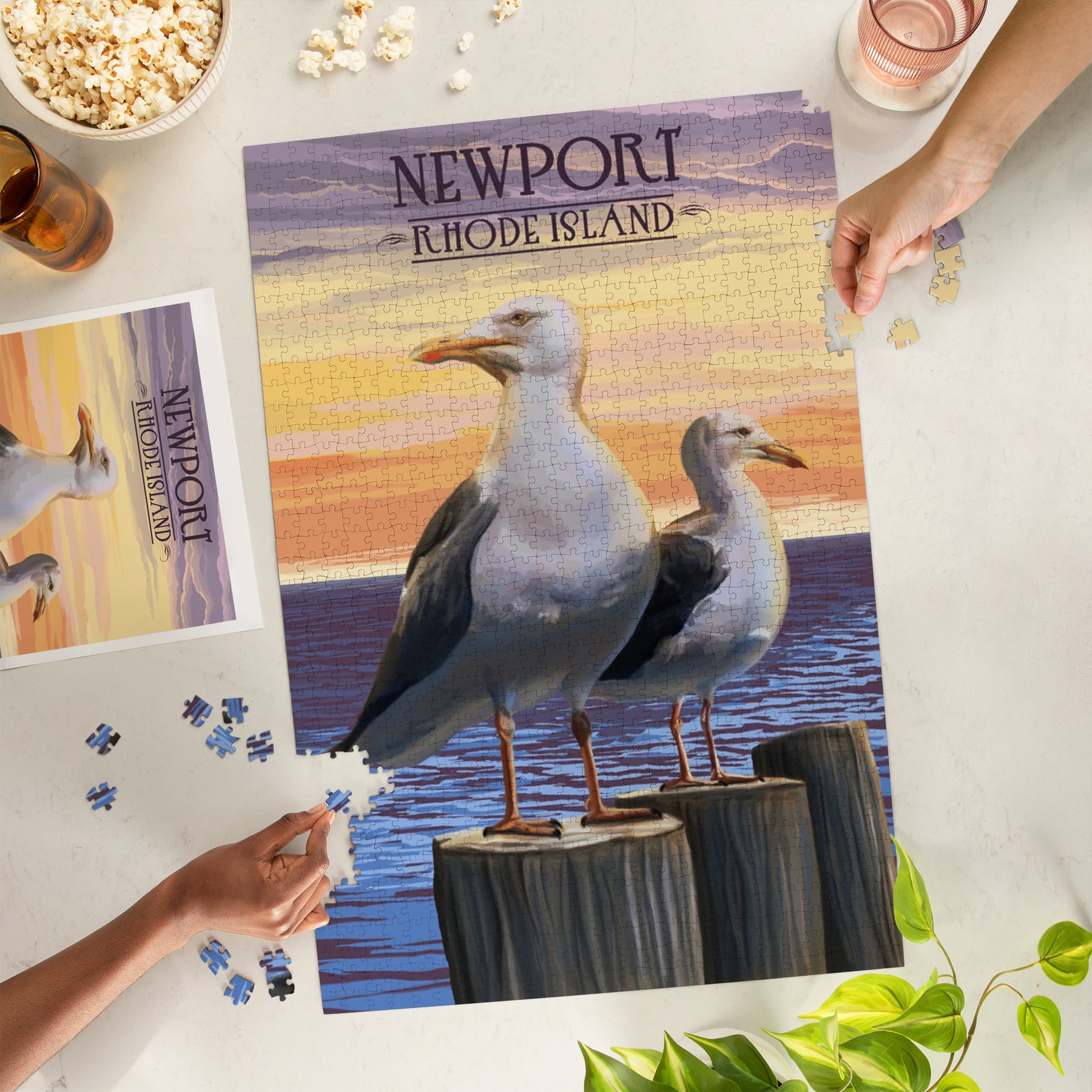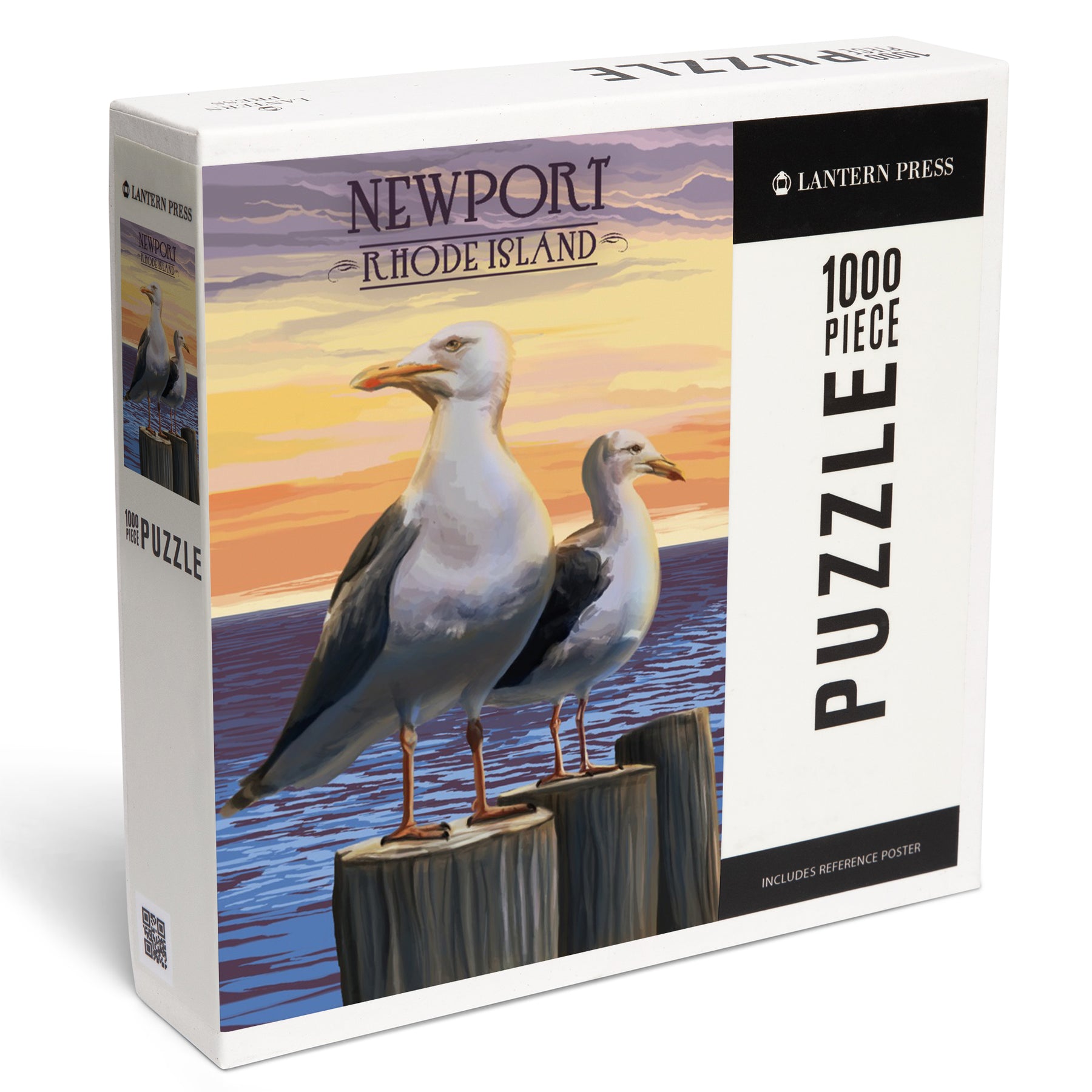 Newport, Rhode Island, Seagulls on Piers, Jigsaw Puzzle Puzzle Lantern Press