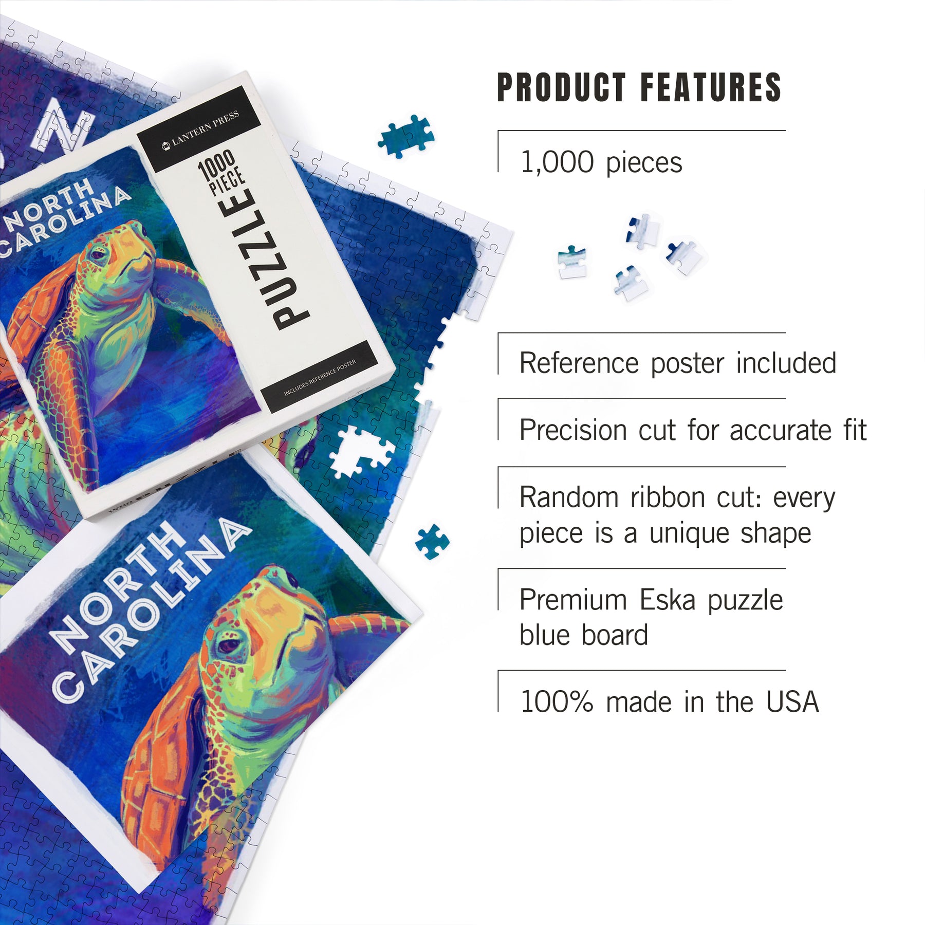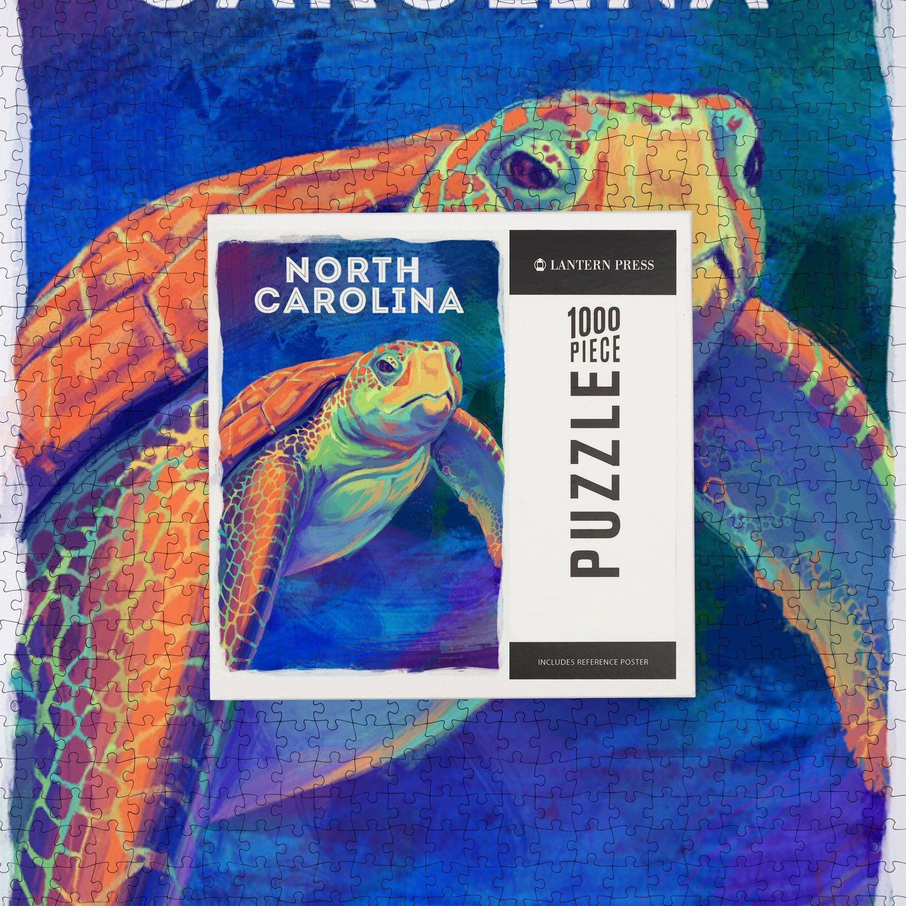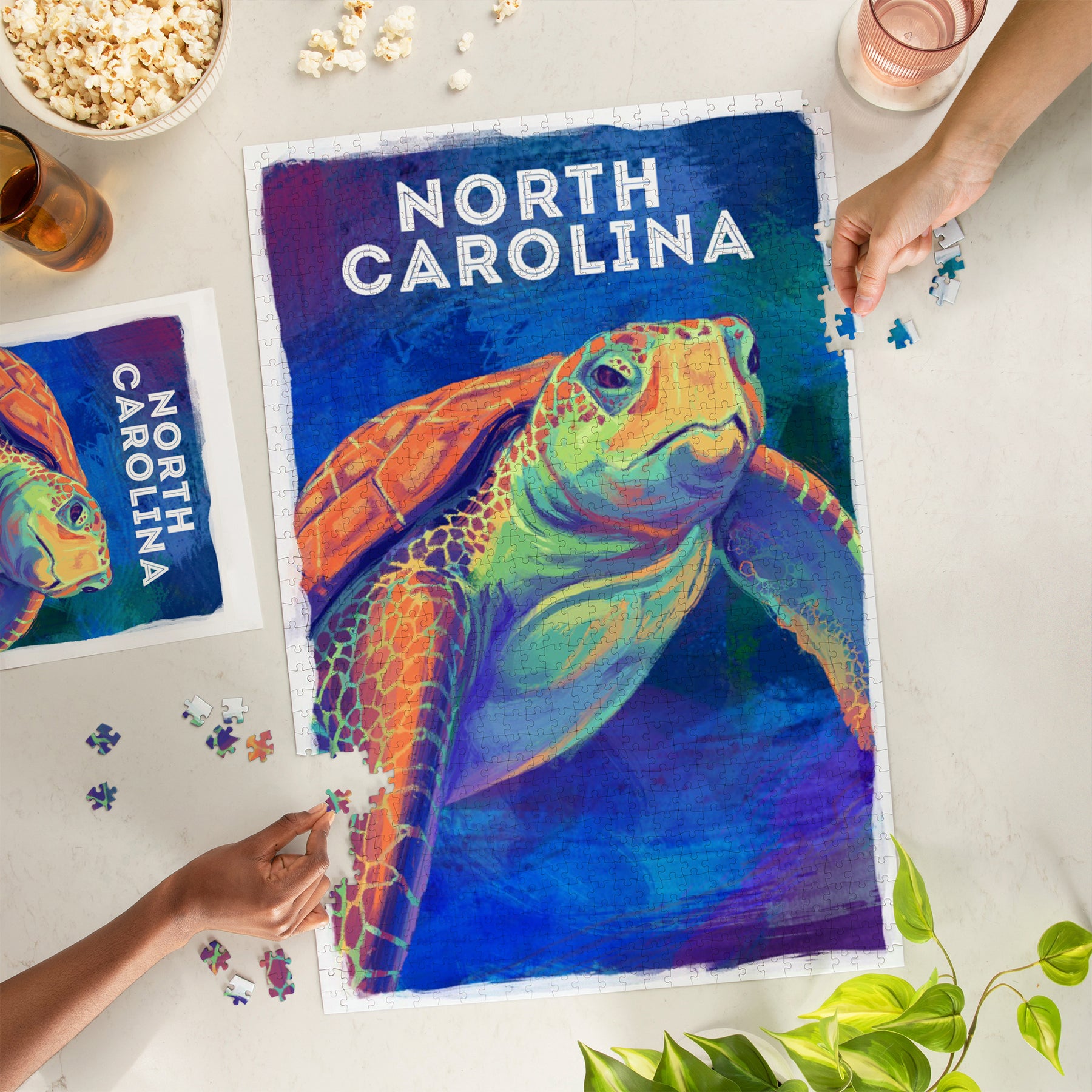 North Carolina, Vivid, Sea Turtle, Jigsaw Puzzle Puzzle Lantern Press