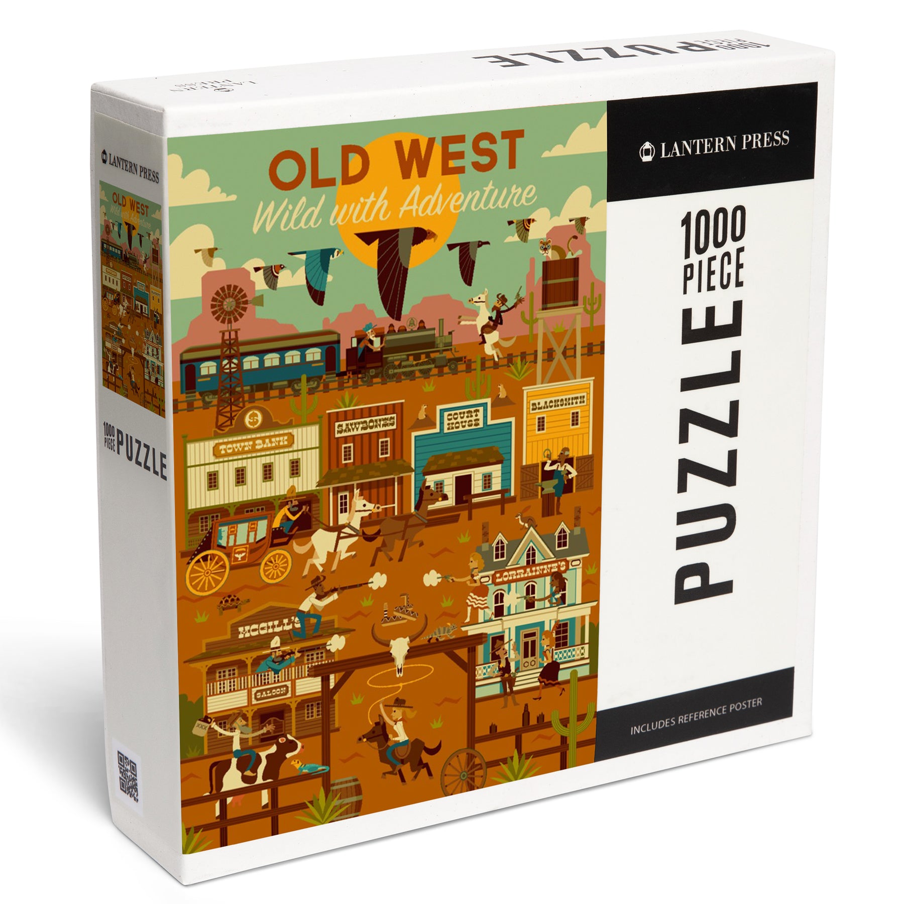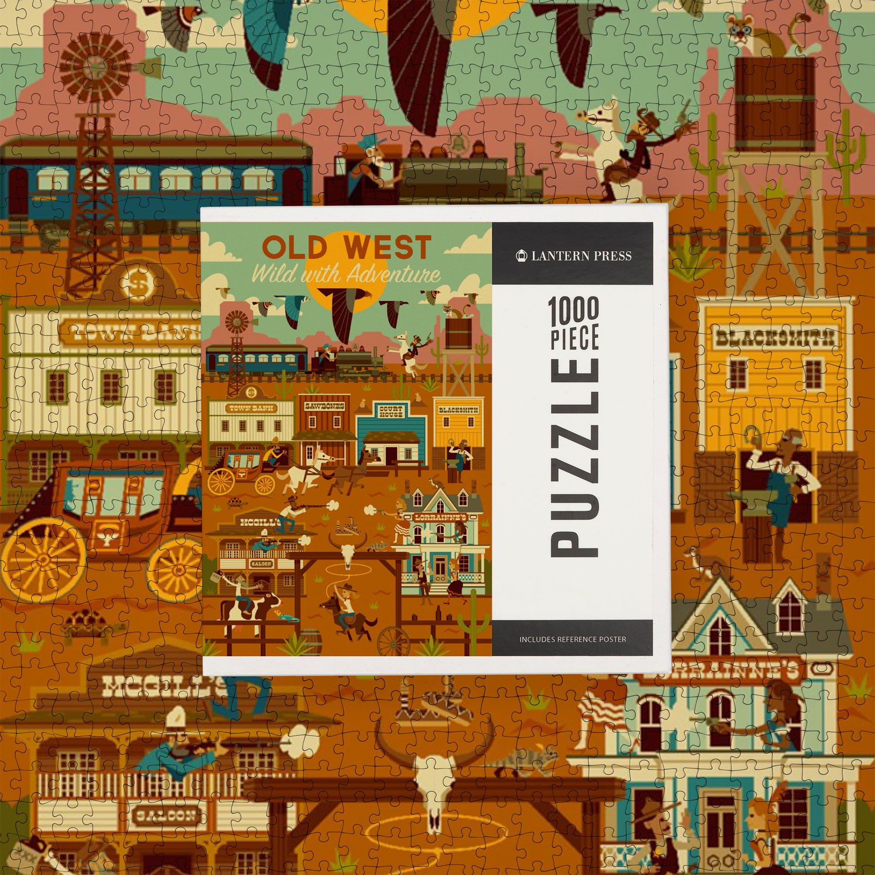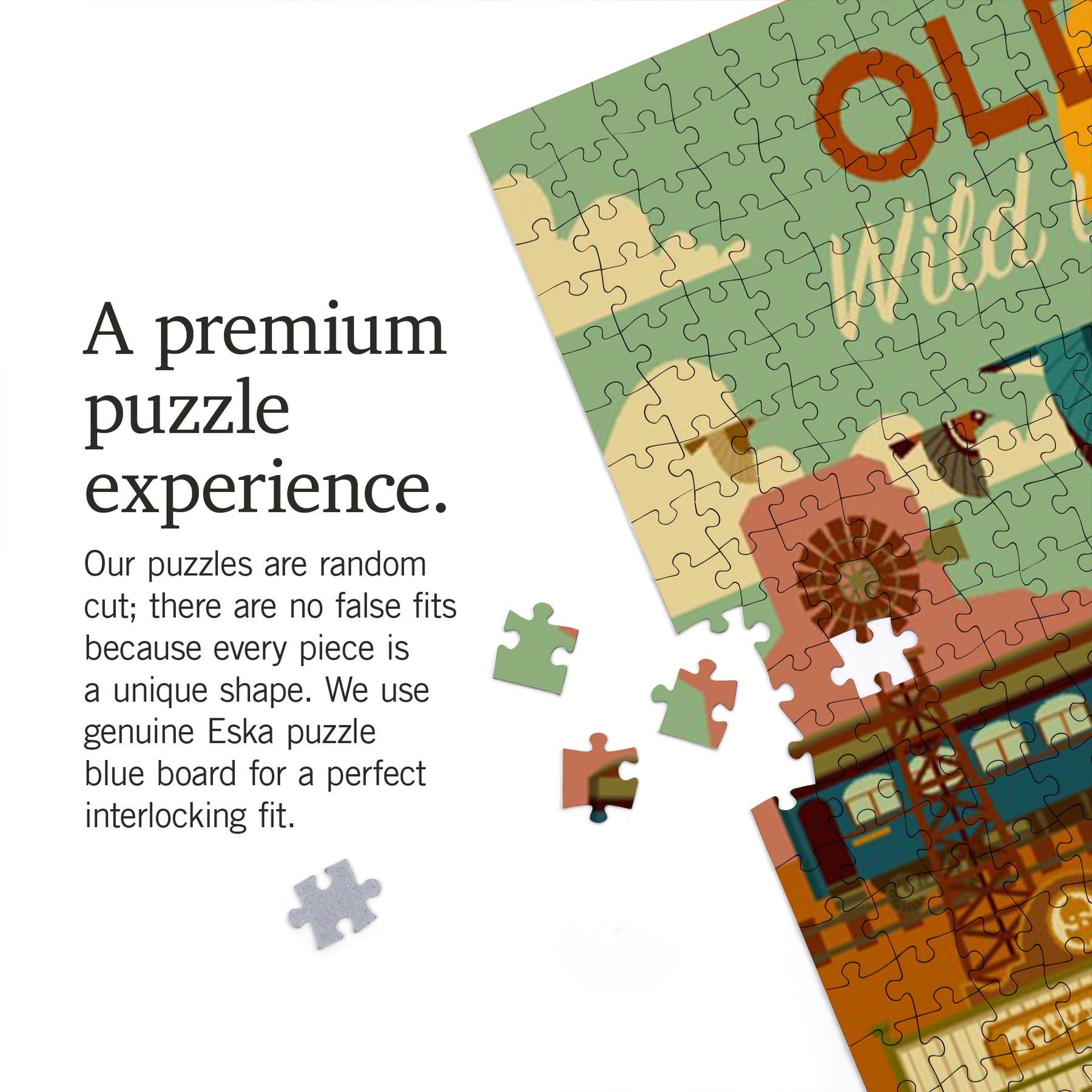 Old West, Western Town Geometric, Jigsaw Puzzle Puzzle Lantern Press