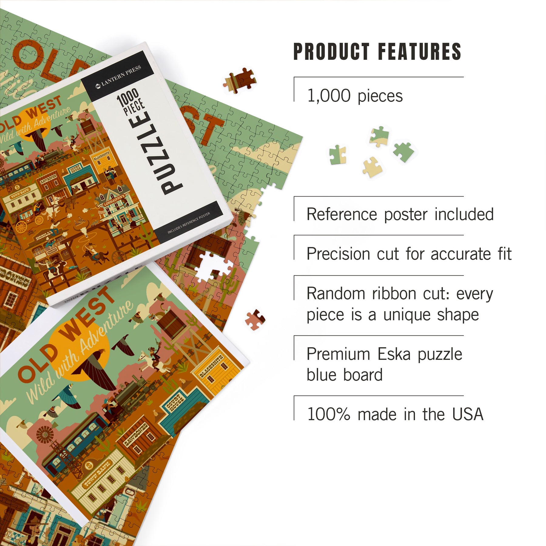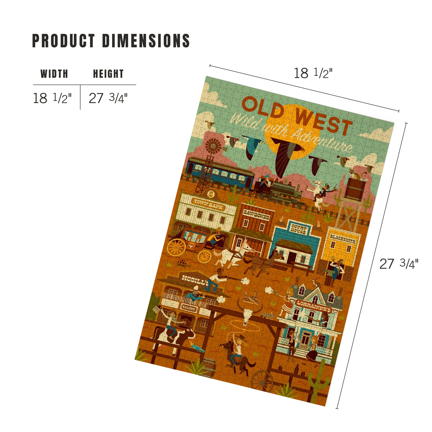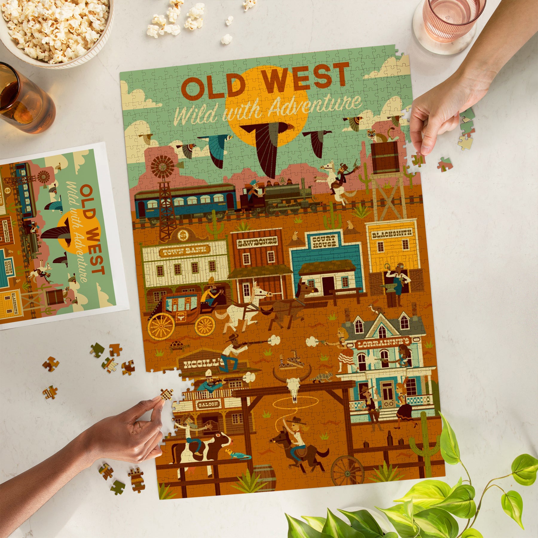 Old West, Western Town Geometric, Jigsaw Puzzle Puzzle Lantern Press