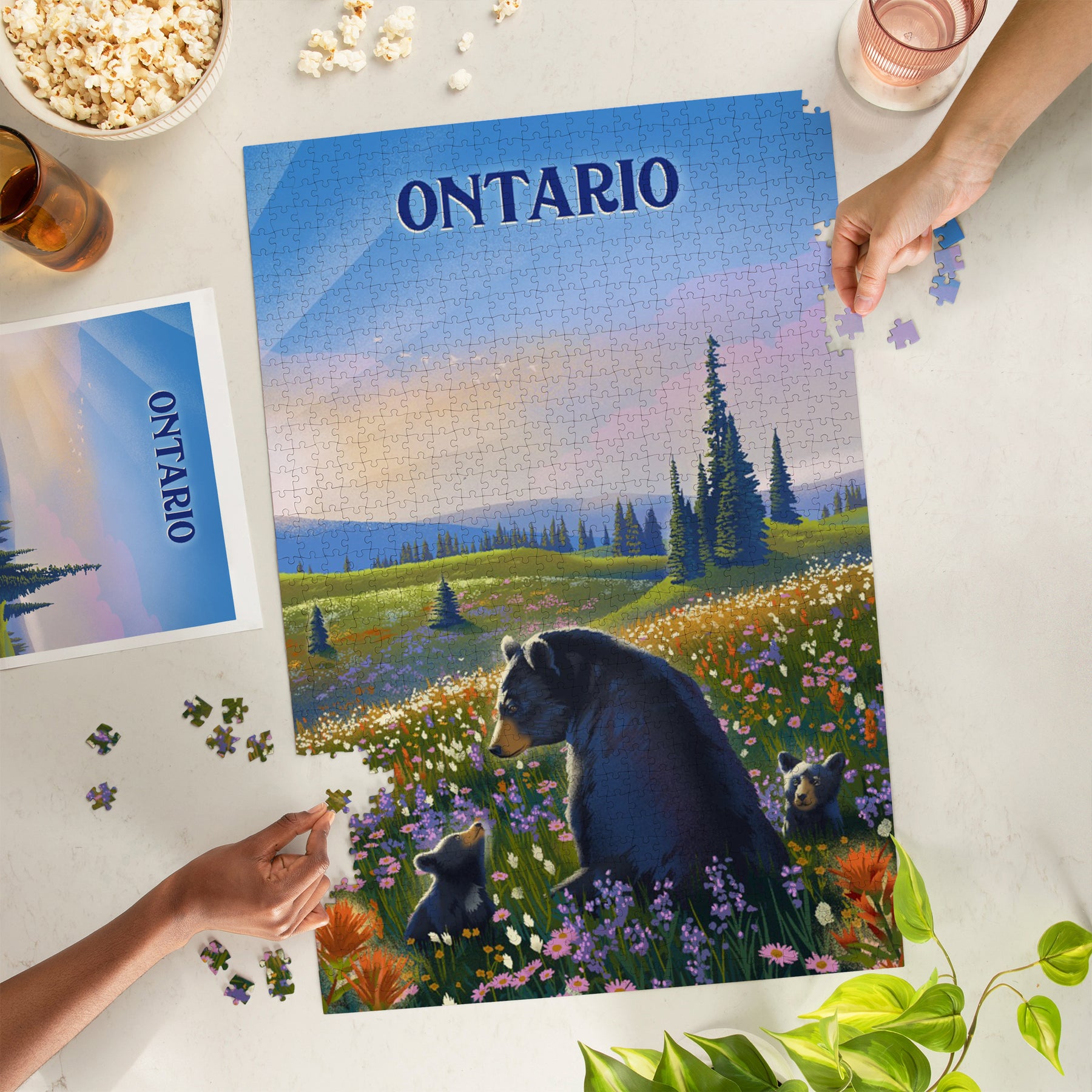 Ontario, Lithograph, Bear Family in Field, Jigsaw Puzzle