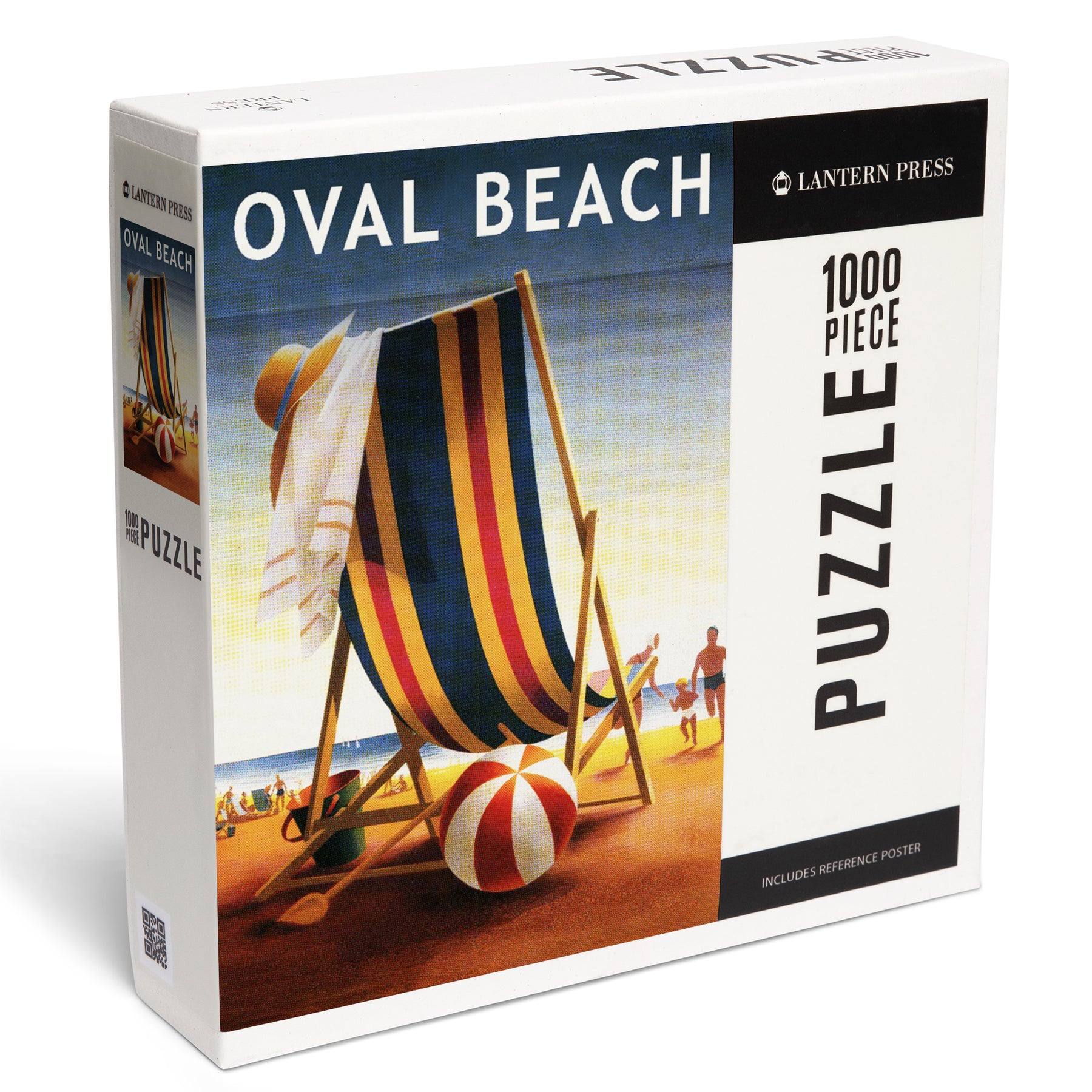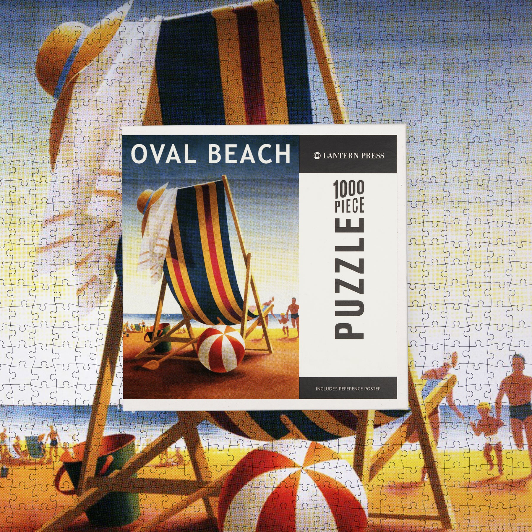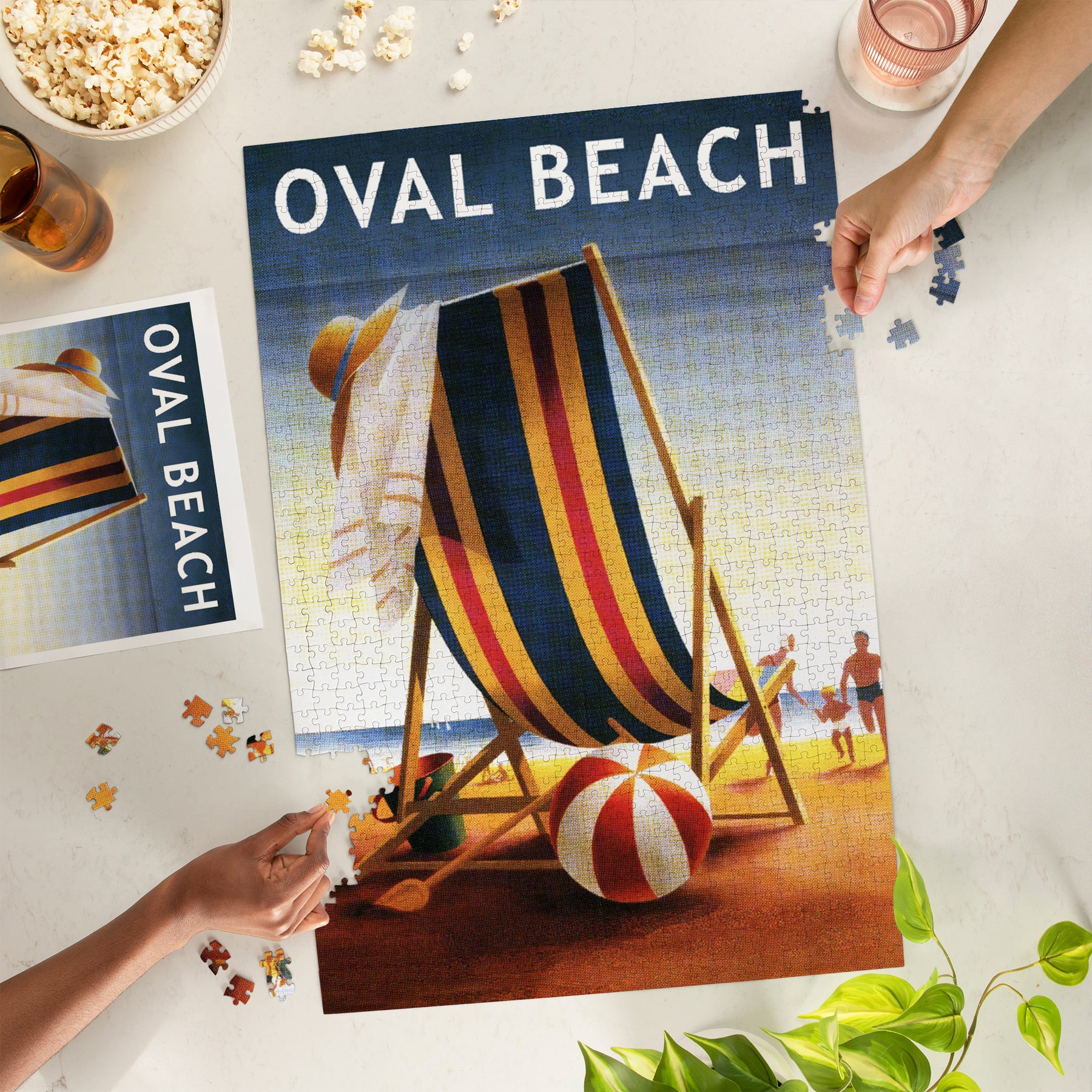Oval Beach, Michigan, Beach Chair and Ball, Jigsaw Puzzle Puzzle Lantern Press
