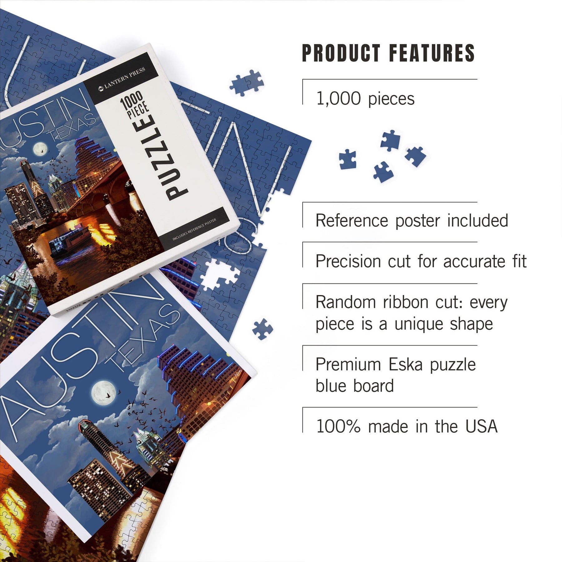 Austin, Texas, Skyline at Night, Jigsaw Puzzle Puzzle Lantern Press
