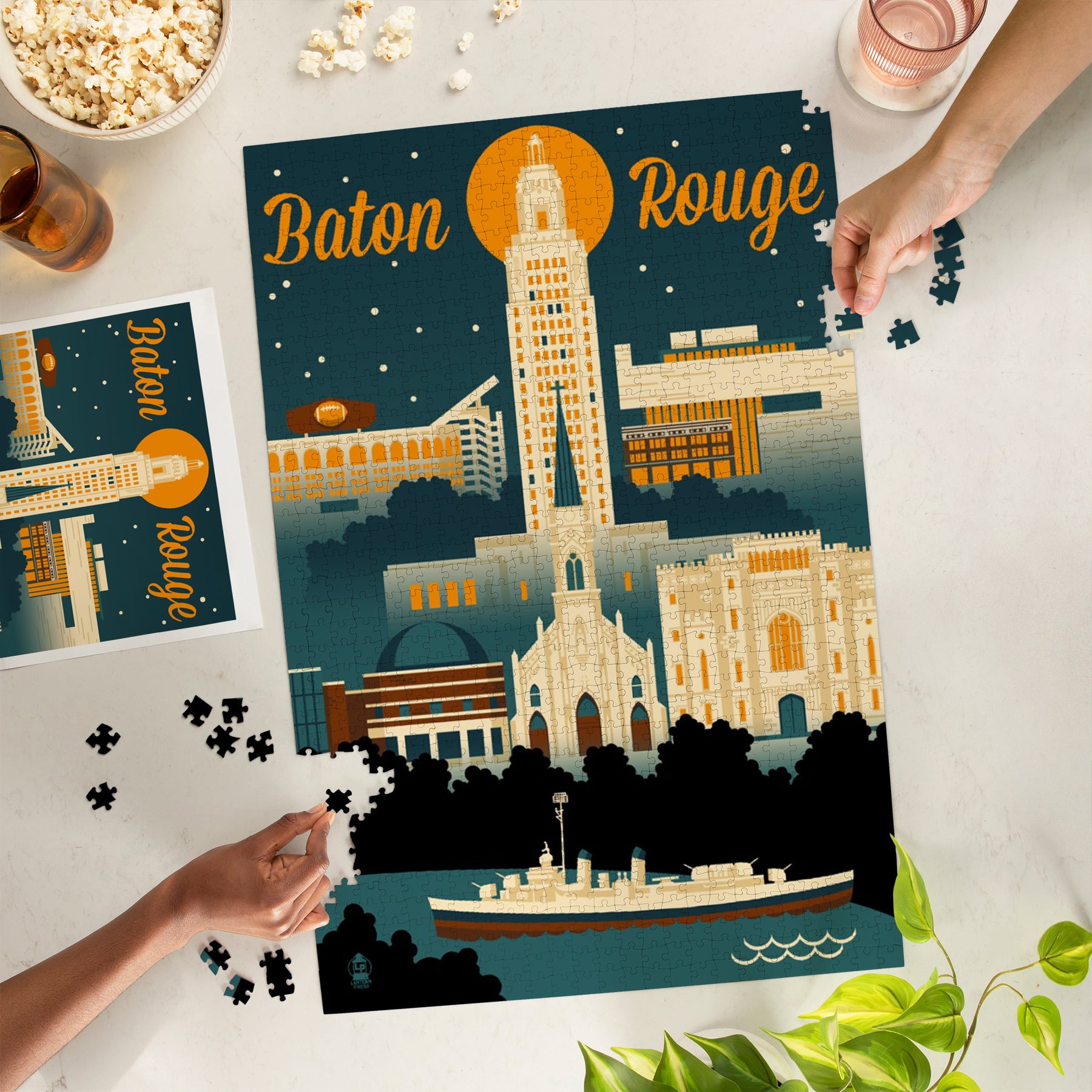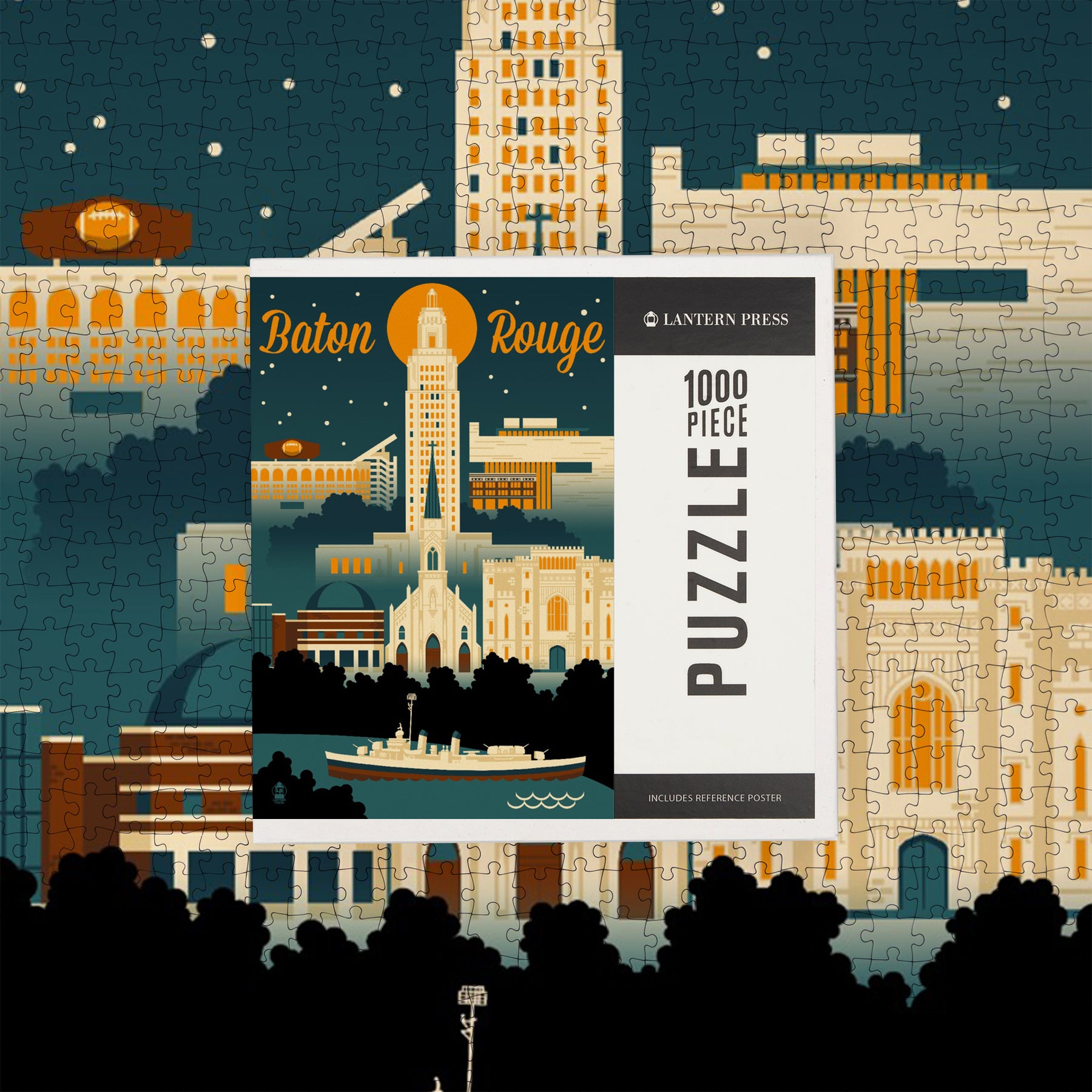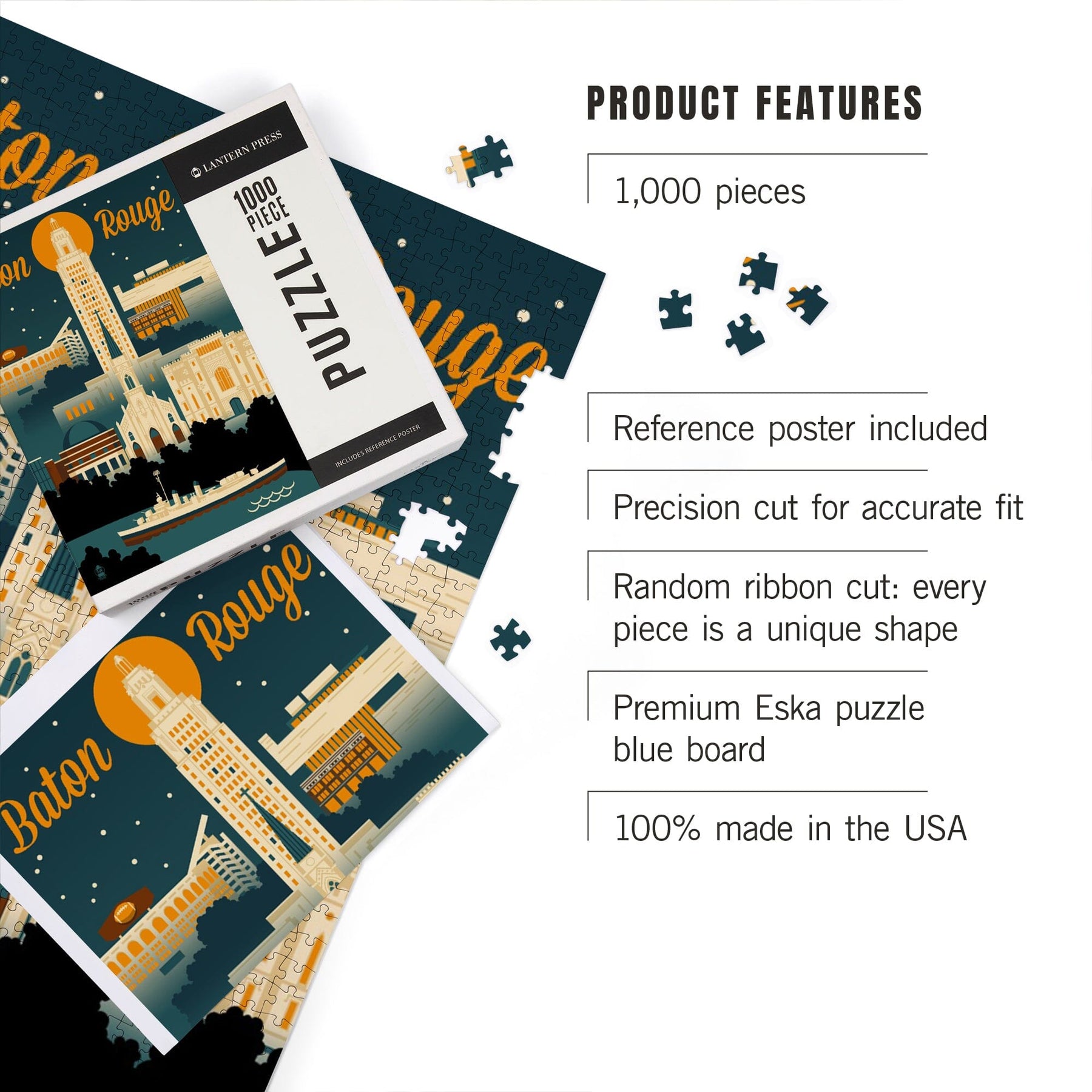 Baton Rouge, Louisiana, Retro Skyline, Jigsaw Puzzle Puzzle Lantern Press