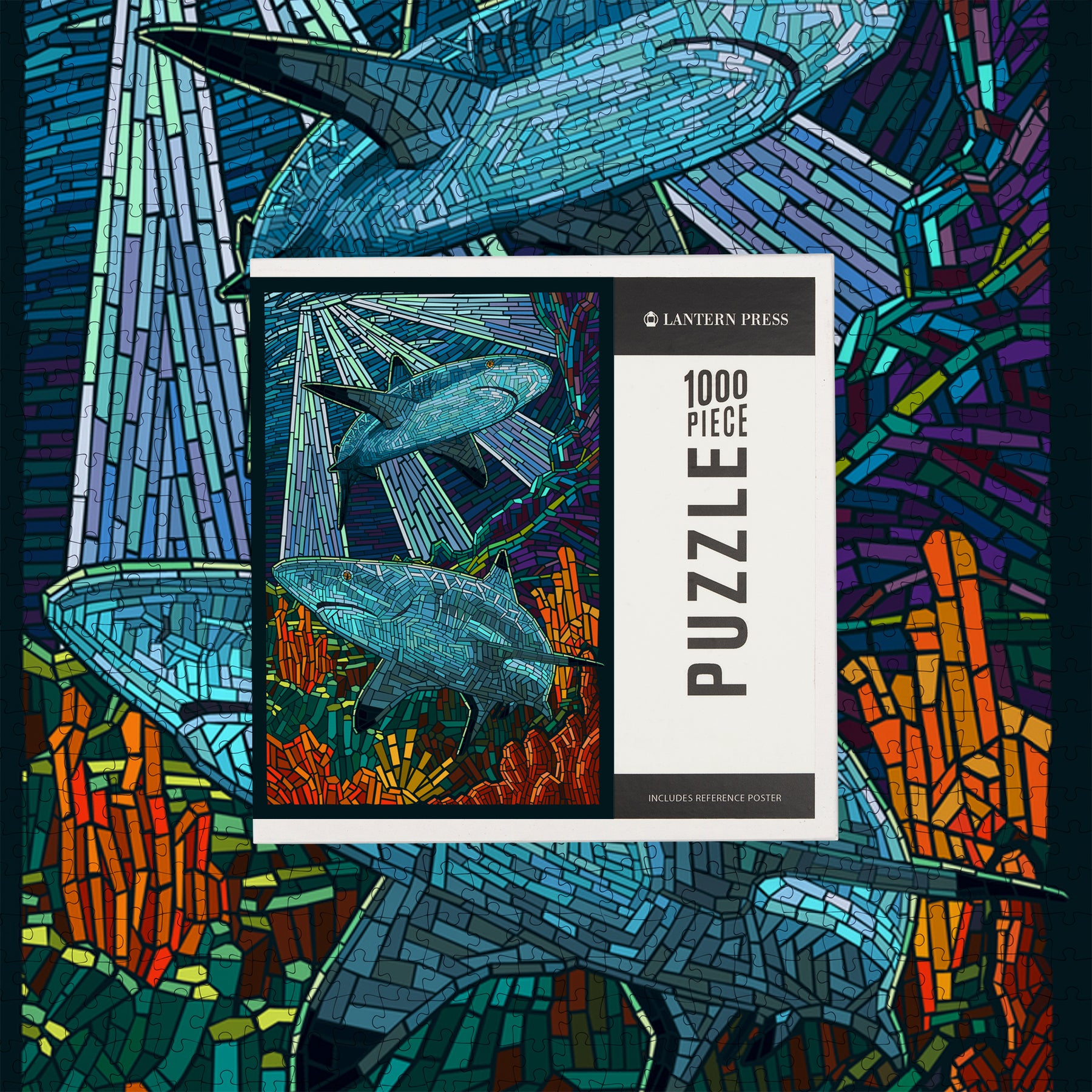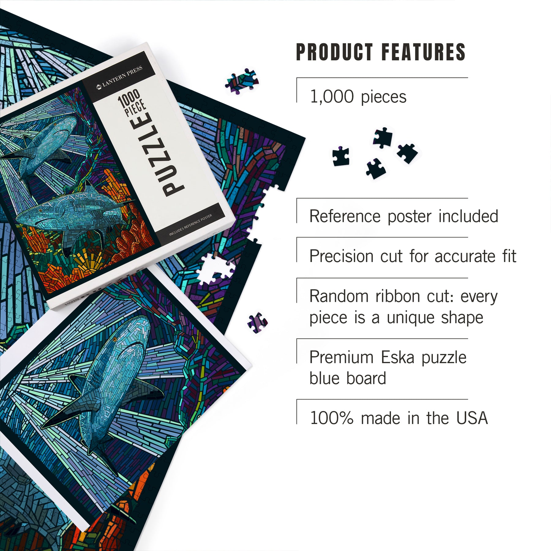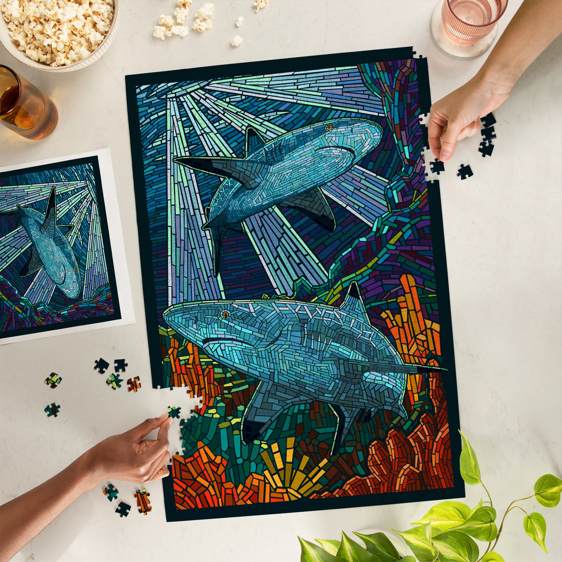 Black Tip Reef Shark, Paper Mosaic, Jigsaw Puzzle Puzzle Lantern Press
