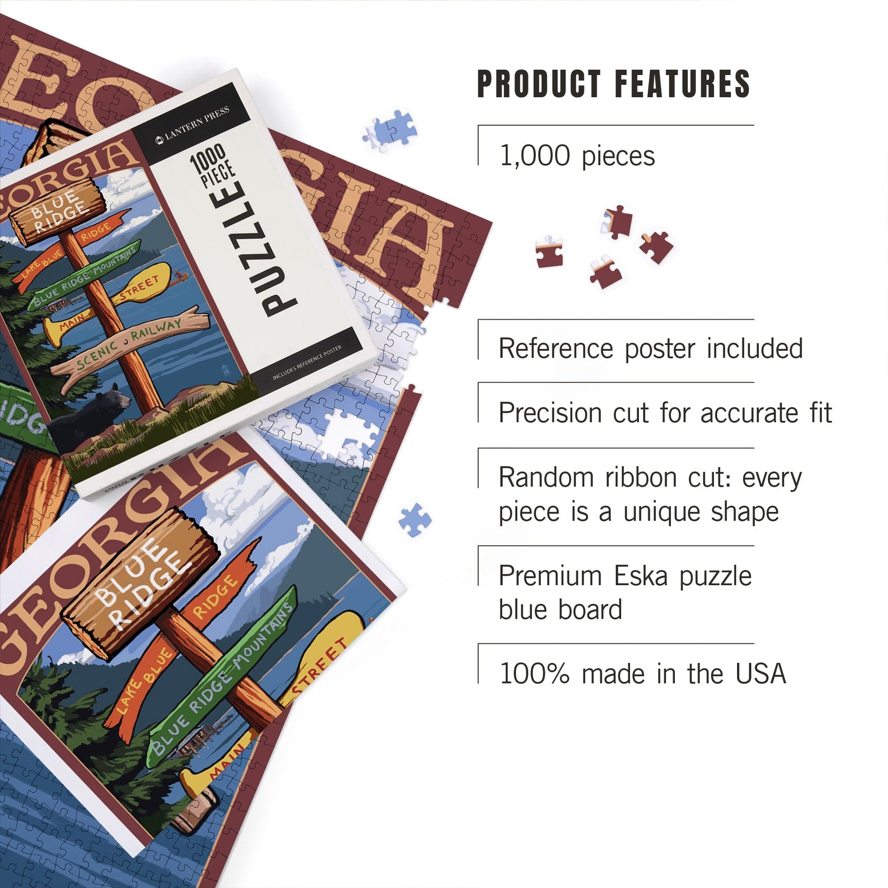 Blue Ridge, Georgia, Destination Signpost, Jigsaw Puzzle Puzzle Lantern Press