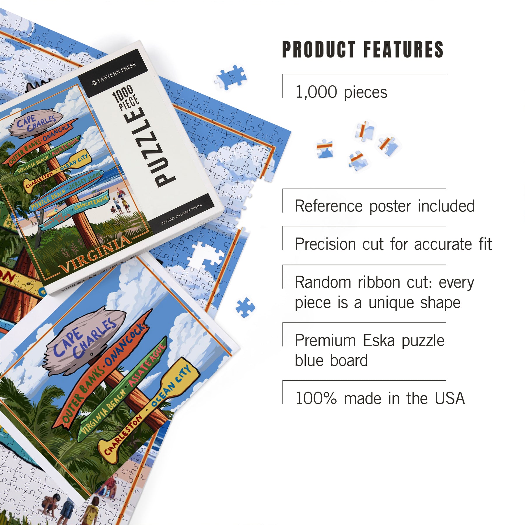 Cape Charles, Virginia, Destination Signpost, Jigsaw Puzzle Puzzle Lantern Press